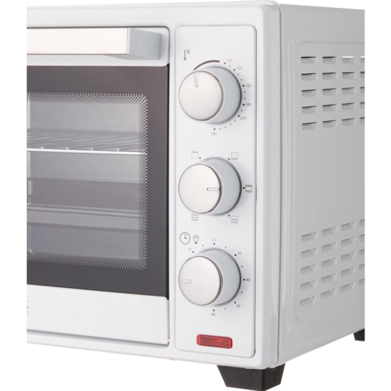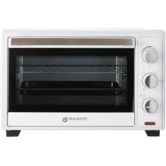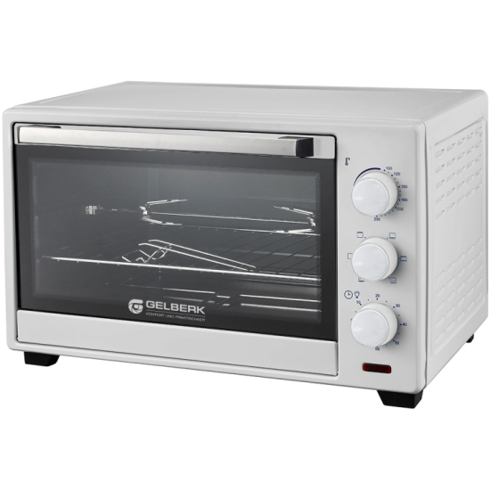 Описание Мини-печь Gelberk GL-26W Электрическая мини-печь Gelberk GL-26W объемом 26 л способна готовить и подогревать еду, станет помощником при ежедневной готовке, для кулинарных экспериментов или рабочим инструментом в творчестве. Электрическая духовка легко испечет хлеб, запечет мясо, запеканку, пиццу, котлеты, овощи. Модель рассчитана на приготовление блюд для 3-4 человек.Обладает всеми необходимыми функциями: гриль, гальваническое покрытие внутренней камеры, регулировкой температуры и таймером от 100 до 250 градусов с шагом 10 градусов, 5 режимов работы регулирует стороны нагрева, таймер до 60 минут с шагом 5 минут, звуковой сигнал по окончанию приготовления, подсветка рабочей камеры, дверца с одинарнымтермостеклом, плотно прилегает, хромированная решетка и вертел, металлический противень, всё можно мыть в ПММ. Надежная духовка компактного размера идеальна для маленькой кухни, дачи, на съемной квартире, в мастерской. Электродуховка сэкономит Ваше время на семью и для себя и прослужит много лет.