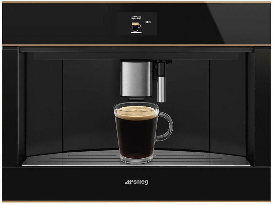 Описание Встраиваемая кофемашина Smeg CMS 4604NR Автоматическая кофемашина SMEG CMS 4604NR не только стильно выглядит, но и вмещает множество полезных функций. Для удобства использования модель оснащена многоязычным цветным TFT-дисплеем, 4 LED-лампами и сенсорным управлением. Вы можете регулировать степень помола, количество, крепость и температуру кофе. Более того, предусмотрена автоматическая очистка от накипи и споласкивание, режим энергосбережения Stand-by, блокировка управления. В кофемашине запрограммировано 13 напитков. Ключевые преимущества: