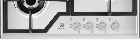 Описание Варочная панель газовая Electrolux EGS6436WW Газовая варочная поверхность Electrolux EGS6436WW изготовлена из эмалированной стали, а чугунная решетка состоит из двух половин и имеет оригинальный рисунок, благодаря чему ее достаточно легко мыть. Газовая панель является независимой по типу установки и обладает стандартными размерами для встраивания – 56х48 см. Ее площадь занимают четыре конфорки. Панель управления газовой варочной поверхностью Electrolux EGS6436WW представляет собой четыре поворотных переключателя, которые достаточно плавно регулируют мощность пламени. Одна конфорка имеет повышенную мощность, что обеспечит быстрый нагрев больших по диаметру емкостей. Также предусмотрены две стандартные конфорки и одна экономичная.