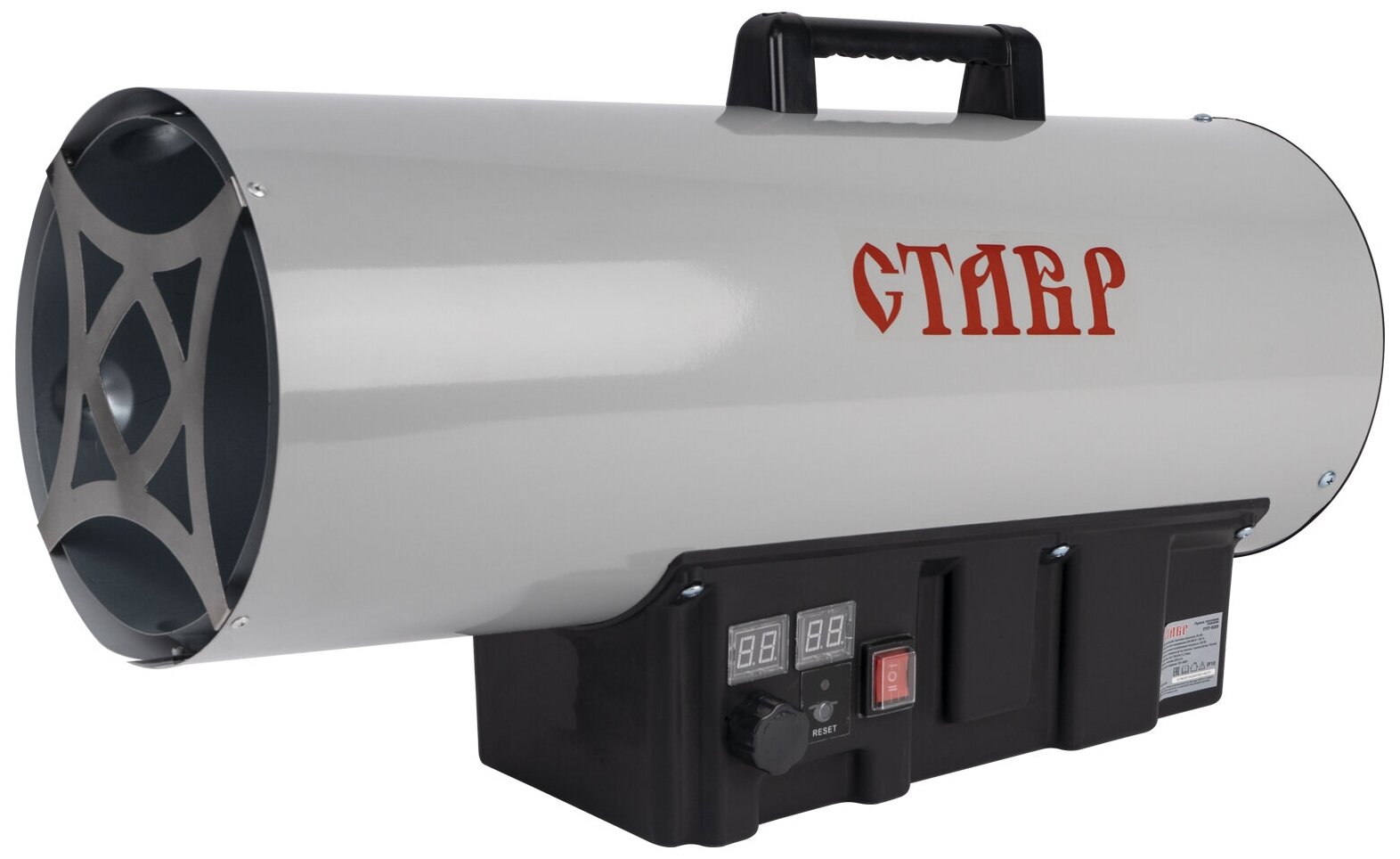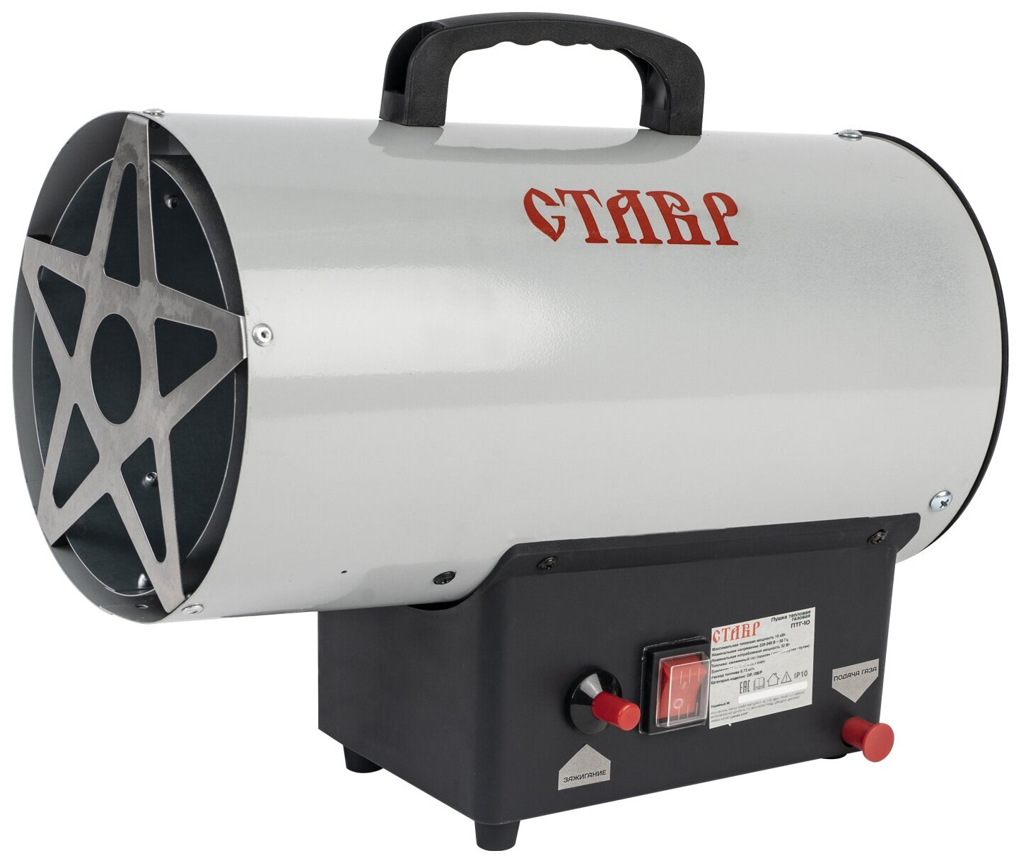 Описание Тепловая пушка Ставр ПТГ-10 Тепловая пушка СТАВР ПТГ-10 с мощностью 10 кВт обеспечивает высокую эффективность обогрева различных неотапливаемых помещений, строительных площадок, производственных цехов. Встроенный вентилятор формирует интенсивный поток нагретого воздуха. Прибор изготовлен в надежном металлическом корпусе с антикоррозийным покрытием и устойчивым основанием. Для удобного перемещения в верхней части корпуса предусмотрена ручка. Для повышения безопасности реализована технология защиты от перегрева. В комплекте с тепловой пушкой СТАВР ПТГ-10 поставляются редуктор давления и газовый шланг. Преимущества Ставр 10кВт Система контроля автоматически прекращает подачу газа при отсутствии электропитания В случае устранения причин срабатывания системы безопасности, автоматическая подача газа не производится. Для подключения, эксплуатации и обслуживания изделия не требуются специальные навыки. Высокая тепловая мощность. Высокая производительность. Качественные материалы. Защита от перегрева.