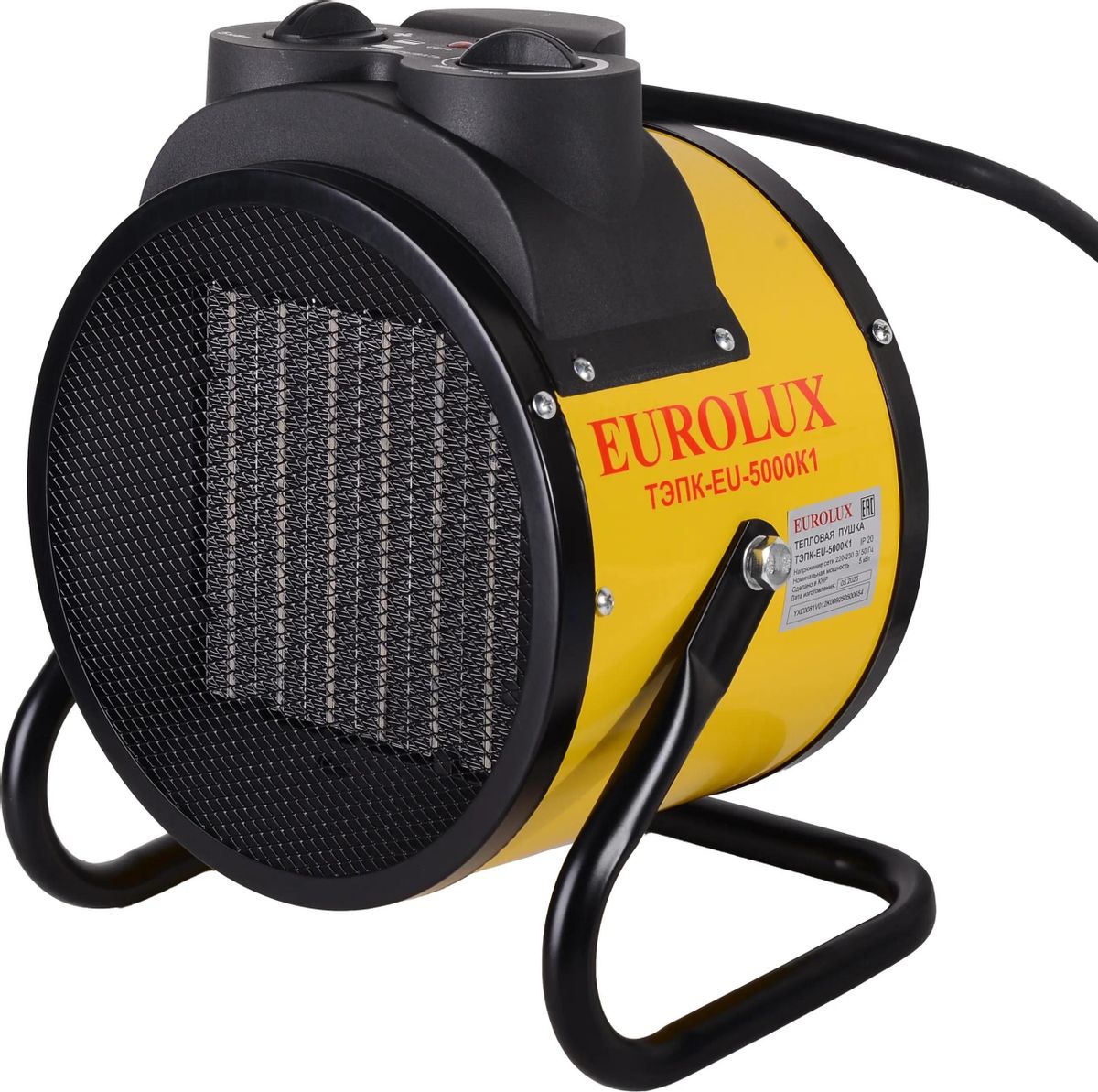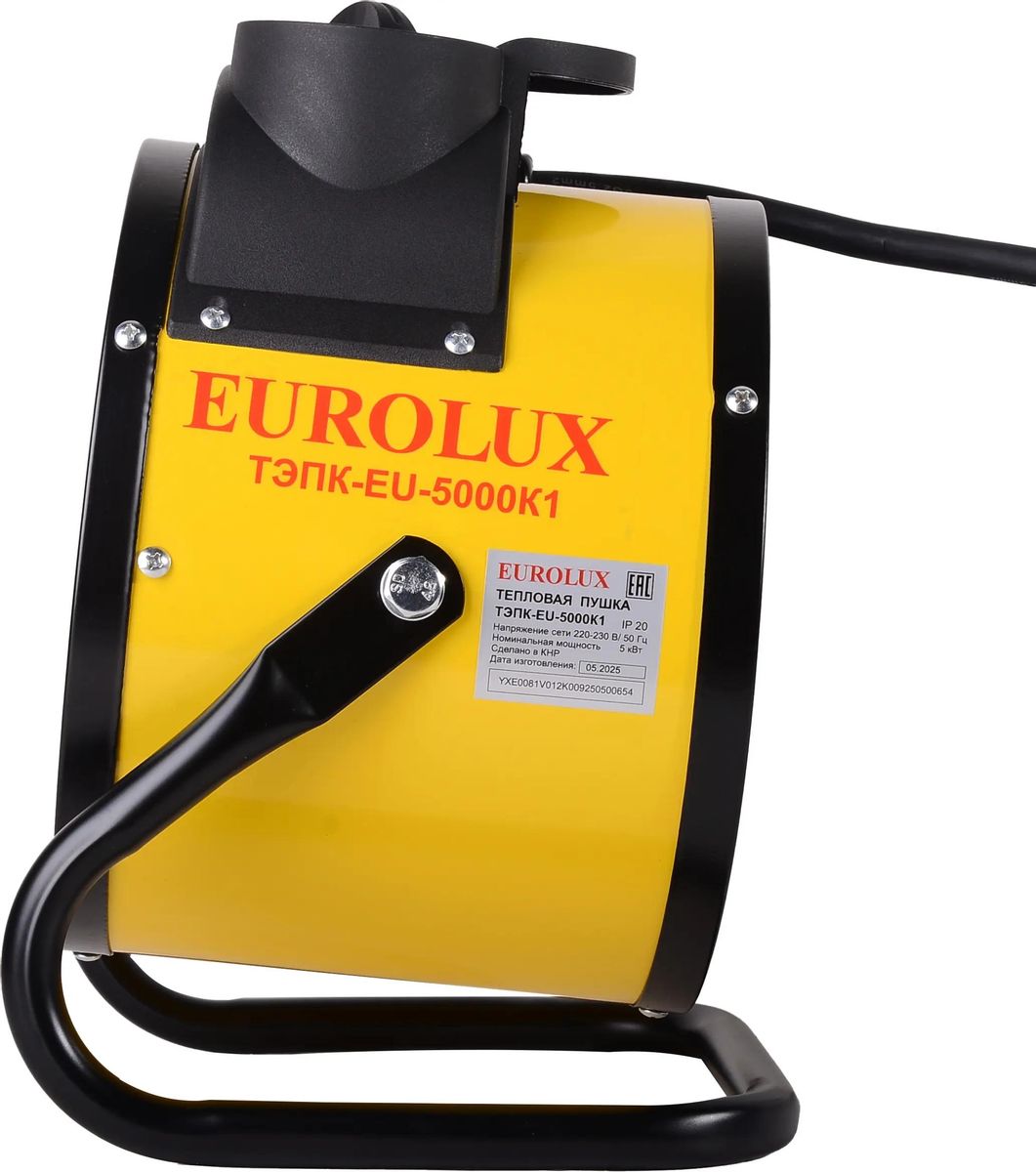 Описание Тепловая пушка Eurolux ТЭПК-EU-5000K1 [67/1/92] Тепловая электрическая пушка ТЭПК-EU-5000K1 Eurolux - это мощное и надежное оборудование для обогрева и вентиляции больших помещений. Она отлично подходит для цехов, складов, мастерских, а также общественных пространств, где находятся люди и требуется прогреть воздух без вредных выбросов. Мощность устройства - 5000 Вт, что помогает ему нагревать даже очень холодные помещения. Пушка работает от стандартной сети 220-230 В и имеет з режима работы, что позволяет использовать ее в разных условиях. В первом режиме она потребляет всего 10 Вт, выполняя функцию вентиляции без нагрева. Второй режим (2500 Вт) подходит для умеренного обогрева, а третий (5000 Вт) обеспечивает максимальную теплоотдачу. Конструкция пушки рассчитана на установку на полу, что упрощает ее размещение в рабочей зоне. Корпус имеет класс защиты IP20, поэтому устройство рекомендуется использовать в сухих помещениях без риска попадания влаги.