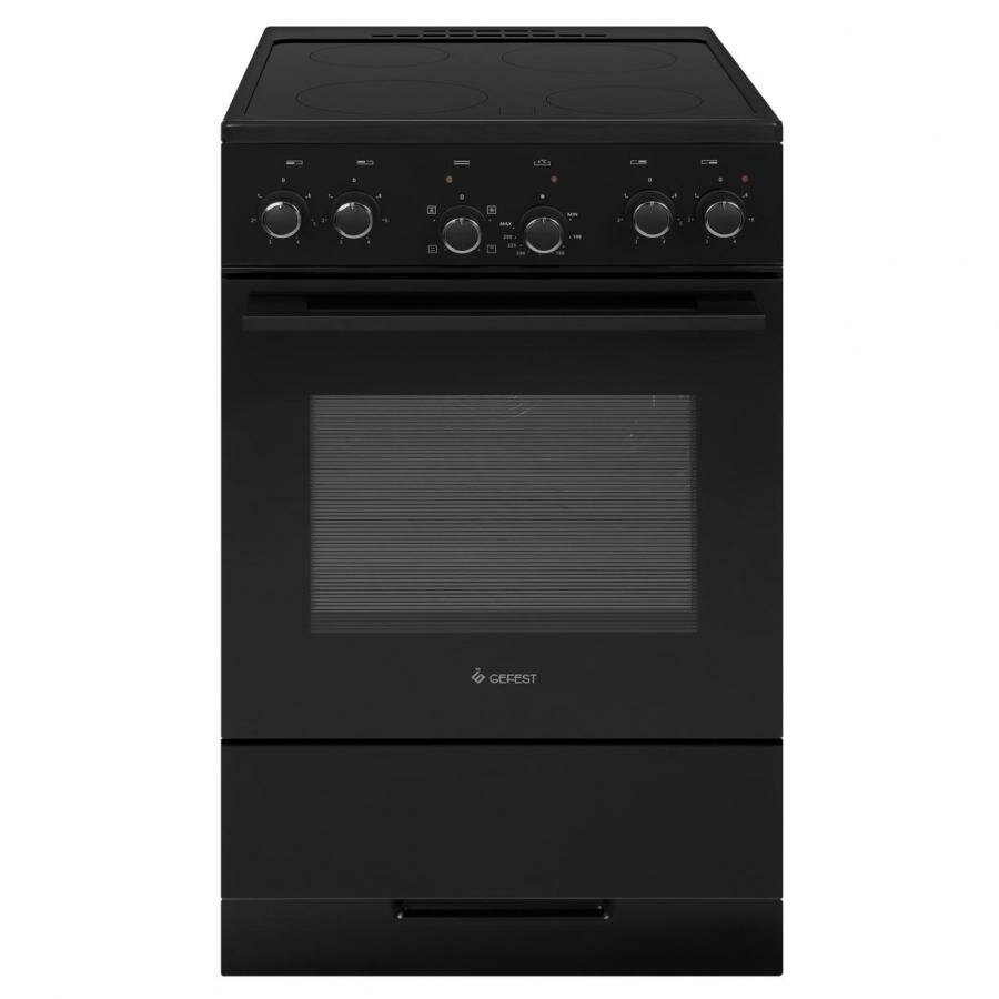 Описание Электрическая плита Gefest ЭП Н Д 5560-03 1096 Электрическая плита Gefest ЭП Н Д 5560-03 с варочной поверхностью размером 50–55 см и мощностью 7350 Вт оснащена вместительной духовкой объемом 55 литров. Она поддерживает восемь режимов нагрева, максимальная температура достигает 240°C. В комплекте есть электрогриль на 1200 Вт и функция конвекции. Дверца духовки изготовлена из термостойкого стекла с двойным слоем, а внутренняя поверхность покрыта эмалью, легко очищаемой от загрязнений. На варочной панели расположены четыре конфорки разного размера и мощности. Рабочая поверхность выполнена из стеклокерамики. В комплекте имеется выдвижной ящик для хранения посуды и регулируемые ножки. На корпусе есть датчик остаточного тепла. Плита оснащена электромеханическим вертелом и металлическими направляющими для противней. В комплект входят глубокий противень, стеклянный противень, стальная решетка, скребок и вертел.