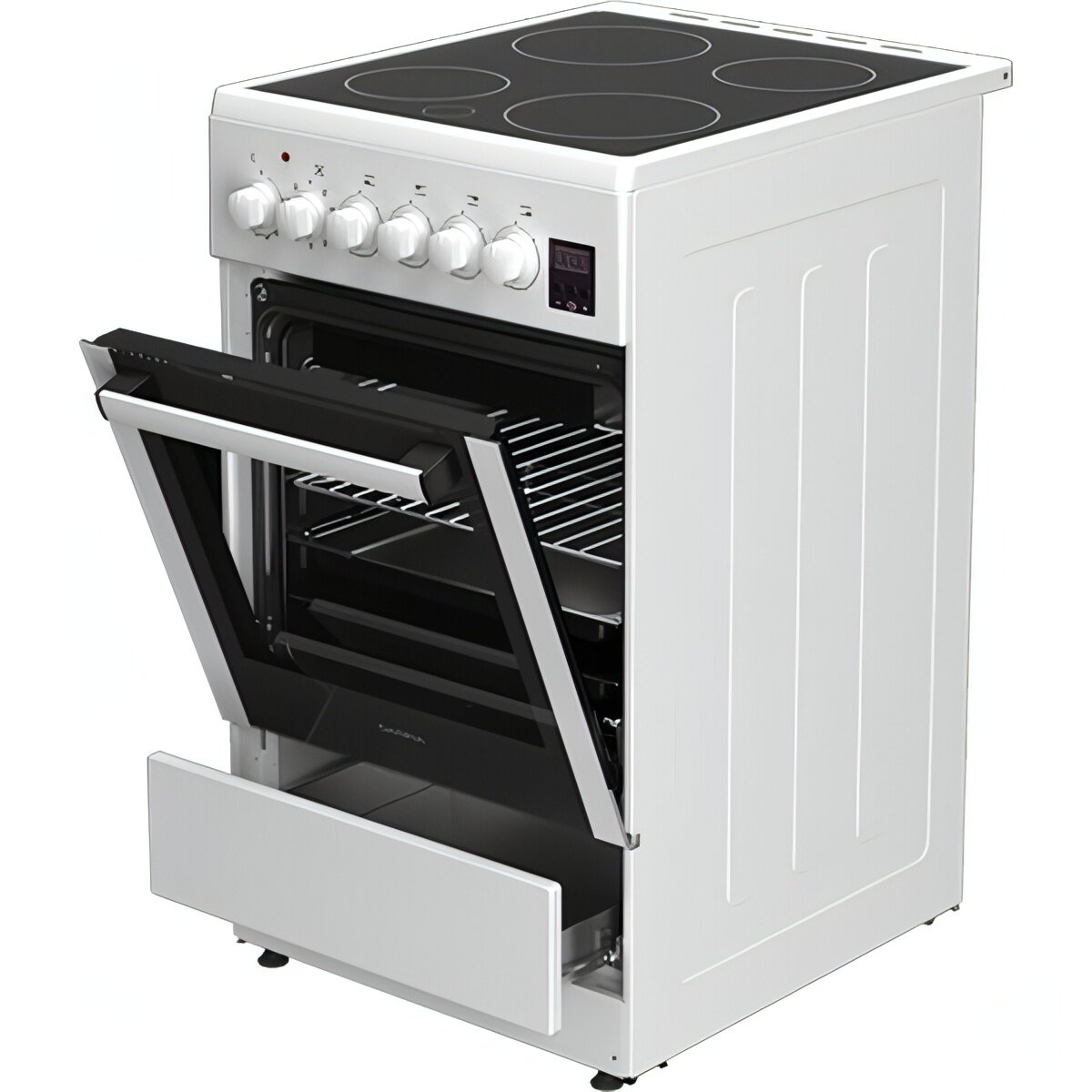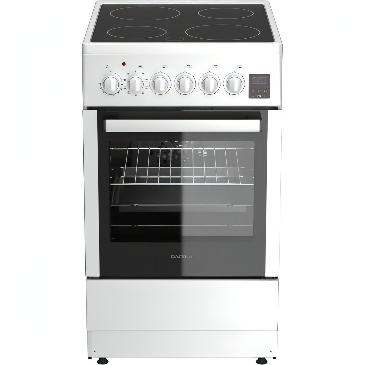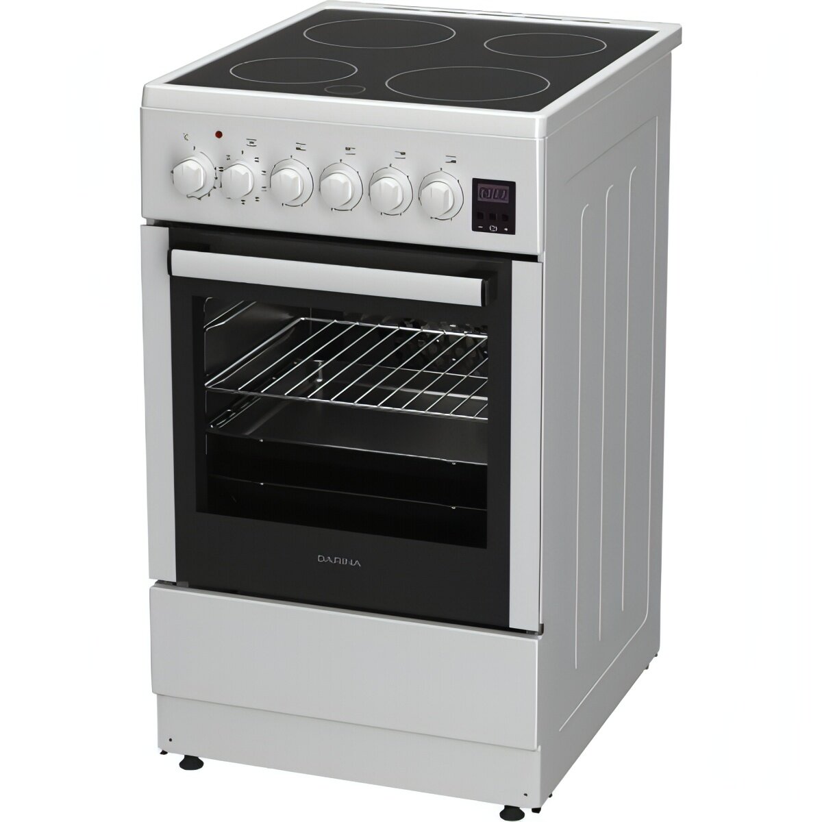 Описание Электрическая плита DARINA 1F EC241 616 W Электрическая плита (50-55 см) Darina 1F EC241 616 W оборудована индикатором, показывающим остаточное тепло варочной панели и духового шкафа. Снизу встроен небольшой выдвижной ящик для хранения посуды. Устройство оснащено четырьмя конфорками спирального типа. Верхняя рабочая поверхность выполнена из стеклокерамики, легко поддающейся чистке. Показатель потребляемой мощности плиты не превышает 6100 Вт. Объем духовки составляет 50 л. Внутри нанесено эмалированное покрытие. Температура нагрева достигает 250°С. Доступна работа в режиме конвекции и гриля. Встроена подсветка. Электронные часы с таймером позволяют установить время готовки блюда, по истечении которого устройство издает звуковой сигнал и отключается автоматически. Управление температурой в камере осуществляется при помощи поворотного терморегулятора.