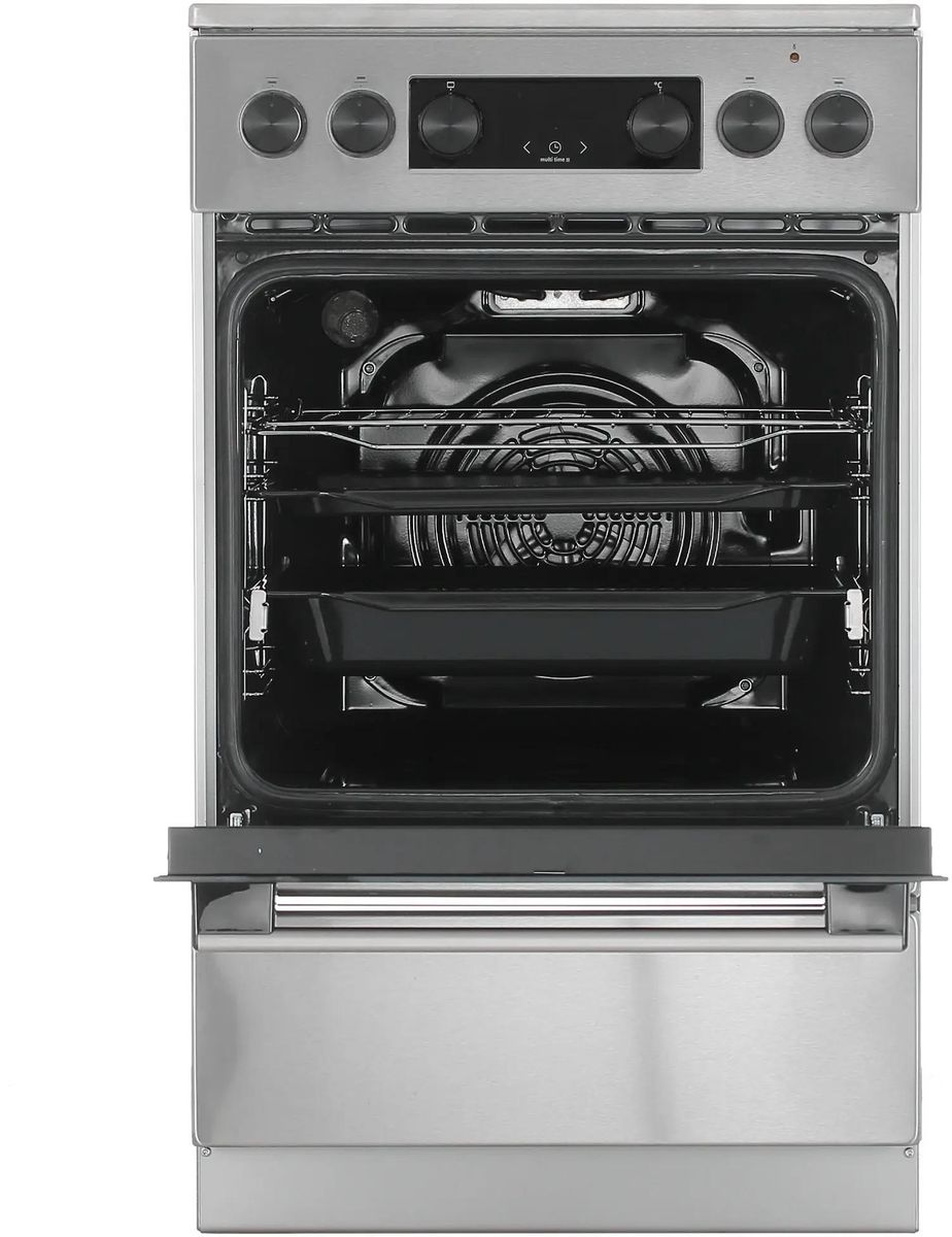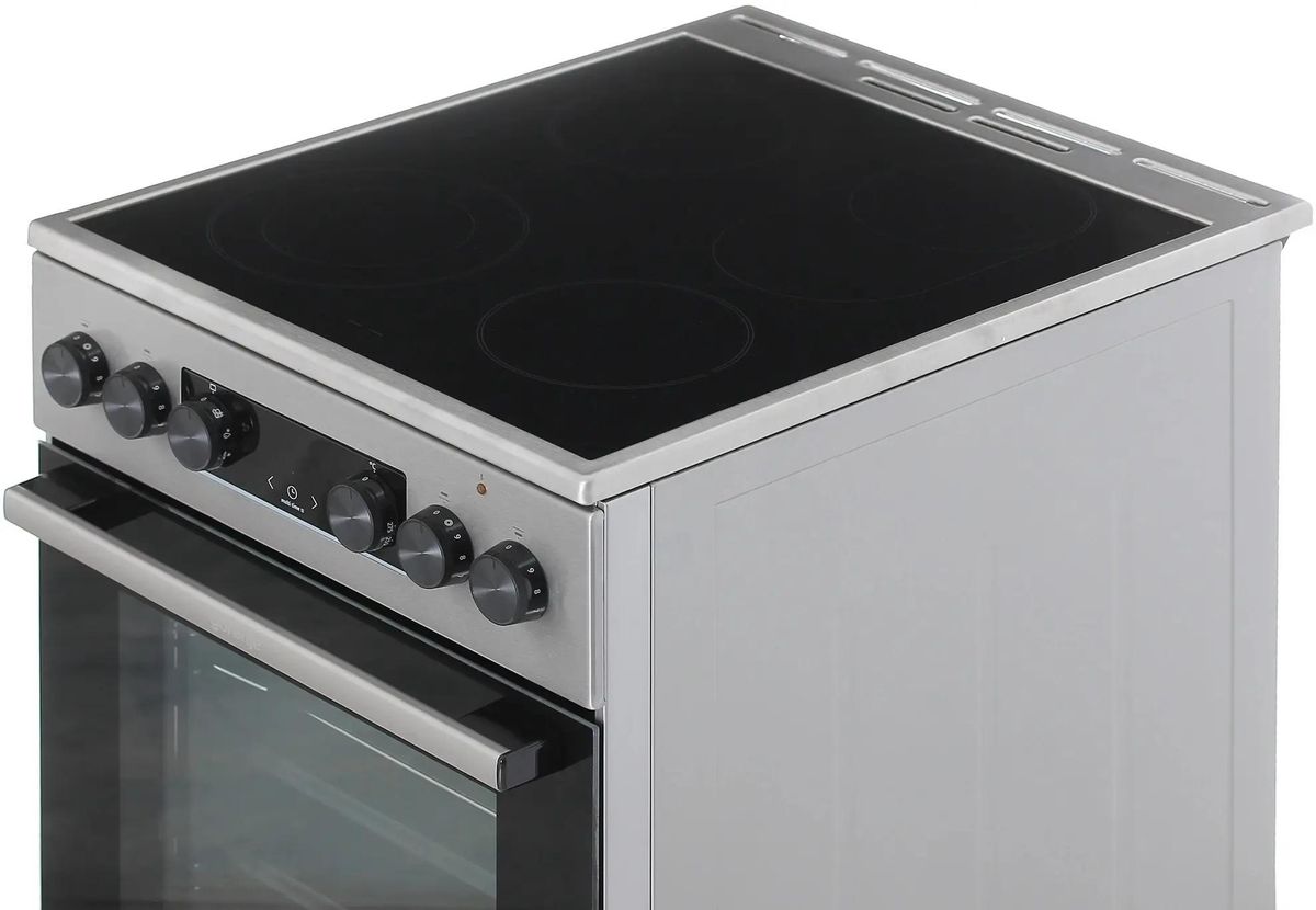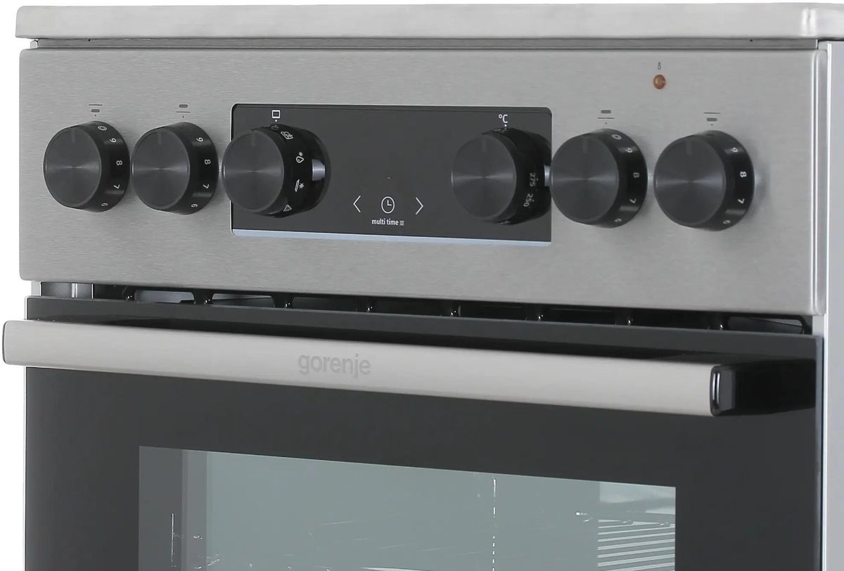 Описание Электрическая плита Gorenje GEC5C40XAOT Электрическая плита Gorenje GEC5C40XAOT в классическом серебристом корпусе оснащена стильной и простой в уходе стеклокерамической панелью. 4 конфорки позволяют готовить в посуде разного диаметра, выбирать 1 из 9 уровней мощности. Вы можете использовать овальную зону нагрева и отслеживать индикацию остаточного тепла. Gorenje GEC5C40XAOT дополнена духовкой на 70 л с грилем, конвекцией и яркой подсветкой, разными режимами работы и программой размораживания. Стенки камеры легко очищаются под воздействием горячего пара. Благодаря сводчатому потолку блюда в духовке прогреваются равномерно со всех сторон. Панель управления оснащена дисплеем, сенсорными кнопками и привычными поворотными рычагами. Вы можете настраивать часы и таймер с звуковым сигналом.