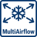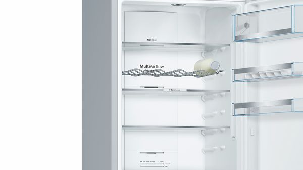 Размещение продуктов в холодильнике может вызвать сложности: в некоторых отделениях они остаются свежими, в других – высыхают. Система MultiAirflow с вентилятором усиливает циркуляцию воздуха внутри холодильника и поддерживает равномерную температуру и влажность сверху донизу.