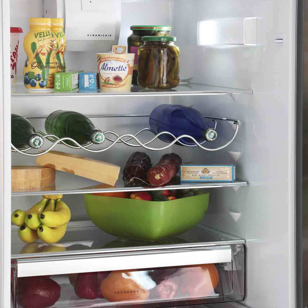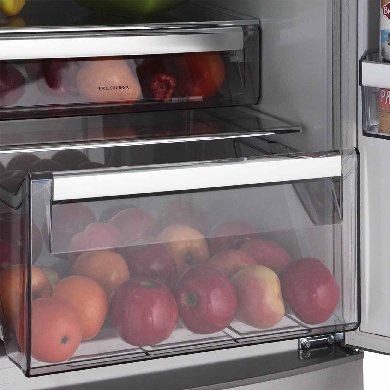 Описание Холодильник AEG RCB63426TX AEG RCB63426TX – классический двухкамерный холодильник, в котором поместится большой запас продуктов для всей семьи. Благодаря лаконичному и в то же время элегантному дизайну он хорошо сочетается с другой бытовой техникой и мебелью, которая есть на кухне. В разморозке не нуждается В этой модели реализованы технология No Frost и капельная система, причём обе работают в автоматическом режиме. Это значит, что можно не опасаться появления ледяной корки на стенках. Продуманная конструкция Внутри предусмотрены вместительные прозрачные ящики и прочные полки из закалённого стекла. Вы можете разложить по ним еду так, как вам удобно. Для свежих овощей и фруктов есть дополнительное отделение. Освещение обеспечивается яркой LED-лампой, экономно расходующей энергию. Несложный уход На корпус нанесено защитное покрытие, поэтому с него не придётся часто стирать отпечатки пальцев. Дополнительные функции Подготовить пищу к длительному хранению можно с помощью режимов Frostmatic и Coolmatic. Одно нажатие кнопки – и температура резко понижается.