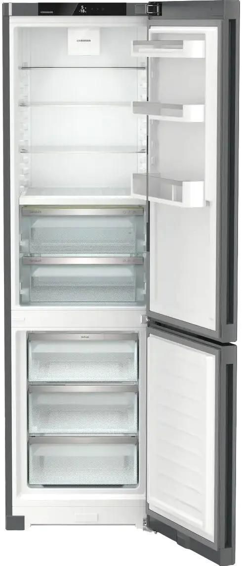 Описание Холодильник Liebherr CBNdgc 5723-20 001 Холодильник LIEBHERR CBNdgc 5723-20 001 из серии Plus — это стильный и функциональный прибор, который станет отличным дополнением вашей кухни. Его серый цвет придаёт современный вид, а продуманный дизайн позволяет легко вписать его в любой интерьер. Холодильная камера с зоной свежести BioFresh объёмом 258 литров обеспечивает идеальные условия для хранения овощей и фруктов, сохраняя их свежесть и питательные вещества на долгое время. Морозильная камера с функцией NoFrost имеет три контейнера и объём 103 литра, что позволяет удобно хранить замороженные продукты без образования льда. Сенсорное управление делает использование холодильника простым и интуитивным. С классом энергетической эффективности A++ вы можете быть уверены в экономии электроэнергии, а климатический класс SN-T обеспечивает надёжную работу даже в различных условиях. Уровень шума всего 35 дБ делает этот холодильник практически бесшумным, а перенавешиваемые двери и 2-метровый кабель подключения добавляют удобства в установке. LIEBHERR CBNdgc 5723-20 001 — это идеальный выбор для тех, кто ценит качество и комфорт.