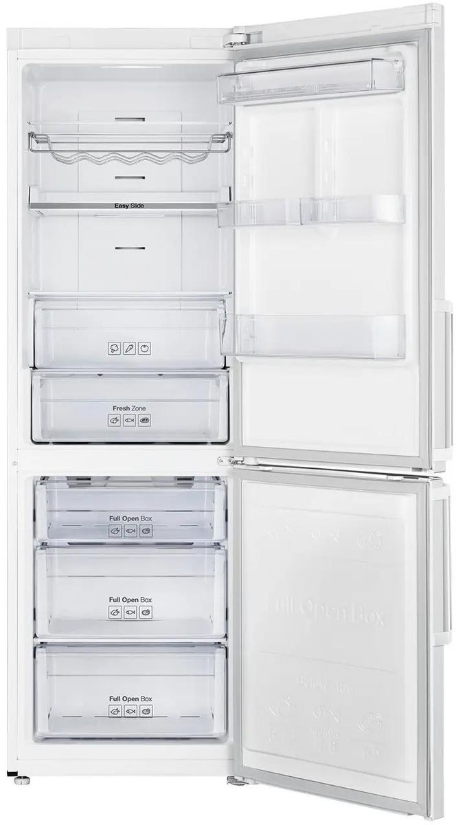 Описание Холодильник Samsung RB33J3515WW/EF Двухкамерный холодильник Samsung RB33J3515WW с инверторным компрессором работает эффективно и тихо. Он сохраняет продукты свежими дольше. Общий объем холодильника составляет 339 литров. Это позволяет удобно хранить много продуктов для семьи любого размера. Система No Frost предотвращает образование инея. Благодаря этому не нужно заниматься ручной разморозкой. Морозильная камера объемом 108 литров расположена внизу. Такое расположение обеспечивает удобный доступ к замороженным продуктам. Сенсорное управление с внешним дисплеем упрощает настройку температуры и контроль состояния холодильника. Технология многопоточного охлаждения Multi Flow равномерно распределяет холод по камерам. Это помогает сохранять свежесть продуктов. Перевешиваемые двери и регулируемые по высоте ножки делают установку удобной в любом помещении. Зона свежести помогает дольше сохранять овощи, фрукты и мясо в оптимальных условиях. LED-подсветка ярко освещает внутреннее пространство. Это облегчает поиск нужных продуктов даже в темноте.