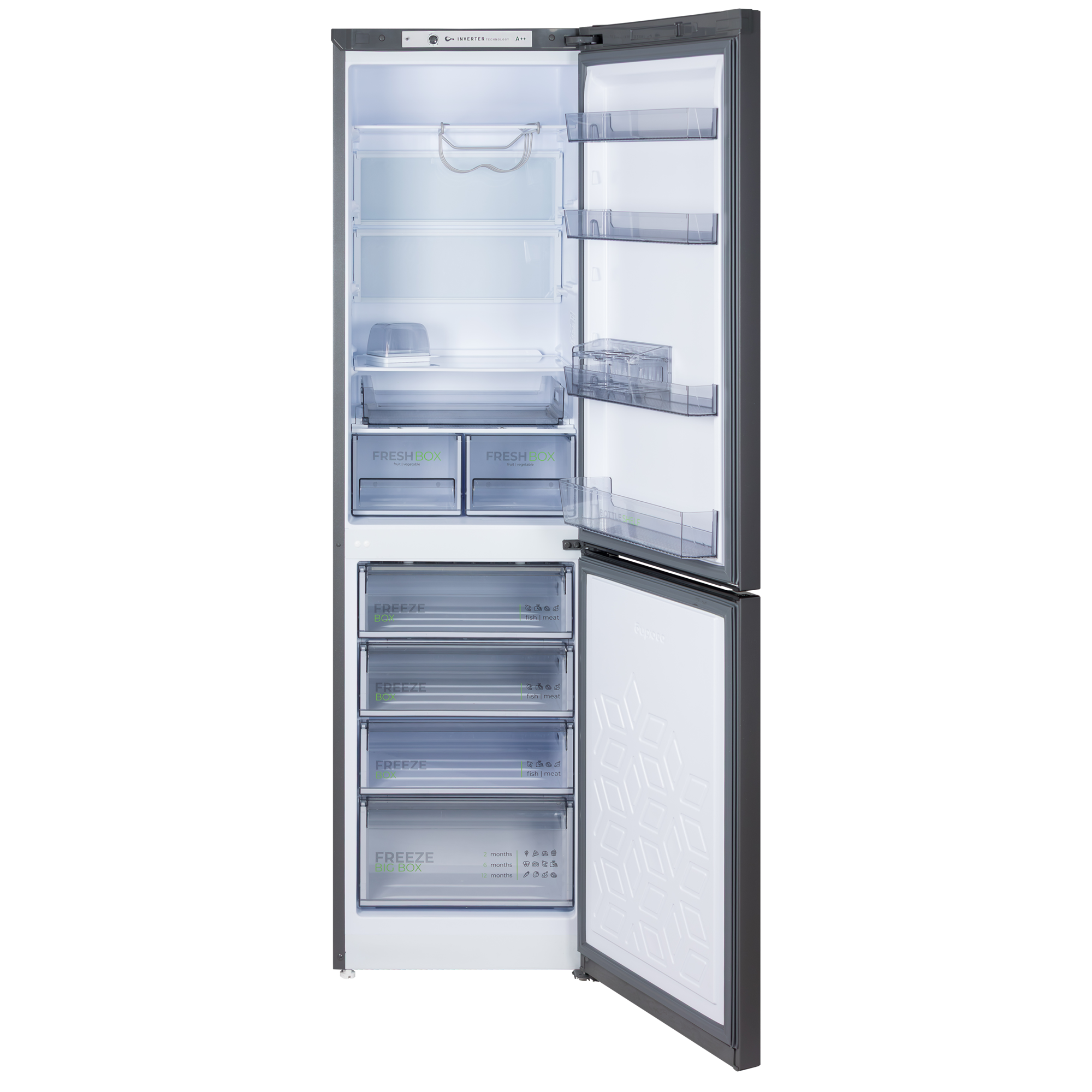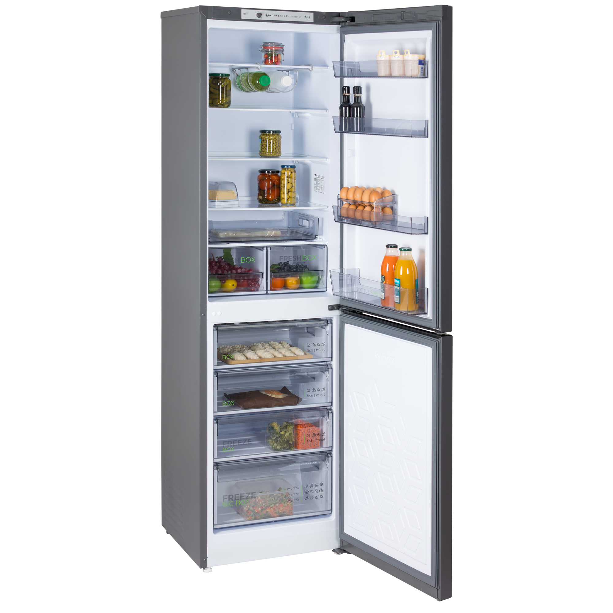 Описание Холодильник Бирюса W6129 Ищете двухкамерный холодильник, который сочетает надежность, вместительность и тихую работу? Холодильник Бирюса W6129 — идеальное решение для вашей семьи! Этот двухкамерный холодильник Бирюса с общим объемом 380 литров создан для тех, кто ценит порядок и свежесть. Холодильник с морозильной камерой на 135 литров позволит вам делать стратегические запасы и хранить замороженные продукты долгое время. Ключевые преимущества: Тихий и экономичный: Инверторный холодильник оснащен современным компрессором, который работает практически бесшумно и плавно регулирует мощность. Это не только комфорт, но и реальная экономия: высокий класс энергоэффективности A++ снижает расходы на электроэнергию. Умное хранение без хлопот: Капельная система размораживания в холодильном отделении избавит вас от рутинной ручной разморозки. А продуманная организация внутри — две складные полки, выдвижной лоток, полка для бутылок и контейнер для 20 яиц — поможет оптимально использовать каждый сантиметр пространства. Удобство в деталях: Горизонтальная светодиодная подсветка ярко освещает все содержимое холодильника, а автоматический доводчик двери плавно и бесшумно закрывает ее за вами. Система контроля влажности Humidity Сontrol помогает дольше сохранять свежесть овощей и фруктов.