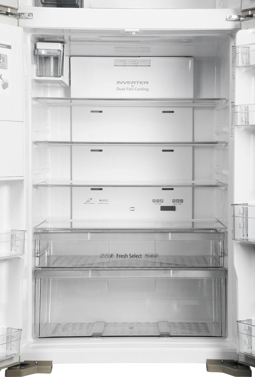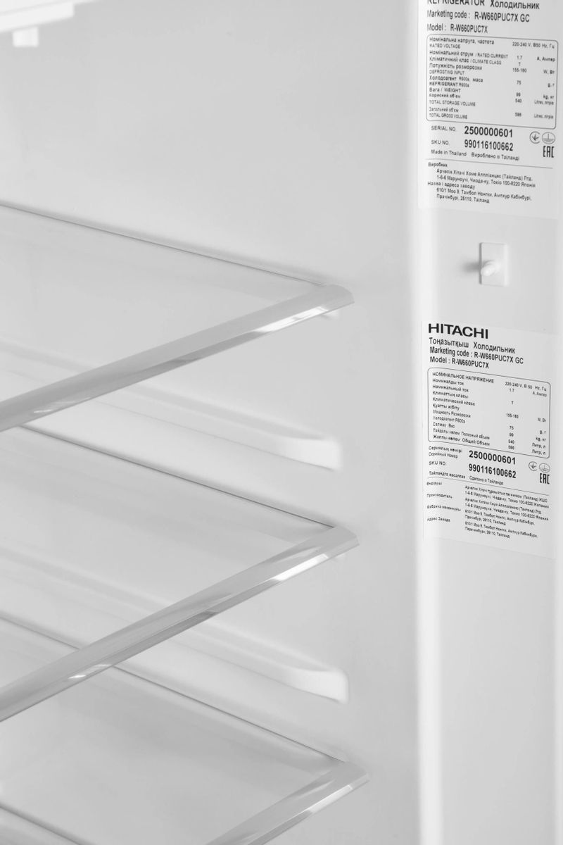 Описание Холодильник Hitachi R-W660PUC7X GC Холодильник Hitachi R-W660PUC7X GC - это воплощение стиля и функциональности, который привнесет в ваш дом элегантность и удобство. Выполненный в изысканном цвете шампань, он станет гармоничным дополнением любого интерьера. Закаленное стекло на фронтальной стороне придает устройству современный вид и повышенную прочность. Дизайн в стиле French с четырьмя дверями обеспечивает удобный доступ ко всем отделениям, а возможность отдельного стояния позволяет разместить технику в любом удобном месте на кухне. Эта модель оснащена инверторным компрессором, который обеспечивает эффективное энергопотребление класса A++ и снижает уровень шума до 41 дБ. Благодаря системе охлаждения двумя вентиляторами Dual Fan Cooling и экосенсору температуры, продукты всегда сохранят свежесть и качество. Два датчика температуры Eco Thermo-Sensor и фильтр Nano Titanium способствуют поддержанию оптимального микроклимата внутри. На лицевой стороне расположен терморегулятор, который позволяет легко контролировать температурные режимы. Особое внимание уделено функциональности: система охлаждения напитков Power Cool Pocket и энергосберегающий режим делают использование максимально комфортным. Дверной уплотнитель с защитой от плесени и отсутствие хлорфторуглерода (CFC) и гидрофторуглерода (HFC) подчеркивают экологичность и безопасность устройства. Полезный объем холодильной камеры составляет 396 литров, что позволяет разместить большое количество продуктов. Автоматическое размораживание и функция Front Air Flow обеспечивают равномерное распределение холода. Зона свежести для мяса и рыбы, а также отделение двойного назначения для овощей и молочных продуктов делают хранение разнообразных продуктов более удобным. Увеличенное отделение для овощей Moisture-Guard с двумя ящиками сохраняет свежесть и витамины. Внутреннее светодиодное освещение и сенсорный дисплей на двери добавляют удобства в использовании. Морозильная камера объемом 144 литра оснащена системой NoFrost, автоматическим размораживанием и функцией быстрой заморозки, что позволяет сохранить продукты в первозданном виде. Ледогенератор с ручным типом и контейнером для воды обеспечивает постоянный доступ к льду. Индикаторы температуры морозильного отделения и звуковая индикация открытой двери помогают контролировать состояние техники. Хладагент R600a и климатический класс T делают это устройство надежным и долговечным. При весе 116 кг и габаритах 183.5 х 85.5 х 73.7 см, холодильник легко впишется в вашу кухню, а гарантия 12 месяцев от производителя из Таиланда добавляет уверенности в его качестве. Ключевые преимущества: Эффективное энергопотребление класса A++ и низкий уровень шума в 41 дБ. Система охлаждения Dual Fan Cooling и экосенсор температуры для свежести продуктов. Удобное управление с сенсорным дисплеем и автоматическое размораживание.