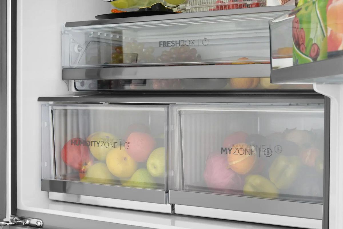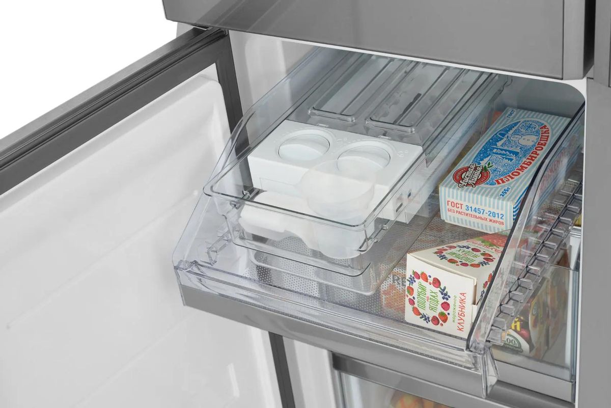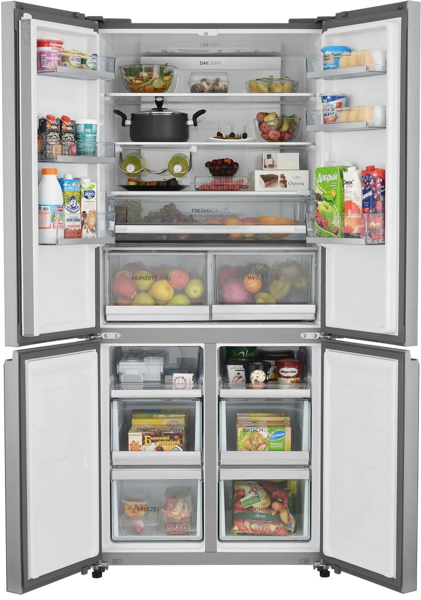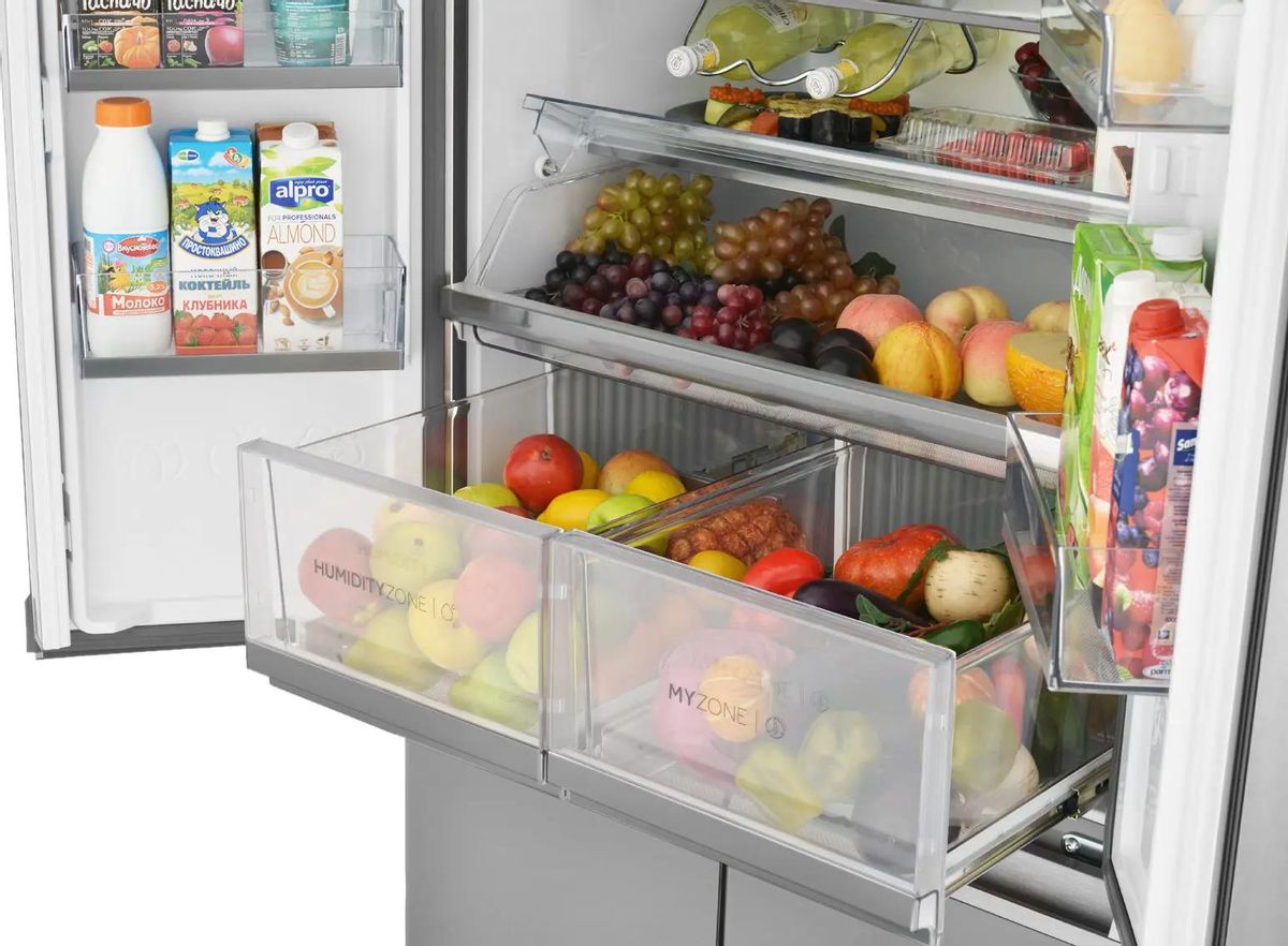 Описание Холодильник Haier HTF-508DGS7RU MyZone Отделение MyZone с широким диапазоном регулировки температуры позволяет использовать его на ваш выбор: как холодильник (до +5°C), так и как морозильную камеру (до −18°C). Технология MultiFlow Равномерное распределение воздушных потоков по холодильному отделению и точное поддержание оптимальной температуры для хранения продуктов. Поддержание влажности HCS Респираторная мембрана отводит лишнюю влажность если ее уровень более 90% или накапливает влагу при излишне сухом воздухе. Овощи и фрукты дольше остаются свежими. Ящики Humidity и Dry zone Оптимальные условия для разных продуктов в контейнерах с автоматической регулировкой влажности — Dry Zone и Humidity. Мясо или рыба, овощи или фрукты — всё будет бережно сохранено. Total NoFrost Никакого инея и льда в холодильнике. Благодаря постоянной циркуляции холодного воздуха в холодильном и морозильном отделении создаются оптимальные условия хранения продуктов. Ассортимент холодильников серии T-Door пополняется новой моделью HTF-508DGS7RU с тройной системой охлаждения. Модель объемом 505 л представлена в серебристом цвете с покрытием из стекла. Особенностью данной модели является наличие не двойной, а тройной системы охлаждения, что позволяет в одной из нижних камер (камера MyZone) устанавливать широкий диапазон температур: от +5 до −20°C, тем самым используя ее и как холодильную, и как морозильную камеру. В верхней холодильной камере предусмотрены ящики влажной зоны для хранения фруктов, овощей и салатов, а также ящик сухой зоны для масла, шоколада, сыпучих и детских продуктов. Внутреннее LED освещение Day Light в виде колонны по задней стенке позволяет достигнуть стабильной интенсивности свечения и яркого, насыщенного цвета, более устойчивого к перепадам напряжения, такой источник света не нагревается, тем самым не оказывая негативного влияния тепла на хранимые продукты.