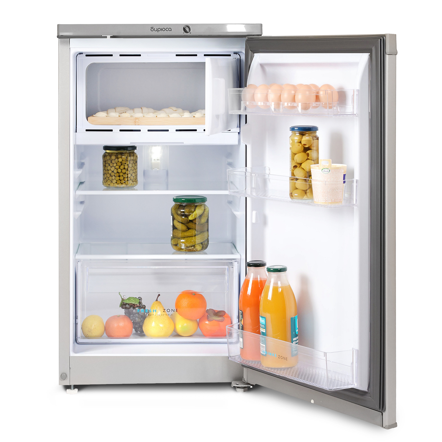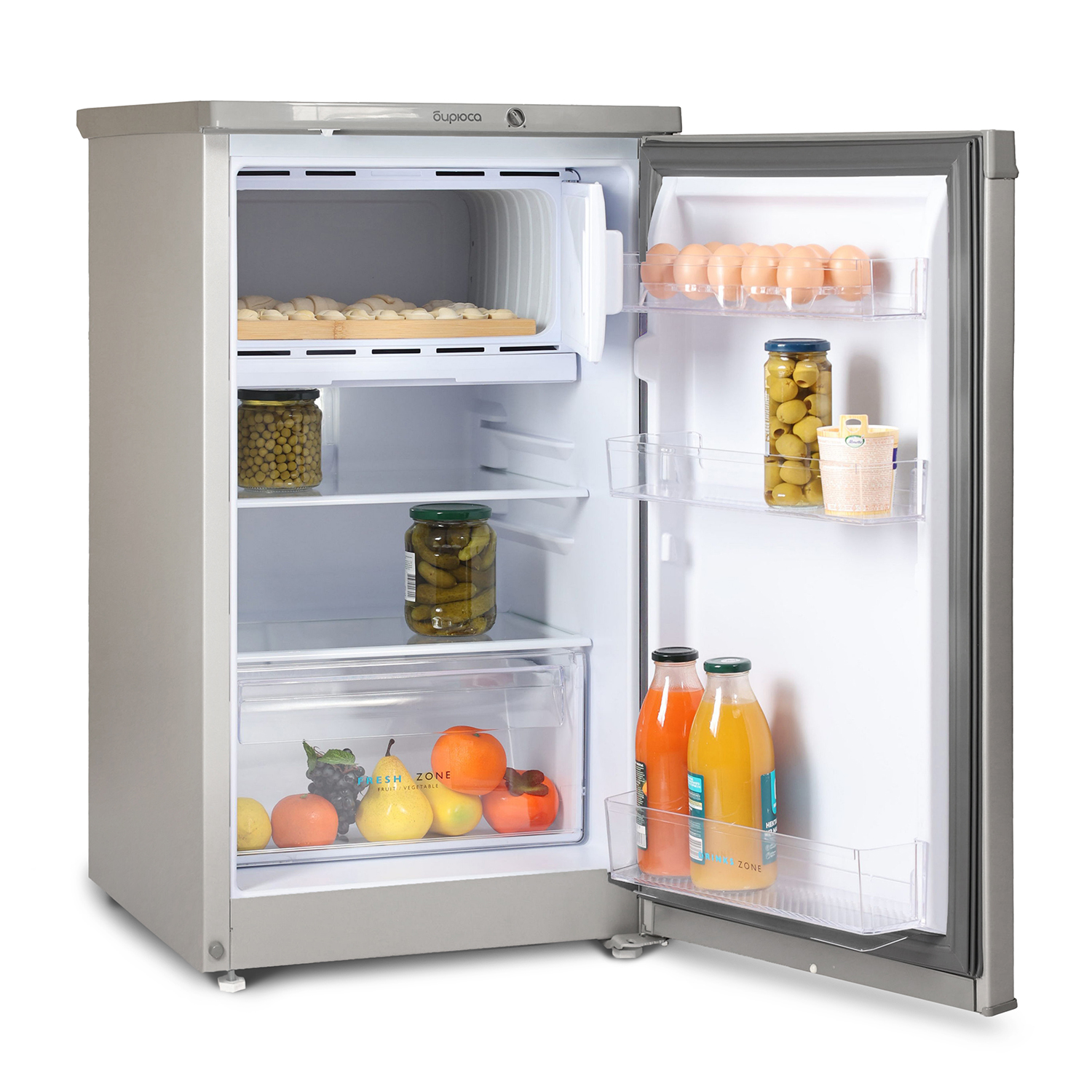Описание Холодильник Бирюса M408 Однокамерный маленький холодильник c низкотемпературным отделением Бирюса M408 имеет общий объем 115 литров и высоту 87 см. Благодаря своим компактным размерам и удобной внутренней организации холодильник Бирюса станет оптимальным решением для размещения в гостинице, отеле, офисе, общежитии или на даче. Устройство с ручной системой оттаивания характеризуется высоким классом энергоэффективности А+ и низким уровнем шума. Качественный и безопасный хладагент изобутан R600a быстро охлаждает продукты с меньшими затратами электричества. Холодильник оснащен экономичным LED-освещением, механическим управлением. Диапазон температурного режима в холодильной камере 0°С …+8°С, а в низкотемпературном отделении (НТО) не выше - 12°С. Низкотемпературное отделение подходит для хранения заготовок первой необходимости и замороженных полуфабрикатов. Две полки в холодильном отделении выполнены из закаленного стекла. Небольшие полки на дверце холодильника предусмотрены для бутылок, соусов, яиц и герметичных упаковок с сырами, йогуртами. Дверь со встроенной горизонтальной ручкой имеет возможность перенавешивания на другую сторону для комфортного открывания и установки модели в удобном месте.