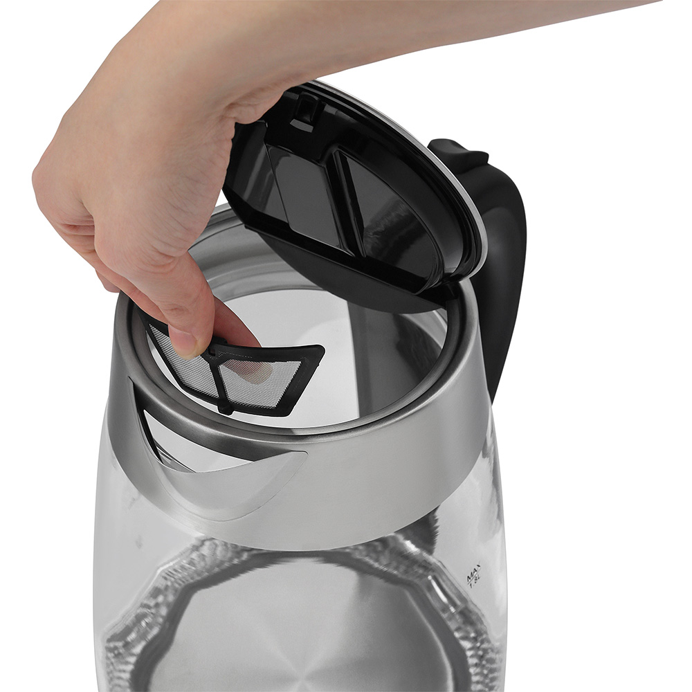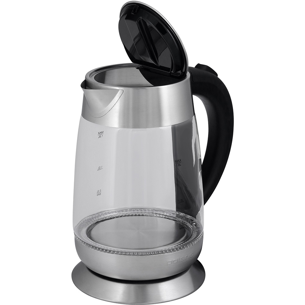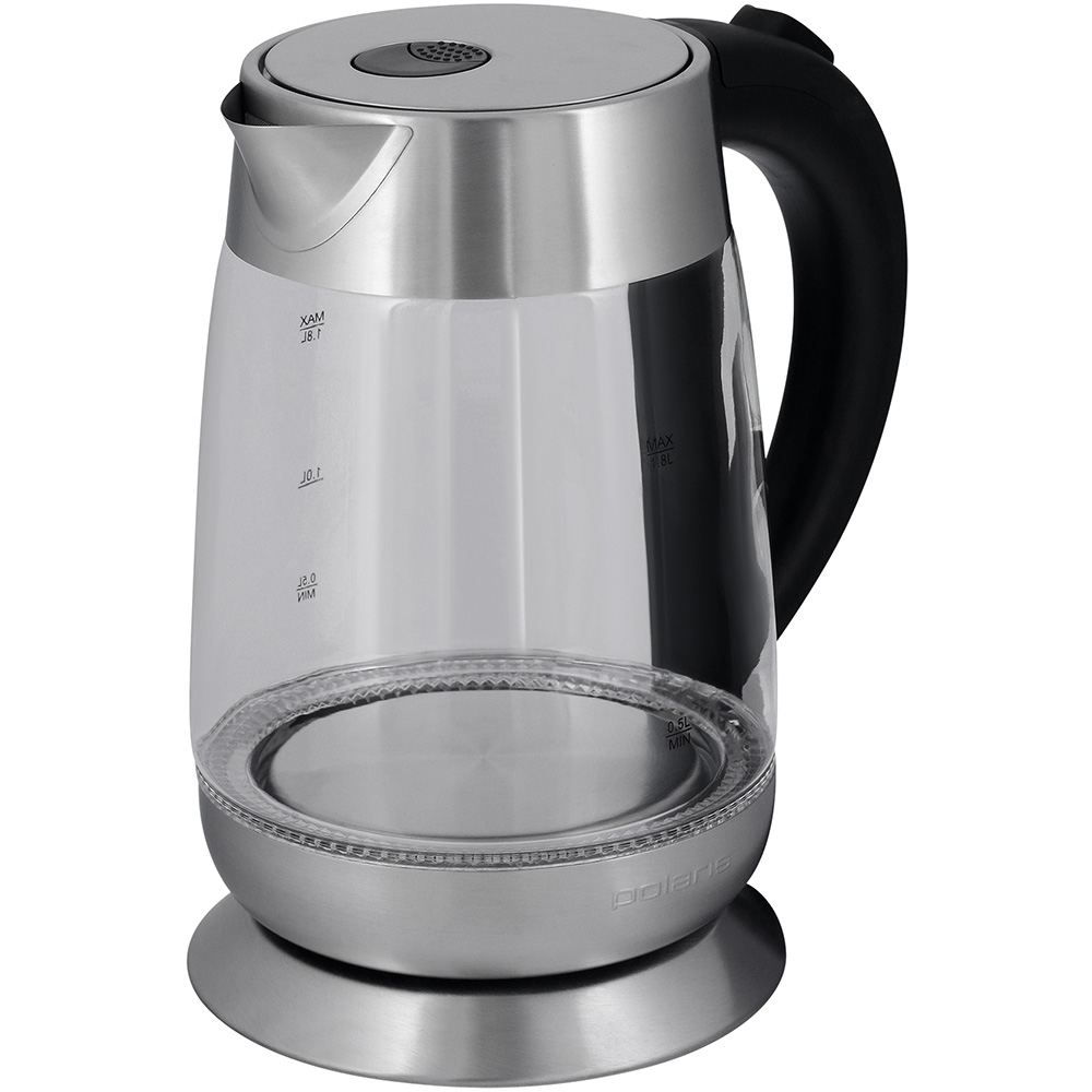 Описание Электрочайник Polaris PWK 1833CGL Электрочайник PWK 1833CGL от компании POLARIS позволит ежедневно наслаждаться вкусом любимых горячих напитков. Термостойкое стекло Корпус чайника сделан из высококачественного термостойкого стекла, а остальные части корпуса выполнены из металла. От этих факторов напрямую зависит качество напитка, так как ни металл, ни стекло не вступает в химическую реакцию с водой. Ручное и автоматическое выключение При закипании воды происходит автоматическое выключение чайника. При необходимости можно выключить чайник самостоятельно - перевести переключатель из положения «I» в положение «O». Надежный защитный комплекс Электрический чайник POLARIS PWK 1833CGL оснащен системой автоотключения при закипании, а также при отсутствии воды или недостаточном ее количестве. Также в данной модели реализовано безопасное открытие крышки путем нажатия на кнопку. Повышенный эксплуатационный комфорт За уровнем воды в резервуаре позволяет следить двусторонняя шкала, при этом изнутри вода стильно и ярко подсвечивается. У чайника имеется индикация включения, а также специальный отсек, в который можно спрятать сетевой шнур длиной 70 см. При потребляемой мощности 2200 ватт электрический чайник POLARIS PWK 1833CGL позволяет быстро вскипятить 1,8 л воды.