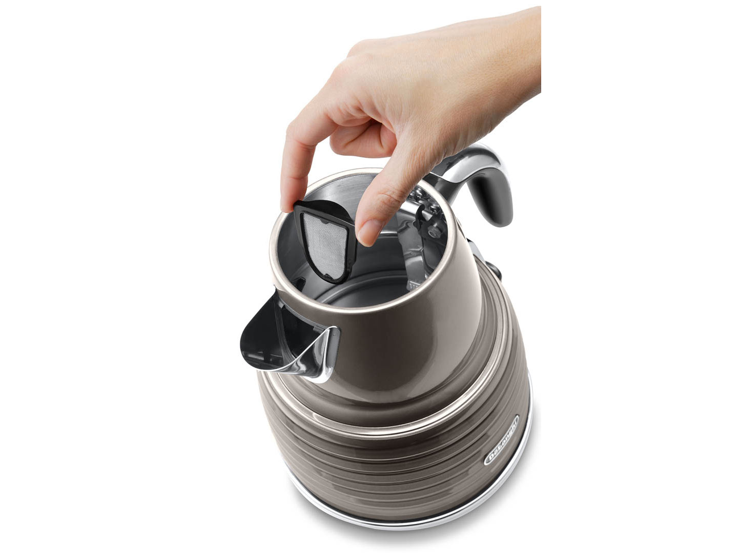 Цена получения вкусного напитка — это качество воды. Прибор KBZ 2001 серии SCULTURA внутри оснащён съёмным фильтром от накипи, который предотвращает попадание в чашку частиц накипи. Прикрепляется фильтр к носику чайника и является съёмным. Также устройство имеет скрытый нагревательный элемент, благодаря которому вода не будет иметь вкус металла.