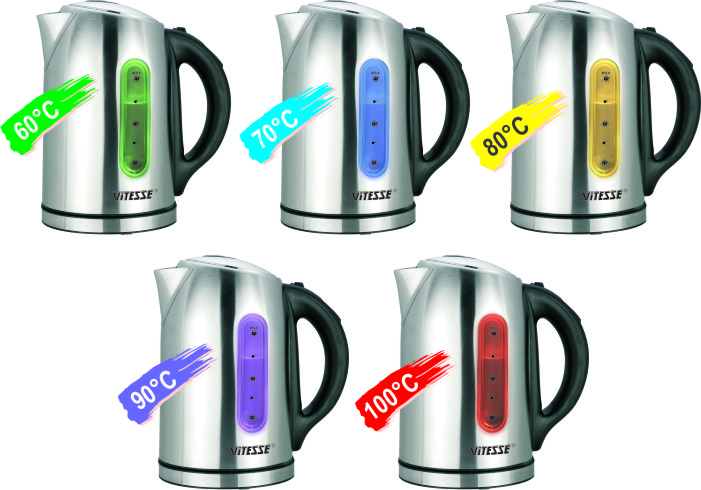Благодаря высокой мощности нагрева (2200 Вт), универсальному объему (1,7 л), а также удобной разноцветной подсветке температурных режимов приготовление ароматного чая, полезных травяных настоев и витаминных ягодных напитков станет таким же простым, как дыхание.