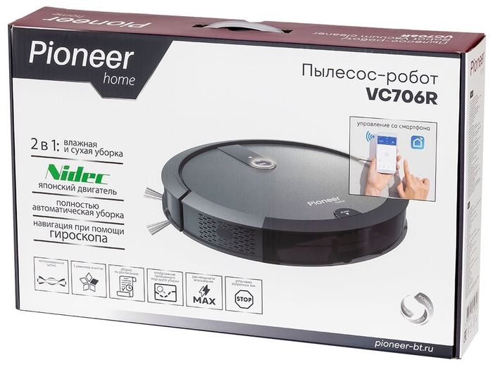 Фирма-производитель оставляет за собой право на внесение изменений в конструкцию, дизайн и комплектацию товара: Робот-пылесос Pioneer VC706R. Пожалуйста, сверяйте информацию о товаре с информацией на