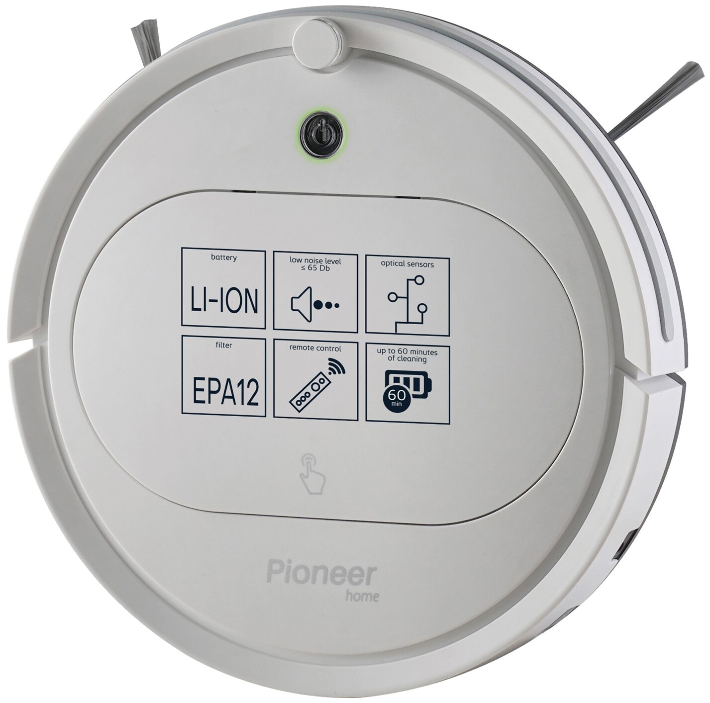 Описание Робот-пылесос Pioneer VC701R White Умный робот-пылесос Pioneer VC701R поможет вам поддерживать идеальную чистоту в любом жилом или офисном помещении. Модель VC701R выполнена в стильном пластиковом корпусе толщиной всего 7 см, что позволяет производить уборку под кроватью, диваном, тумбочкой или шкафом. Робот оборудован 2 крутящимися щетками и 3 колесами. Внутри модели имеется специальный отсек, в котором располагается съемный контейнер включающий в себя пылесборник объемом 250 мл, выпускной микрофильтр и высокоэффективный съемный моющийся фильтр тонкой очистки HEPA 12. Пылесос оборудован высокоточными оптическими датчиками, при помощи которых он ориентируется в пространстве. Риск столкновения робота с препятствиями, возникающими у него на пути, минимален и при подъезде к краю ступеней он не упадет, а развернется и поедет в обратном направлении. Управлять роботом очень просто - в комплекте к нему идет пульт ДУ. С его помощью можно выбрать или изменить режим работы, перевести прибор в спящий режим или режим ожидания. Если вы потеряете пылесос из виду, можно воспользоваться кнопкой поиска. При нажатии на нее, робот издаст звуковой сигнал. В модели VC701R предусмотрено 4 режима уборки: АВТОМАТИЧЕСКАЯ. В этом режиме робот-пылесос самостоятельно выбирает алгоритм обхода помещения, в зависимости от размера и формы территории и расположения различных препятствий. ТОЧЕЧНАЯ УБОРКА. В данном режиме пылесос будет двигаться по прямоугольной спирали, постепенно расширяя траекторию. После случайного столкновения с каким-либо препятствием прибор перейдет в автоматический режим. Этот режим удобен для более тщательной уборки небольшого пространства. Например, если вы просыпали что-то на небольшом участке. УБОРКА ПО ПЕРИМЕТРУ. В этом режиме робот будет стараться не выезжать в центр помещения, а делать его обход вдоль стен. Идеальный вариант для сбора пыли, которая скапливается в углах помещения. РУЧНОЕ УПРАВЛЕНИЯ. В данном режиме вы сможете полностью контролировать передвижения робота при помощи кнопок «вперед/назад», «вправо/влево», расположенных на пульте управления.