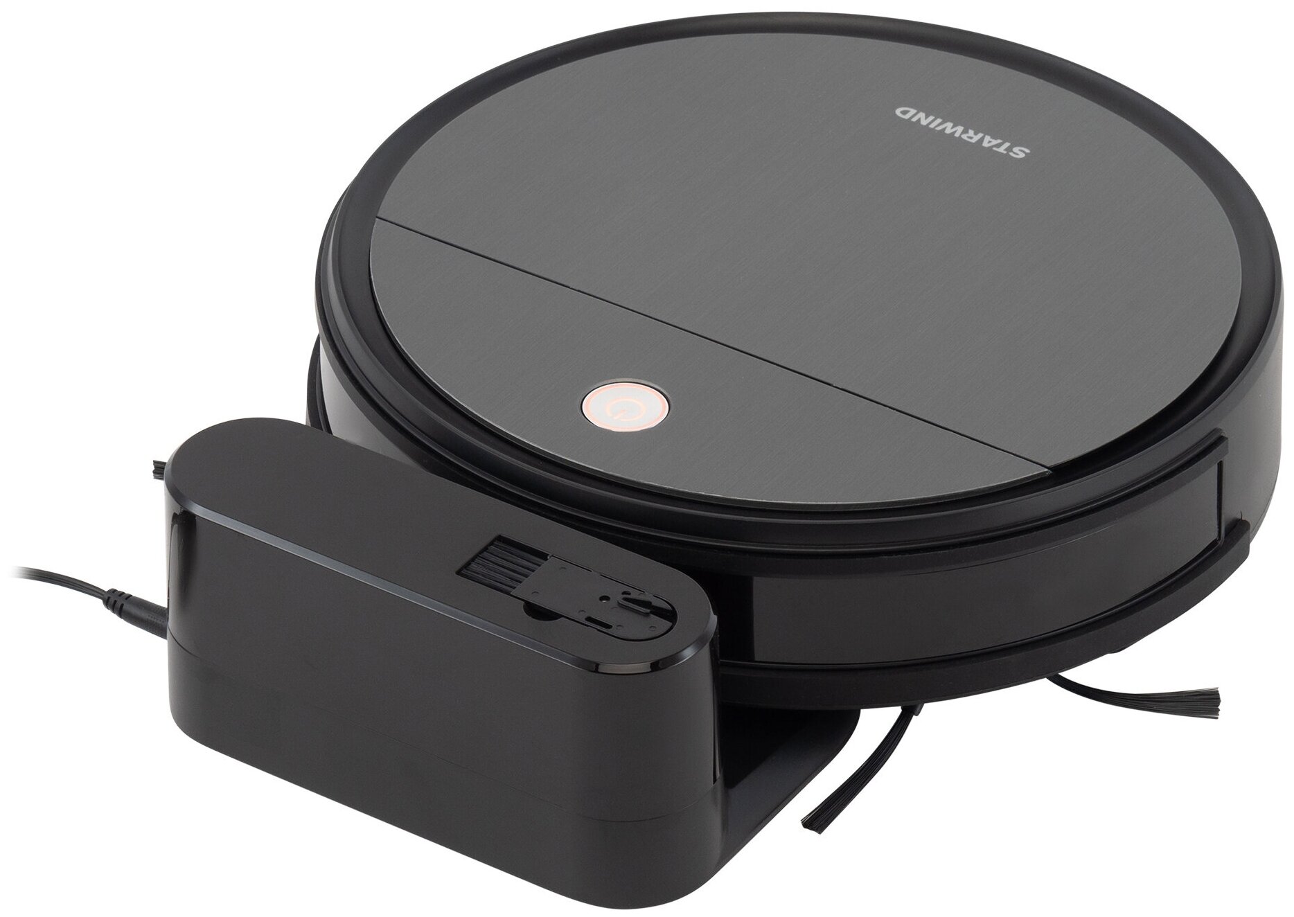 Описание Робот-пылесос StarWind SRV5115 Starwind SRV5115 – робот-пылесос, который выполняет сухую и влажную уборку. Он станет незаменимым помощником в жилом пространстве. Выполнено устройство в строгом дизайне, корпус имеет классический черный цвет. Мощность современного роботизированного пылесоса составляет порядка 25 Вт, а объем предусмотренного в конструкции резервуара для пылевых масс равен 500 мл. Прибор оснащается датчиком препятствий и перепадов высоты. Есть несколько режимов работы: локальный, по периметру помещения, полностью автоматический. Питание подается от литийионной аккумуляторной батареи емкостью 2600 мАч.