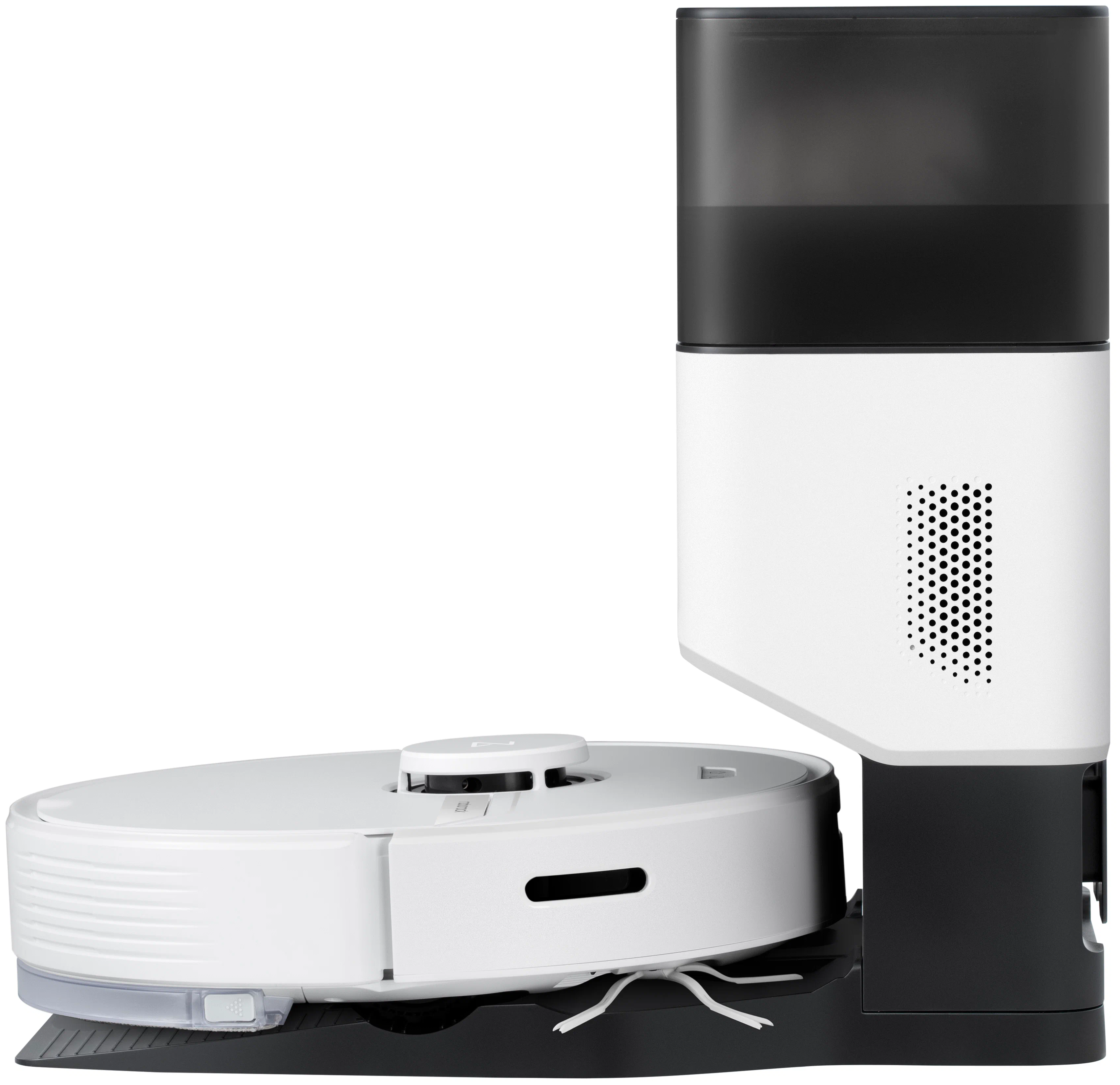 Roborock Q7 Plus поставляется вместе со станцией самоочистки, которая забирает пыль из контейнера пылесоса и выполняет зарядную функцию. Сила всасывания станции составляет 27000 Па, а объём мешка для мусора - 2.5 л. При средней нагрузке, станцию нужно опустошать примерно раз в 7 недель.