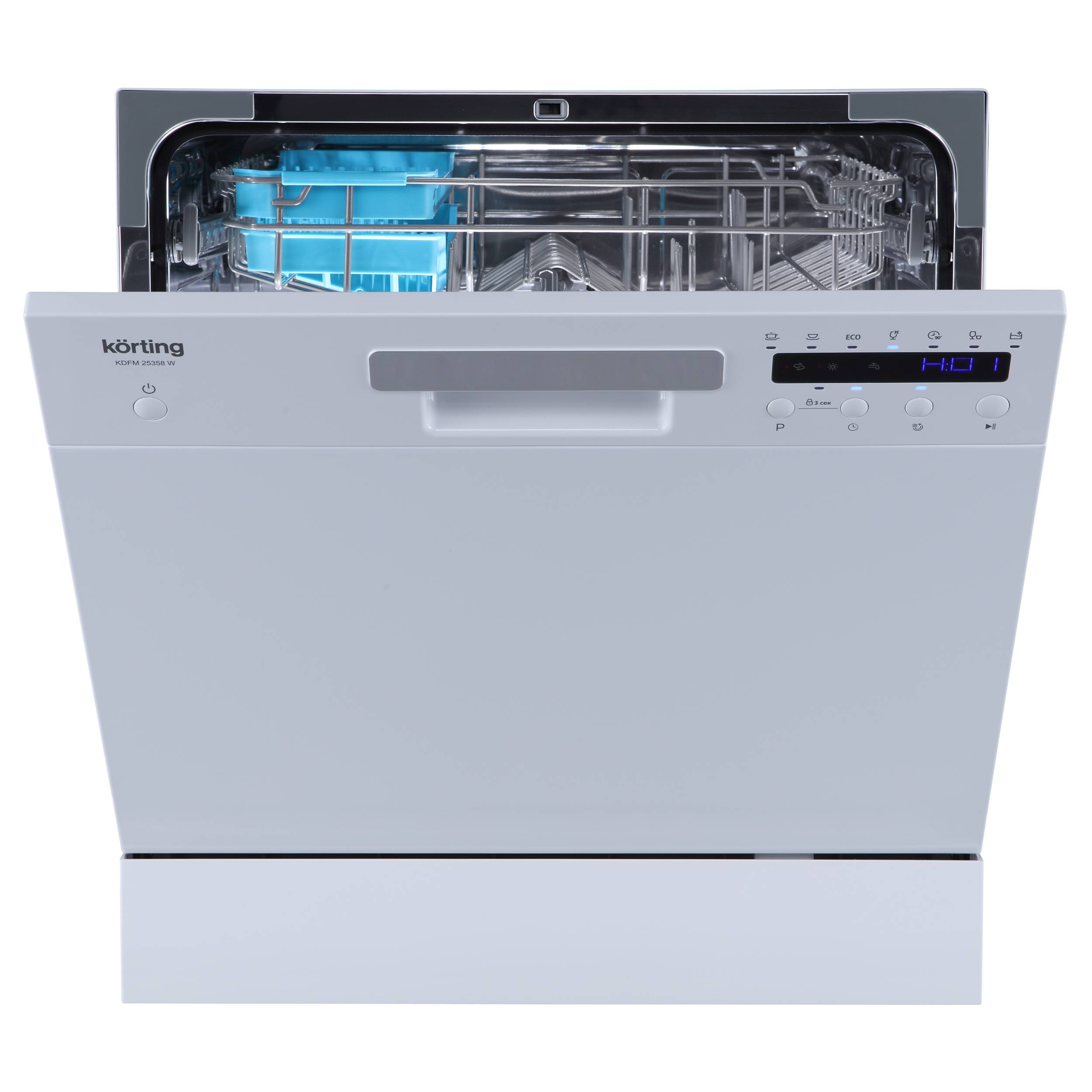 Описание Посудомоечная машина Korting KDFM 25358 W Компактные габариты Небольшие габариты компактной посудомоечной машины позволяют называть ее настольной и даже переносной. Небольшие размеры и легкость подключения помогут разместить прибор в любой части кухни, где есть коммуникации и немного свободного места, например, под раковиной или внутри кухонной колонны. В любой момент времени прибор можно переставить или даже перевезти в другое место. 7 программ мойки Большой выбор программ помогает выбрать наиболее подходящий, для любых типов посуды и видов загрязнений. Независимо от того, насколько сильными окажутся загрязнений или будет деликатным материал, прибор выполнит свою задачу наилучшим образом. Программа самоочистки Особая программа позволяет автоматически установить необходимые параметры для очистки камеры от жировых загрязнений и известнякового налета. Оптимально подобранный уровень температуры и длительности программы помогают добиться максимальной эффективности очистки при использовании специальных средств. Система защиты от протечек «AquaControl» Система защиты от протечек «AquaControl» обеспечивает автоматический контроль количества воды в посудомоечных машинах Korting. В случае перелива или протечек включается специальное устройство «AquaStop», которое блокирует подачу воды. Таким образом, от протечек застрахованы и вы, и ваши соседи. Высокий класс энергоэффективности и низкие затраты ресурсов Новые технологии подачи и распределения потоков воды позволяют улучшить качество мойки, снизить продолжительность программ, а значит сократить энергопотребление до самых современных стандартов. Современные модели Korting способны достигать невероятных результатов при минимальных затратах. Посмотрите показатели потребления для этого прибора в таблице параметров ниже и убедитесь в этом сами! Комбинированные моющие средства «All in 1» Современные моющие средства представляются на сегодняшний день в виде ополаскивателя - моющее средство, соль и прочие компоненты, собранные для еще большей простоты пользования в одной таблетке. Чтобы посудомоечная машина была приспособлена к использованию таких таблеток, существует специальная функция «All in 1». Теперь выбор моющих средств зависит только от пользователя, а не от посудомоечной машины! Функция отложенного старта Процесс мойки посуды можно отложить на заданное время, например, не дожидаясь момента действия экономичного тарифа электроэнергии, установить таймер на включение прибора в ночное время.