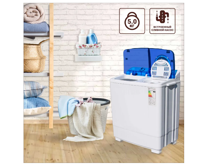 Описание Стиральная машина Willmark WMS-50P Стиральная машина даже сегодня есть не в каждой семье, что может быть объяснено не только ее дороговизной, но и банальным отсутствием места под нее. В малогабаритных квартирах производства СССР для «стиралок» места не предусматривали. Но сегодня реалии советского прошлого совершенно неактуальны, и стиральная машина является незаменимым помощником на поле битвы за чистоту и опрятность. Стиральные машины разных видов: это и классическая автоматическая, и полуавтоматическая, и ультразвуковая. Если обратить внимание на параметр объема, то можно сказать, что 4-5 кг являются оптимальным средним показателем, причем как для одинокого волка, так и для семьи из четырех человек: просто семье придется стирать чаще, чем холостяку. Если чаще семья стирать категорически не хочет, тогда ей можно предложить выбрать машину с вдвое большим объемом – таким, в который помещается до 10 кг. Полуавтоматическая стиральная машина WILLMARK WMS-50P с вертикальной загрузкой относится к типу активаторных моделей. Моделям подобного типа отдают предпочтение те, кого привлекает простота управления и отсутствие потребности в специальных программах стирки. Эта машинка-полуавтомат, вмещающая в себя 5 кг белья, способна начисто отстирать вещи из хлопка, шерсти и синтетики.