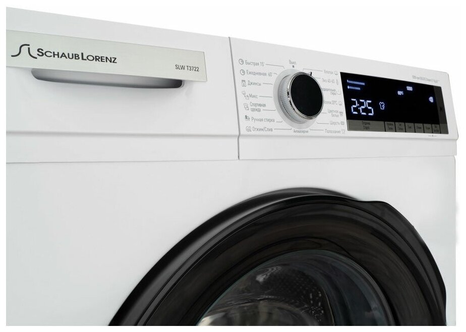 Описание Стиральная машина Schaub Lorenz SLW T3722 Стиральная машина Schaub Lorenz SLW T3722 c глубиной 49,7 см вмещает до 7 кг сухого белья. К преимуществам модели также можно отнести: Надежный и долговечный инверторный мотор экономнее расходует воду и электроэнергию, а также работает тише, чем коллекторный мотор Особый корпус BOOMERANG способствует снижению вибраций во время процесса стирки и отжима 15 программ стирки и возможность регулировать температуру и скорость отжима самостоятельно помогут подобрать оптимальный режим для любого типа одежды Программа «Антиаллергия Allergy Care» эффективно удаляет аллергены, бактерии и остатки стиральных средств из ткани Благодаря паровой системе Steam Assist глажка становится быстрой и легкой. Пар, проникая в ткани, размягчает волокна, устраняет складки и делает одежду мягкой и нежной Функция «Блокировка от детей» не позволит детям случайно изменить заданную программу стирки LED-дисплей с индикацией времени до конца стирки понятен и удобен в использовании Функция отсрочки старта даст возможность планировать свой день и стирать вещи в удобное для вас время