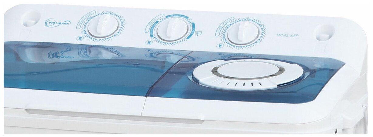 Описание Стиральная машина Willmark WMS-75P Стиральная машина даже сегодня есть не в каждой семье, что может быть объяснено не только ее дороговизной, но и банальным отсутствием места под нее. В малогабаритных квартирах производства СССР для «стиралок» места не предусматривали. Но сегодня реалии советского прошлого совершенно неактуальны, и стиральная машина является незаменимым помощником на поле битвы за чистоту и опрятность. Стиральные машины разных видов: это и классическая автоматическая, и полуавтоматическая, и ультразвуковая. Если обратить внимание на параметр объема, то можно сказать, что 4-5 кг являются оптимальным средним показателем, причем как для одинокого волка, так и для семьи из четырех человек: просто семье придется стирать чаще, чем холостяку. Если чаще семья стирать категорически не хочет, тогда ей можно предложить выбрать машину с вдвое большим объемом – таким, в который помещается до 10 кг. Полуавтоматическая стиральная машина Willmark WMS-75P с вертикальной загрузкой относится к типу активаторных моделей. Вместительность основного отсека составляет 7.5 кг белья. Максимальная скорость отжима достигает показателя в 1350 оборотов в минуту. Механические регуляторы обеспечивают удобство выбора программы, определенного времени работы и скорости отжима.