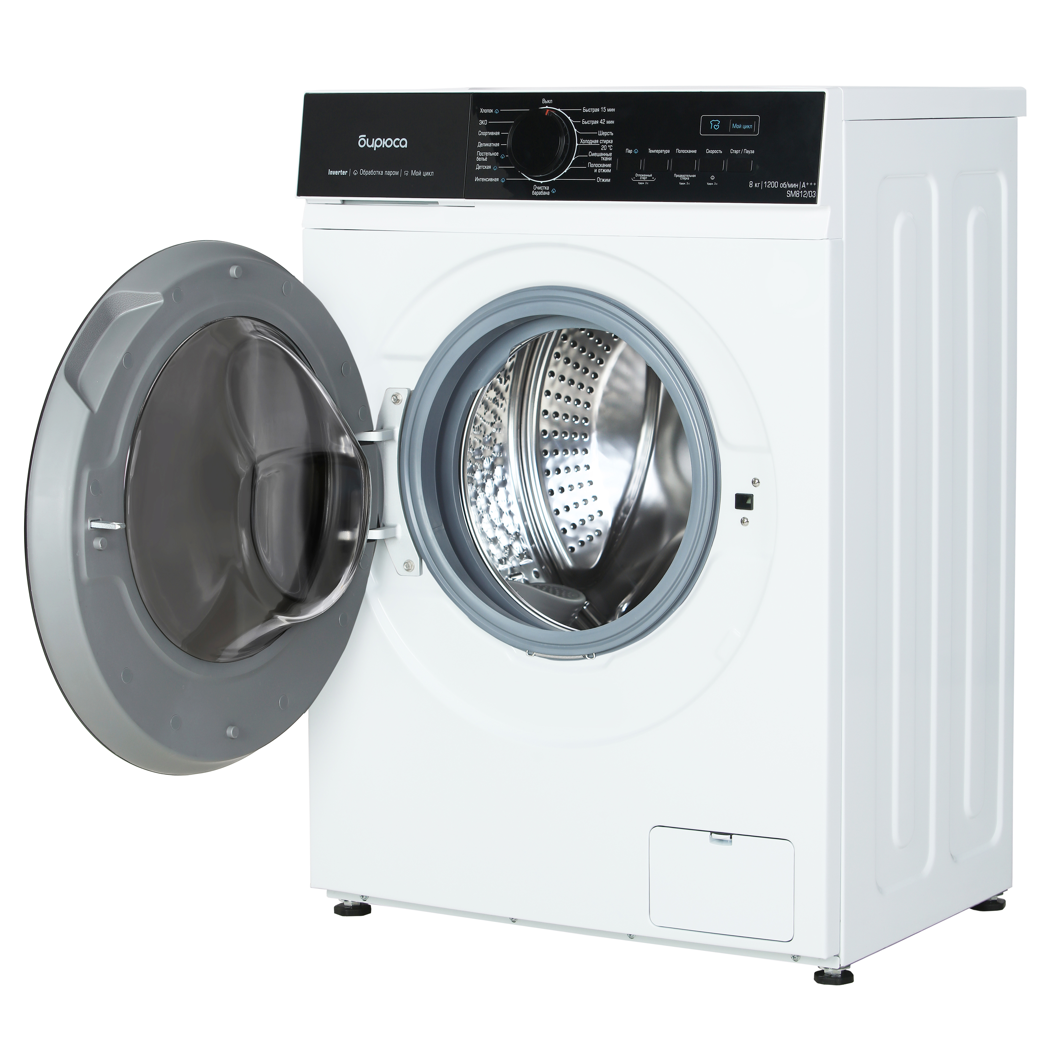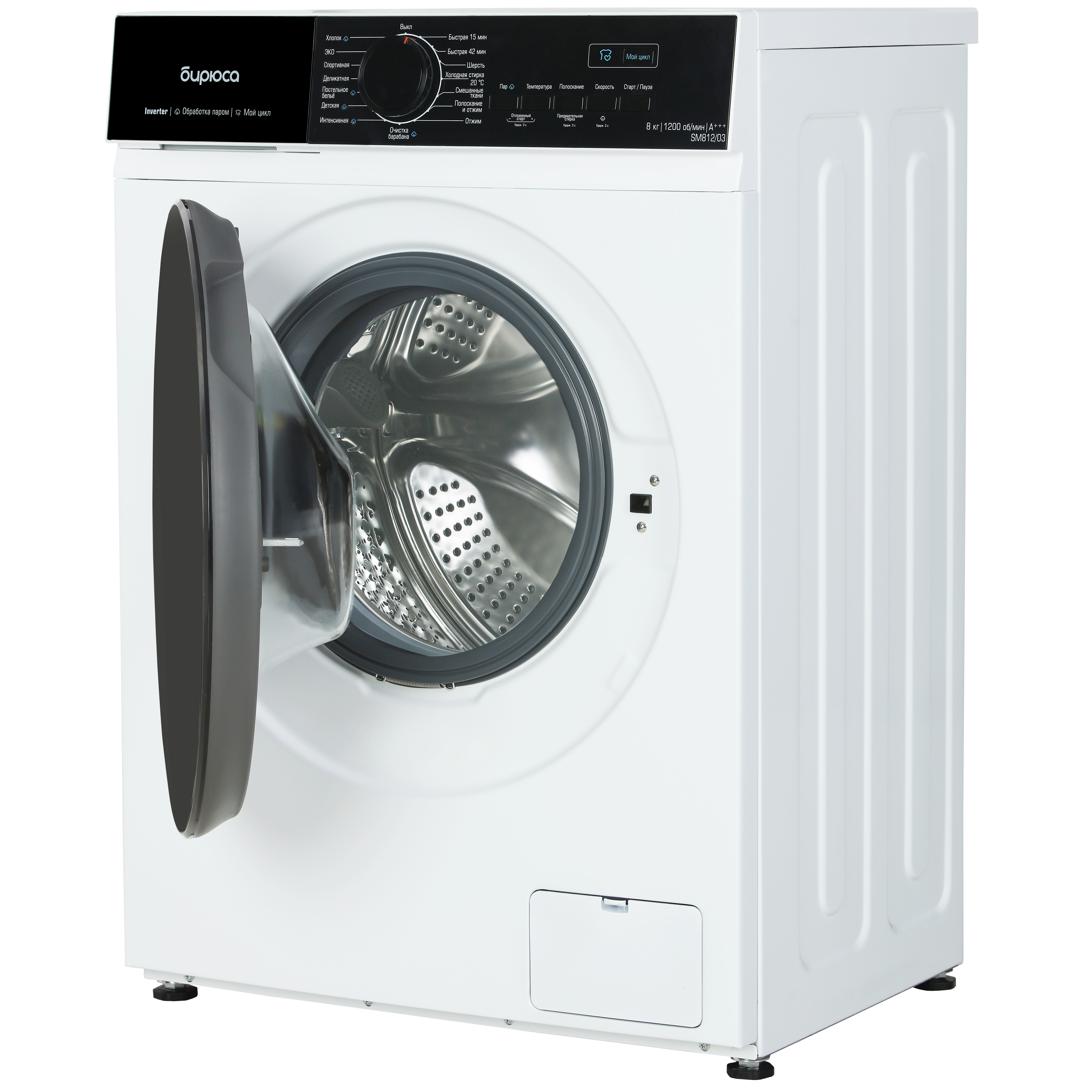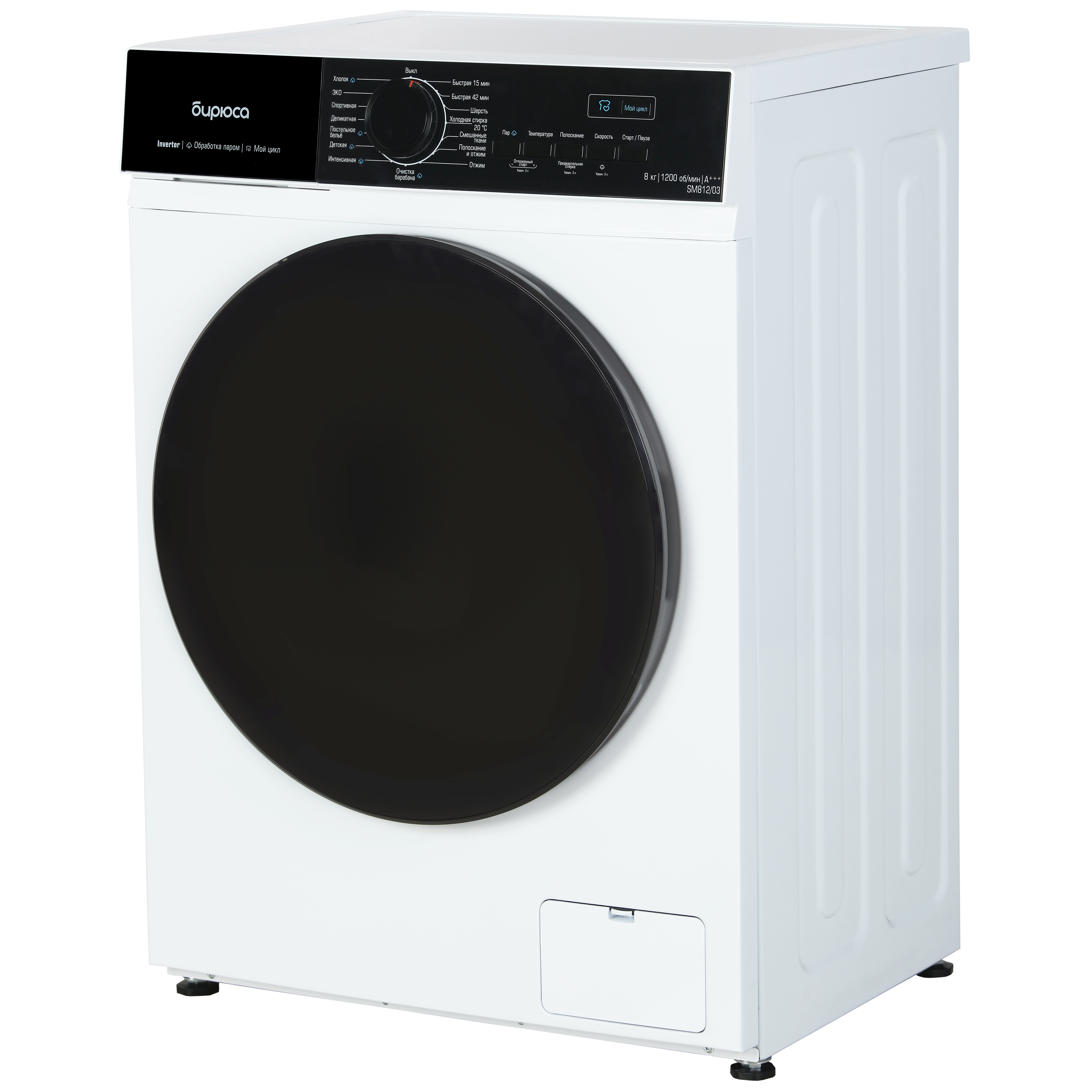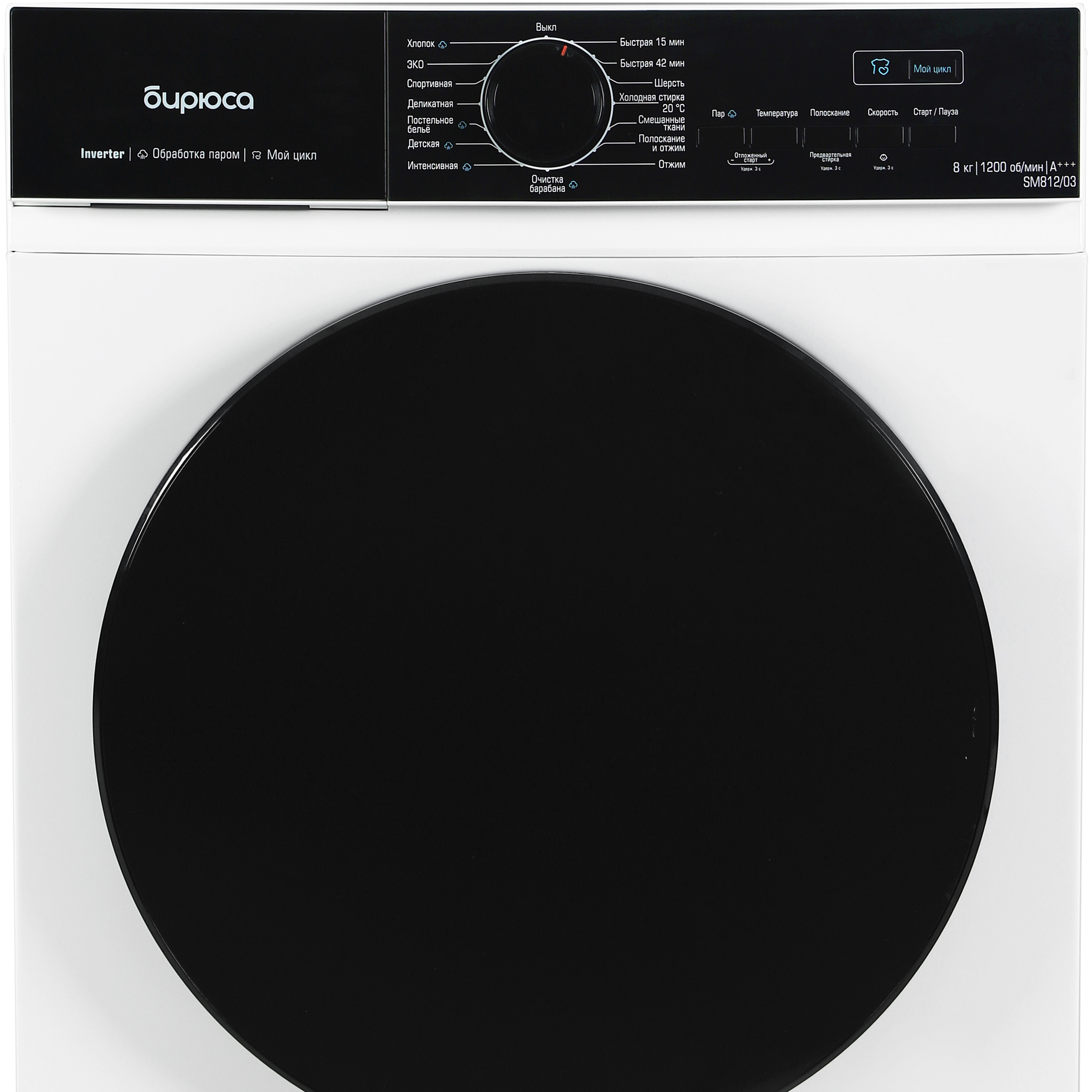 Описание Стиральная машина Бирюса WM-SM812/03 Бирюса WM-SM812/03 представляет собой стиральную машину с фронтальной загрузкой на 8 кг. Максимальная скорость отжима составляет 1200 об/мин. Стиральная машина имеет 15 различных программ стирки, благодаря которым ваши вещи будут выглядеть безупречно. Благодаря отложенному старту и системам самоочистки барабана и блокировки от детей, стиральная машина удобна в использовании. Программа очистки барабана позволит сохранить гигиеническую чистоту внутренних элементов, продлить срок эксплуатации и предотвратить преждевременную поломку стиральной машины. Самоочистка производится без дополнительных моющих средств, обрабатывая поверхность при температуре 95°С. Контроль дисбаланса во время отжима активируется автоматически.