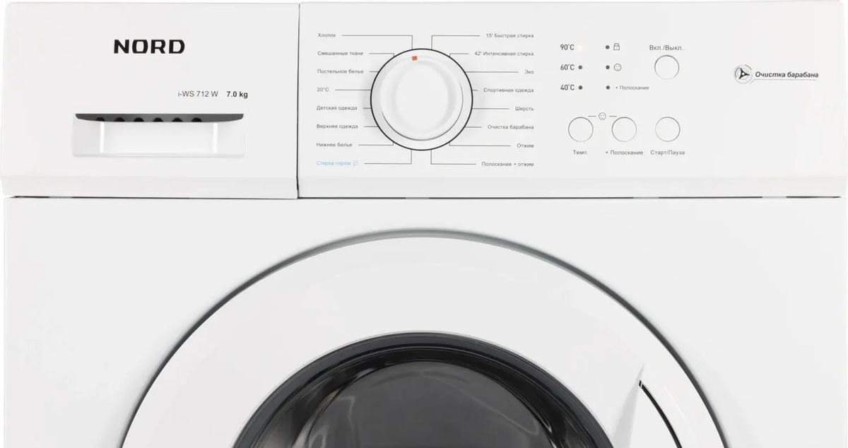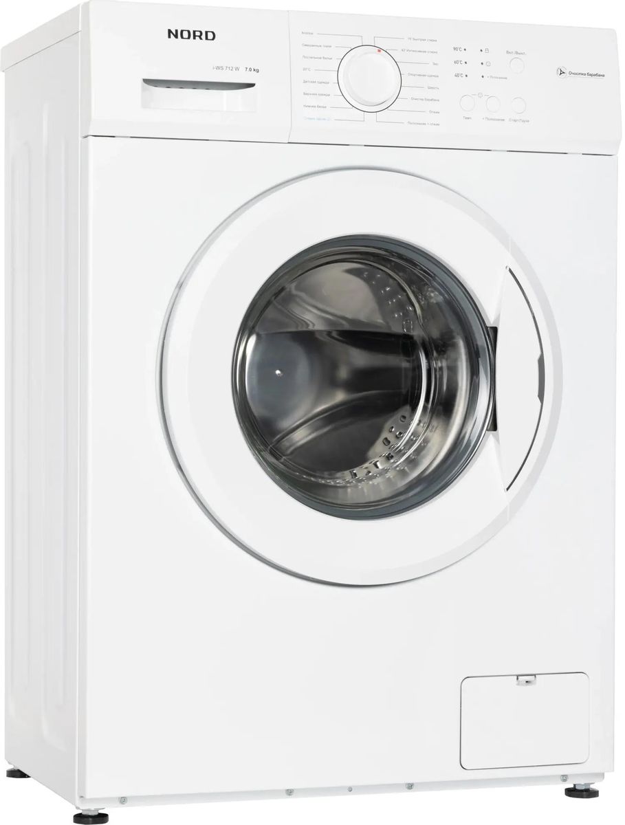 Описание Стиральная машина NORD i-WS 712 W Инверторная стиральная машина NORD i-WS2 712 W с функцией стирки с паром порадует отличными показателями – она способна постирать до 7 кг белья за один цикл, а скорость отжима доходит до 1200 оборотов в минуту. Инверторный мотор работает тише стандартного, отличается долговечностью и способствует ресурсосбережению, что подтверждено высоким классом энергоэффективности А+++. Для выбора режима, температуры и дополнительных функций на панели управления есть кнопки и механический диск, а посмотреть все параметры настроек можно на расположенном рядом LED-дисплее. В модели предусмотрено 12 автоматических программ: Хлопок, Эко, Спорт, Постельное белье, Детская одежда, Стирка с паром, Смешанные ткани, 20 °C, 15’ Быстрая стирка, Шерсть, Отжим, Полоскание+отжим. Стиральная машина оснащена интеллектуальной программой «Smart», которая позволяет запустить стирку в одно касание. Умное устройство автоматически определит вес белья и необходимое время стирки, а также температуру воды в зависимости от степени и стойкости загрязнения Здесь всё продумано до мелочей для оптимального результата: автовзвешивание определяет необходимое количество воды, а стирка с паром придает белью свежесть, устраняет неприятные запахи, бактерии и аллергены, а также способствует глубокой очистке ткани, бережно сохраняя структуру ее волокон. «Отсрочка старта» позволяет отложить выполнение программы по времени для вашего комфорта. Также модель оснащена блокировкой от детей, контролем пенообразования и автобалансировкой. Для очень сильных загрязнений можно воспользоваться функцией предварительной стирки перед основным циклом. Функция «Очистка барабана» позволяет избавиться от оставшихся в барабане и баке нерастворимых веществ и других загрязнений. Барабан выполнен из прочной высококачественной нержавеющей стали. Волновой подъемник, используемый в данной модели, обеспечивает бережную, но эффективную стирку. Сложная геометрия подъемника мягко воздействует на белье, снижая риск износа и повреждения ткани, при этом повышая эффективность удаления загрязнений. Глубина стиральной машины i-WS 712 W всего 44 см, благодаря чему её можно спокойно размещать даже в небольших ванных комнатах.