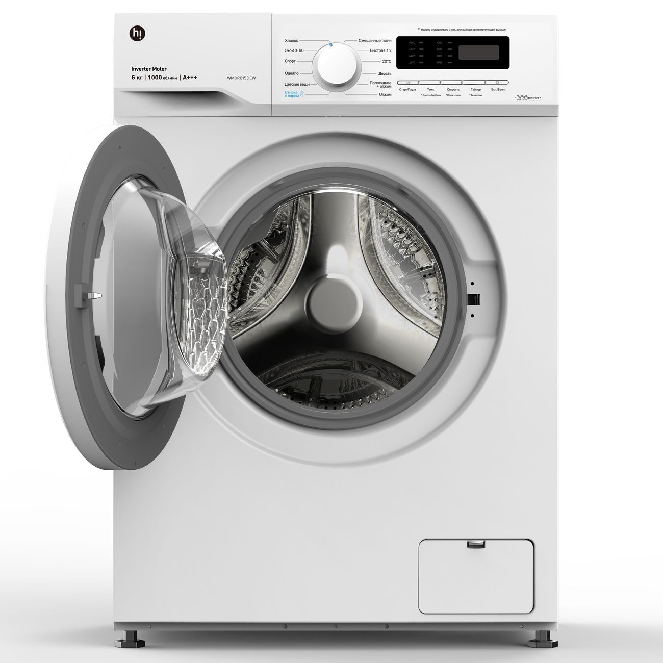 Описание Стиральная машина HI WM0R615DEW Узкая стиральная машина Hi WM0R615DEW - компактная модель габаритами 84х59,5х42 см. Максимальная загрузка барабана составляет 6 кг. Широкий выбор функций Машина оснащена функцией отсрочки запуска, выбора температуры стирки, опцией дополнительного полоскания, звуковым сигналом по окончании стирки. Безопасность Предусмотрен контроль пенообразования и защита от детей. Они обеспечивают безопасную эксплуатацию. 12 программ стирки Предусмотрены режимы: Хлопок, Хлопок Эко, Синтетика, Смешанное белье, Шерсть, Нижнее белье, Спортивная одежда, Детская одежда, Постельное белье, Быстрая стирка, Отжим, Полоскание + отжим, Очистка барабана. Узкая стиральная машина Hi WM0R615DEW обладает классом стирки A и отжима C. Уровень шума при стирке составляет 60 дБ, при отжиме - 74 дБ. Максимальная скорость отжима - 1000 об/мин, ее можно регулировать.
