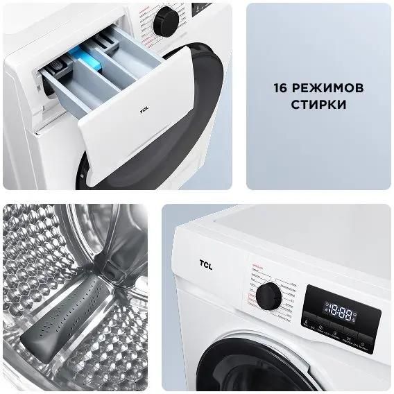 Описание Стиральная машина TCL W-SF606W Стиральная машина узкая TCL W-SF606W выполнена в корпусе белого цвета, оборудована с черной дверцей. Прибор рассчитан на стирку до 6 кг белья. Небольшие габариты 85х60х38,2 см позволяют удобно разместить устройство в небольших ванных комнатах или на кухне. Инверторный мотор Гарантирует долговечную и экономичную работу. Конструкция обеспечивает низкий уровень вибрации и шума, что способствует комфортной эксплуатации. Сотовый барабан Защищает ткани от повреждений. Объема 39 л достаточно для эффективного перемещения белья. Многофункциональность Доступны программы «Хлопок», «Шерсть», «Деликатная», «Смешанные ткани» и другие. Функции «Антиаллергия» и «Антибактерии» поддерживают гигиеническую чистоту. Режим быстрой стирки длится 15 минут. Защитные системы Безопасность обеспечивают контроль дисбаланса и пенообразования, предусмотрен блокиратор случайного включения и смены настроек. Частичная защита от протечек типа Overflow и отключение при скачках напряжения предотвращают возможные аварии. За управление отвечает механический регулятор, сенсорные клавиши, на цифровом дисплее отображаются этапы работы. Максимальная скорость отжима достигает 1000 об/мин, класс энергоэффективности A. Расход воды за цикл составляет 50 л, доступна дозагрузка белья и отложенный старт на срок до суток