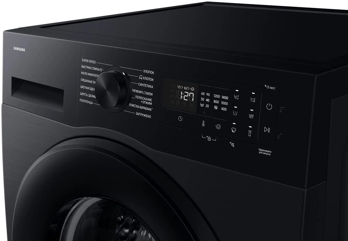 Описание Стиральная машина Samsung WW90DG5U34ABLP Интеллектуальные технологии энергопотребления Режим AI Energy приложения SmartThings Контролируйте и уменьшайте энергопотребление вашей стиральной машиной. Режим AI Energy позволяет вам проверить энергопотребление и рассчитать свой счет за электроэнергию. Для циклов стирки в режиме AI Energy это сокращает потребление энергии до 70% за счет использования технологии Ecobubble™ при стирке в холодной воде вместо теплой и при большей продолжительности цикла. Экономная стирка Экстравысокая экономичность A-10% Стирайте одежду с меньшими затратами электроэнергии. Стиральная машина Samsung отличается высокой экономичностью и даже на 10% превосходит минимальные требования к этому показателю для бытовой техники класса А. Передовые технологии повышают эффективность стирки и сокращают время рабочего цикла, что снижает энергопотребление. Интеллектуальная и бережная стирка Технология AI EcoBubble Оцените эффективную стирку с технологией AI Ecobubble™. При этом образуются пузырьки, которые удаляют на 24% больше загрязнений даже в прохладной воде. Машина с этой технологией также определяет тип ткани, оптимизирует количество пузырьков, время стирки, температуру и скорость отжима. При этом экономится до 70% электроэнергии по сравнению со стиркой в теплой воде, а сохранность ткани повышается на 45,5%. Стирка за 39 минут Режим Super Speed С циклом Super Speed одежда отстирывается за 39 минут*. Технология QuickDrive™ экономит время за счет динамичного перемешивания белья, а технология Eco Bubble™ обеспечивает эффективное удаления загрязнений. Использование режима Speed Spray сокращает время полоскания и увеличивает скорость отжима. Уменьшение образования микроволокон Цикл Less Microfiber Благодаря циклу «Less Microfiber» из ткани выделяется меньше микроволокон пластика, попадающих затем в систему канализации. За счет оптимизации скорости вращения электромотора и интенсивности стирки до 54% снижается количество микроволокна, выбрасываемого в окружающую среду. Интенсивная чистка Технология Bubble Soak Обеспечьте чистоту своей одежды с помощью технологии Bubble Soak (Пропитывание пузырьками), которая способствует удалению даже застарелых пятен разного типа, включая пятна крови, вина, косметики и травы. Одежда смачивается активными пузырьками пены, что повышает эффективность стирки. Онлайн-стиль жизни со SmartThings Встроенный модуль Wi-Fi Стирайте легко и эффективно с помощью приложения SmartThings. Программа «Laundry Recipe» порекомендует вам оптимальный цикл стирки, а «Laundry Planner» оптимизирует ваше дневное расписание. Программа Auto Cycle Link выберет режим сушки для сушильной машины. SmatThings Energy Эффективное энергопотребление. Умная экономия. Функция SmartThings Energy дает советы по экономии энергопотребления. Она также отслеживает энергопотребление приборов** в режиме реального времени, сравнивая его с показателями за предыдущий месяц. А еще предупреждает о возможном превышении целевых показателей на текущий месяц. SmatThings Home care Умное обслуживания. Простой уход. Функция Home Care приложения SmartThings уведомляет вас о неполадках, а также помогает устранять их. Кроме того, она покажет вам, как обновить программное обеспечение сервисов и устройств. Содержит полезные советы по использованию и руководство пользователя. Гигиена Пар распыляется внутри дверцы стиральной машины, удаляя аллергены и бактерии. Паровая ст
