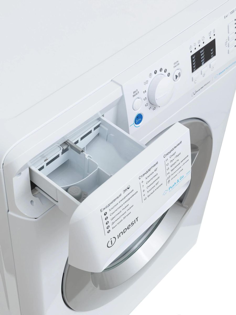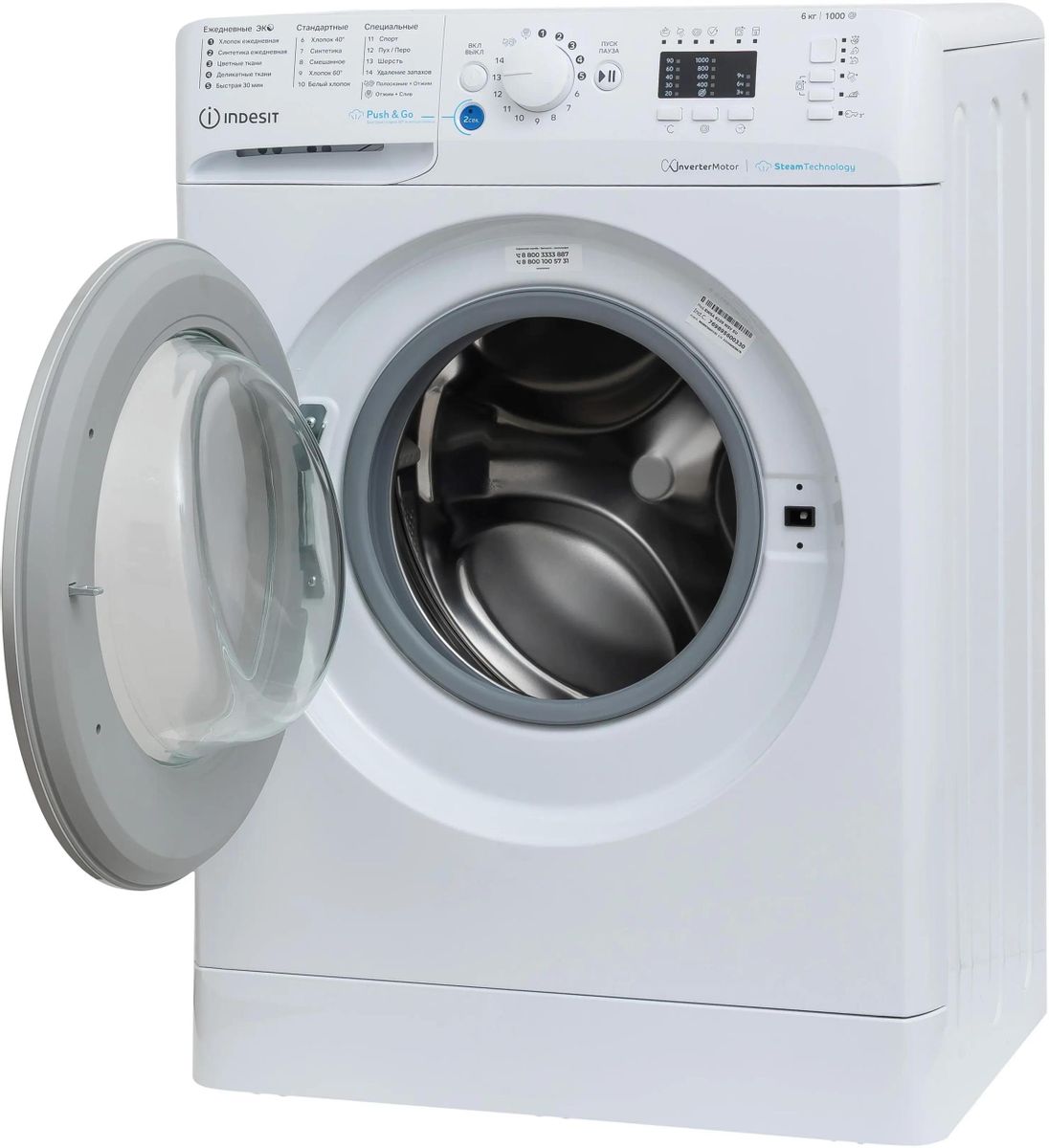 Описание Стиральная машина Indesit BWSA 6109 WSV RU Комфортная загрузка даже объемных вещей Не важно, что вы собрались стирать сегодня – пару футболок, зимний пуховик или одеяло. За счет большого загрузочного люка вы легко сможете загрузить и выгрузить даже объемные вещи. Понятное управление и индикация Дисплей предлагает интуитивное управление и понятную индикацию выбранных режима и функций. Вы сможете легко подобрать подходящую программу, увидеть время и оценить прогресс стирки. Экономия вашего времени каждый день Всего одно нажатие — стирка и глажка еще никогда не были такими легкими. С технологией Push&Go Steam одним нажатием кнопки вы сможете запустить полноценный цикл стирки, включающий отжим и легкую обработку паром для смягчения ткани и облегчения дальнейшей глажки. Весь процесс займет не более часа. Меньше шума, больше надежности Инверторный мотор работает тихо и меньше подвержен износу за счет возможности плавного управления оборотами и снижения негативного воздействия пусковых токов. Автоматическая экономия воды Благодаря специальному датчику Water Balance Plus стиральная машина автоматически определит объем загрузки и будет поддерживать необходимое количество воды в течение всей стирки. Итоговая экономия воды может составить до 50%. Специальные программы для любителей спорта Запатентованные спортивные программы помогут легко отстирать следы пота с формы или уличную грязь с обуви. Они не только качественно удаляют сложные загрязнения, но и делают это бережно для вещей и стиральной машины. Например, при стирке обуви исключается дисбаланс барабана, защищая стиральную машину и обувь от повреждений и ощутимо снижая уровень шума.