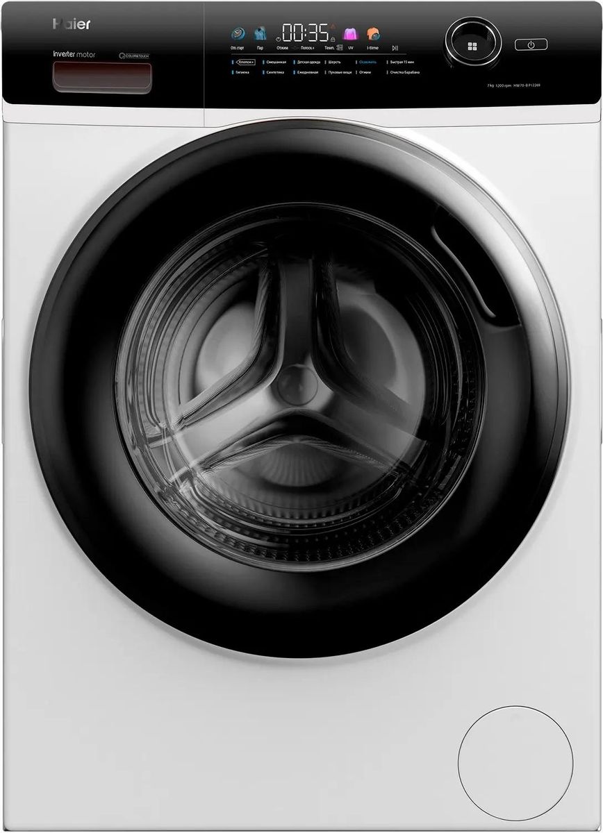 Описание Стиральная машина Haier HW70-BP12269 i-Time Применение функции автоматически оптимизирует настройки времени для уже выбранной вами программы стирки. Программа «Пуховые вещи» Специальный алгоритм стирки позволяет бережно и эффективно стирать пуховики, подушки, одеяла и другие вещи с пухом. Инверторный мотор с гарантией 12 лет Современный бесщёточный мотор: тихий и долговечный, благодаря уменьшению точек трения. Инверторный контроль мощности снижает расход электроэнергии. Гарантия — 12 лет. Современный цветной дисплей Colour&Touch С 12 интеллектуальными программами стирки. С помощью удобного поворотного селектора выбирайте любую из программ на ярком цветном дисплее. UV-обработка Удаление аллергенов и вирусов с помощью ультрафиолета — гигиеническая чистота как вашей одежды, так и самой стиральной машины. Ультрафиолет на страже гигиенической чистоты вашего белья и здоровья вашей семьи. Smart Dual Spray Манжета и внутренняя поверхность стекла дверцы люка всегда остаются чистыми, благодаря автоматическому промыванию направленными струями воды. Шланг с Aquastop Сохранит ваше спокойствие во время стирки. Больше нет необходимости находиться дома, пока идет стирка: механическая система защиты перекроет подачу воды в случае утечки. Haier HW70-BP12269 — это узкая стиральная машина с фронтальным типом загрузки. Модель выполнена в белом цвете, вмещает до 7 килограмм сухого белья и может работать со скоростью отжима до 1200 оборотов в минуту. Инверторный мотор обеспечивает бесшумную работу и сверхнизкое энергопотребление (класс A+++). Комплектация включает шланг с защитой от протечки Aquastop. В распоряжении пользователя 12 интеллектуальных программ для стирки любых типов тканей: от хлопка и синтетики до пуха и шерсти. Диапазон рабочих температур — от 20 °C до 90 °C. Усилить эффект от программ позволяют дополнительные функции: UV-обработка уничтожает бактерии в воде и во внутреннем пространстве машинки, а обработка одежды паром разглаживает волокна ткани и облегчает глажку вещей после стирки. Также предусмотрен отложенный старт с таймером от 30 минут до 24 часов и возможность корректировать время выполнения программ за счет опции i-time. Настроить параметры стирки можно с помощью сенсорной панели управления с цветным дисплеем Color&Touch.
