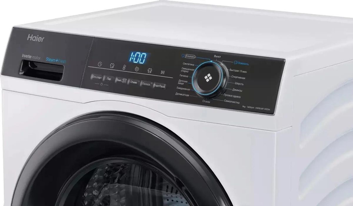 Описание Стиральная машина Haier HW90-BP14929A Smart Dual Spray Манжета и внутренняя поверхность стекла дверцы люка всегда остаются чистыми благодаря автоматическому промыванию направленными струями воды. Auto weighing Стиральная машина сама определяет степень загрузки и оптимизирует процесс: использует нужный объем воды и рассчитывает подходящее для великолепного результата время стирки. Инверторный мотор с гарантией 12 лет Современный бесщёточный мотор: тихий и долговечный, благодаря уменьшению точек трения. Инверторный контроль мощности снижает расход электроэнергии. Гарантия — 12 лет. Барабан Pillow Внутренняя поверхность стирального барабана имеет форму подушечек. Ткань легко скользит по ним — вещи стираются очень бережно, но эффективно. Даже самые деликатные. Антибактериальная обработка ABT Благодаря антибактериальной обработке манжеты люка и кюветы для стирального порошка соблюдается гигиена: не развиваются плесень и грибок Программа освежения паром Любая одежда, даже та, которую нельзя стирать в стиральной машине, будет приведена в порядок: пар удалит запахи, вернет прежнюю форму и разгладит складки. Установка сушильной и стиральной машины в колонну Идеальная и эргономичная пара для организации пространства и вашего удобства — установка сушильной и стиральной машины в колонну с помощью соединительного элемента. Haier HW90-BP14929A — полноразмерная стиральная машина с загрузкой до 9 кг и скоростью вращения барабана до 1400 об/мин. Внутри установлен инверторный мотор с максимальным классом энергоэффективности А+++. Гарантия на мотор — 12 лет, это говорит о его надежности. Цвет корпуса Haier HW90-BP14929A — белый, дверца и панель управления черного цвета. О вещах позаботятся 15 интеллектуальных программ стирки, включая режим для деликатных вещей, усиленную гигиену при 90 ℃ и самоочистку. Стиральная машина оборудована важнейшими технологиями Haier. Обработка паром освежит одежду (даже ту, которой стирка в воде противопоказана). Если активировать пар во время обычной стирки, порошок глубже проникнет в ткань. Антибактериальная обработка манжеты люка и лотка для чистящих средств, а также технология Smart Dual Spray защитят ваши вещи и технику от плесени и бактерий. Барабан с подушечками Pillow будет максимально бережно работать с любыми тканями.