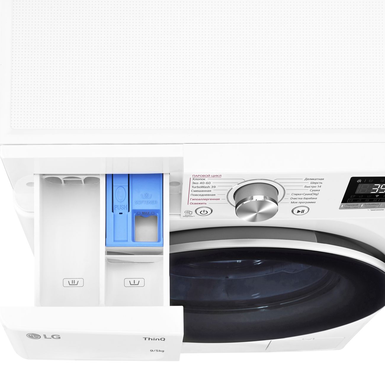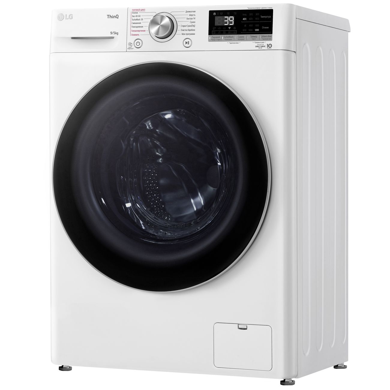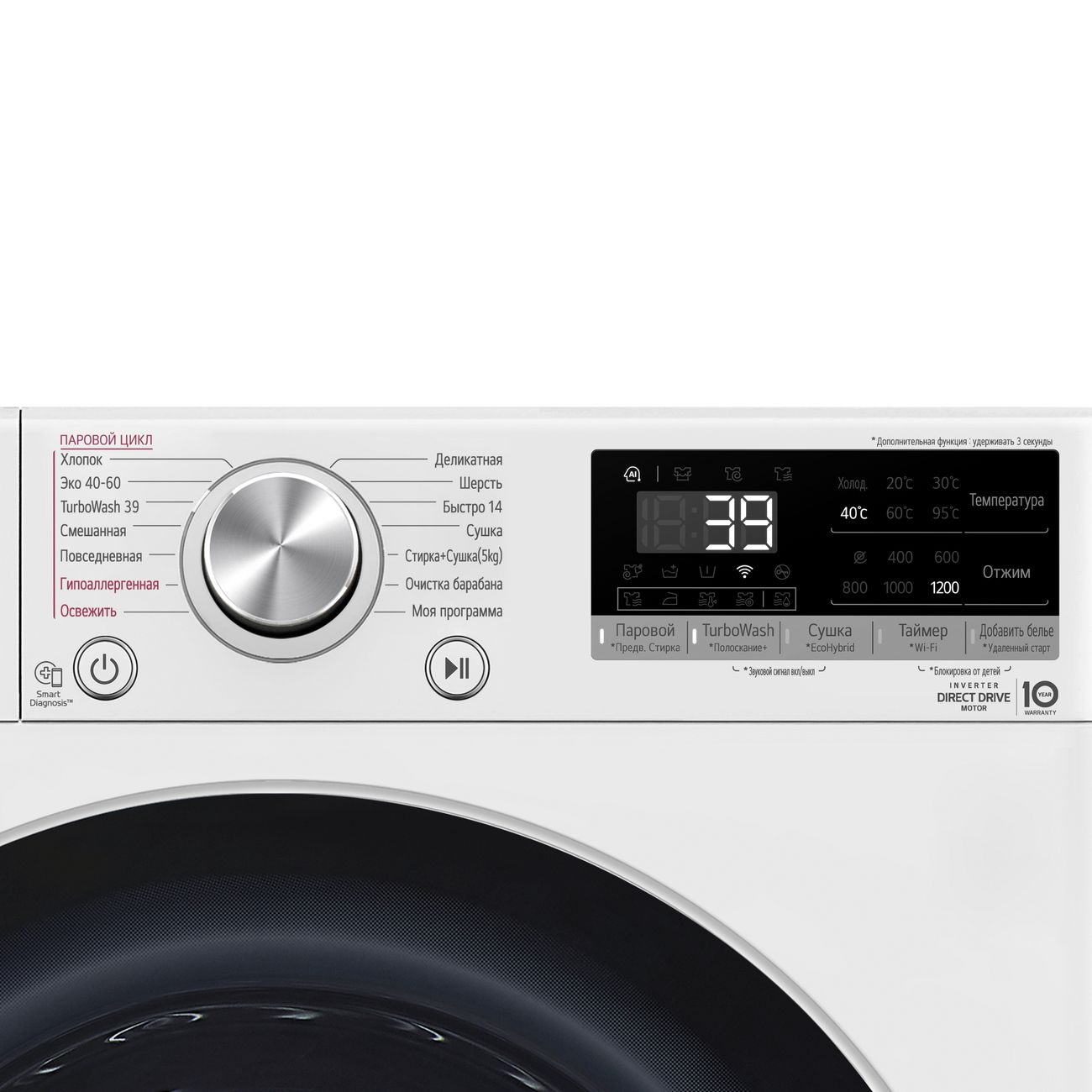 Описание Стиральная машина LG F-2V7FR1W Стиральная машина с сушкой LG F2V7FR1W глубиной 47,5 см имеет максимальную загрузку до 9 кг белья для стирки, до 5 кг — для сушки. Инверторный двигатель Снижает уровень шума до 53 дБ при стирке и 71 дБ — при отжиме. Програмы сушки Среди них — «Стандартная», «Для глажки», «Эко сушка» и другие. 13 программ стирки Включают различные режимы: «Хлопок», «Деликатная», «Гипоаллергенная», «Предварительная стирка», «Полоскание+», TurboWash 39 и прочие. Поддержка Wi-Fi и управление через приложение LG ThinQ Позволяет управлять стиральной машиной удаленно, с мобильного устройства. Технология 6 Motion Обеспечивает различные движения барабана, адаптируя их к типу ткани и степени загрязненности. Стиральная машина LG F2V7FR1W оснащена встроенной защитой от протечек. Предусмотрена опция обработки белья паром и возможность регулировки температуры воды при стирке.