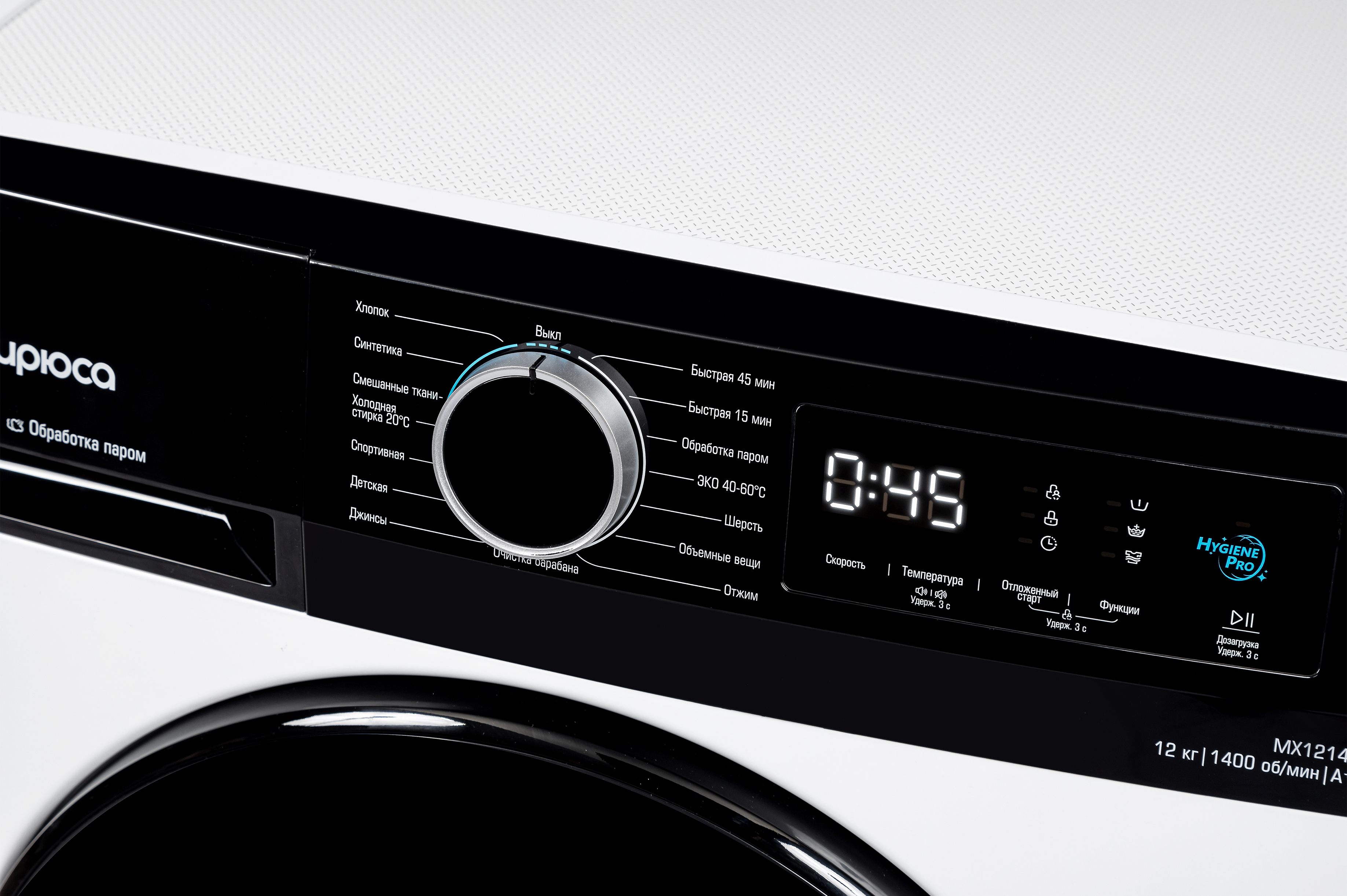 Описание Стиральная машина Бирюса WM-MX1214/15 Инверторная стиральная машина Бирюса WM-MX1214/15 – это идеальное решение для современных хозяек, которые ценят качество, функциональность и эффективность в быту. С максимальной загрузкой 12 кг, эта модель справится даже с самыми большими объемами белья, что делает ее незаменимым помощником для семей и людей с активным образом жизни. Фронтальная загрузка обеспечивает удобство и легкость в эксплуатации, а наличие дисплея позволяет легко управлять всеми функциями стиральной машины. Встроенная функция самоочистки гарантирует, что ваша техника всегда будет в идеальном состоянии, что значительно продлевает срок ее службы. Дополнительно, инверторная стиральная машина обладает функцией Hygiene Pro, которая обеспечивает эффективное удаление бактерий и аллергенов, заботясь о вашем здоровье и здоровье ваших близких. Благодаря современному инверторному мотору, устройство работает тихо и экономично, снижая потребление электроэнергии и воды. Выбор режима стирки можно адаптировать под любые потребности, что делает этот товар особенно универсальным. К тому же, стиральная машина с паром позволяет улучшить качество стирки, освежая одежду и удаляя запахи без необходимости применения дополнительных средств. Стиральные машинки с такими характеристиками, как данная модель, обеспечивают отличные результаты стирки при минимальных затратах времени и усилий. А белый цвет делает эту стиральную машину стильным дополнением интерьера вашей ванной комнаты или хозяйственного помещения. Если вы ищете надежную и высокотехнологичную машину стиральную, которая обеспечит качественную стирку и заботу о ваших вещах, не упустите шанс приобрести инверторную стиральную машину Бирюса WM-MX1214/15.