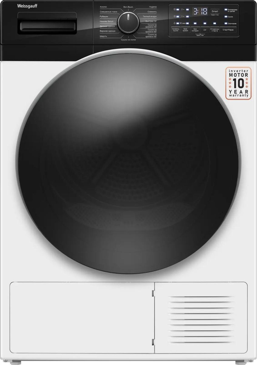 Описание Сушильная машина Weissgauff WD 6110 B Heat Pump Отдельностоящая сушильная машина Weissgauff, оснащенная функцией "Ультрафиолет", тепловой помпой и инверторным двигателем, имеет фантастический показатель загрузки до 10 килограммов белья, с экономичным классом энергопотребления А+, что делает данную модель не только эффективной, но и по-настоящему выгодной! FAMILY- комплект! Данная модель идеальна для установки в колонну со стиральной машиной Weissgauff WM 61210 DC Inverter Steam, образуя цельный и гармоничный комплект бытовой техники, выполненный в едином дизайне! Обратите внимание, что для установки в колонну потребуется дополнительно приобрести соединительный элемент Weissgauff WSK 19300 Тепловая помпа Heat Pump - это инновационная технология, позволяющая полностью пересмотреть взгляд на эффективность сушильных машин! Специальный насос перегоняет теплый и сухой воздух прямо в камеру сушильной машины, где он насыщается влагой, забирая её из белья и активно способствуя эффективному просушиванию. После этого уже забравший влагу воздух пропускается в испаритель, его температура понижается, а собранная влага - конденсируется и выводится. Функция "Ультрафиолет" - обработка ультрафиолетом обеспечивает дополнительную гигиеническую чистоту как самого белья, так и внутренней поверхности барабана сушильной машины! Защита белья от деформации и повреждений - благодаря использованию тепловой помпы сушка белья проходит более бережно, чем во многих других сушильных машинах, имеющихся на рынке, что позволит сохранить внешний вид и качество ткани, особенно для тех вещей, которым свойственно подвергаться усадке или растягиванию. Возможность размещения практически в любой квартире - которая становится возможной благодаря технологии Heat Pump, использующей замкнутый цикл с испарителем и не требующей наличия дополнительного вентиляционного канала или обязательного условия проветривания помещения. Установите сушильную машину там, где это будет удобно вам - и наслаждайтесь свежим и сухим бельём без лишних хлопот! Возможность установки даже в малых помещениях - благодаря тепловому насосу воздух в помещении не нагревается и вы можете запускать цикл сушки, наслаждаясь при этом комфортным микроклиматом в доме! Класс энергоэффективности A+ - это живое воплощение основного принципа Weissgauff "качество, доступное каждому". Используя эту сушильную машину, вы никогда не будете переплачивать за электроэнергию, и приходящие счета за коммунальные услуги начнут вас приятно удивлять! Более того, снижение нагрузки на электросеть позволит включать это устройство и вместе с другими энергозатратными устройствами, чего обычно не могут позволить многие другие сушильные машины, имеющиеся на рынке! Инверторный двигатель - построенный по особой технологии, использующей электромагнитное поле для вращения барабана (без применения щёток), что значительно снижает уровень шума, износа и энергопотребления! 10 лет гарантии на инверторный двигатель - это живое подтверждение немецкой уверенности Weissgauff в качестве выпускаемой нами продукции! Автопрограмма Smart - позволит сушильной машине самостоятельно подобрать требуемое время и температуру для всех типов белья для достижения идеального результата! Функция Hygiene - уничтожает большинство вредоносных бактерий и помогает содержать ваше бельё в чистоте,