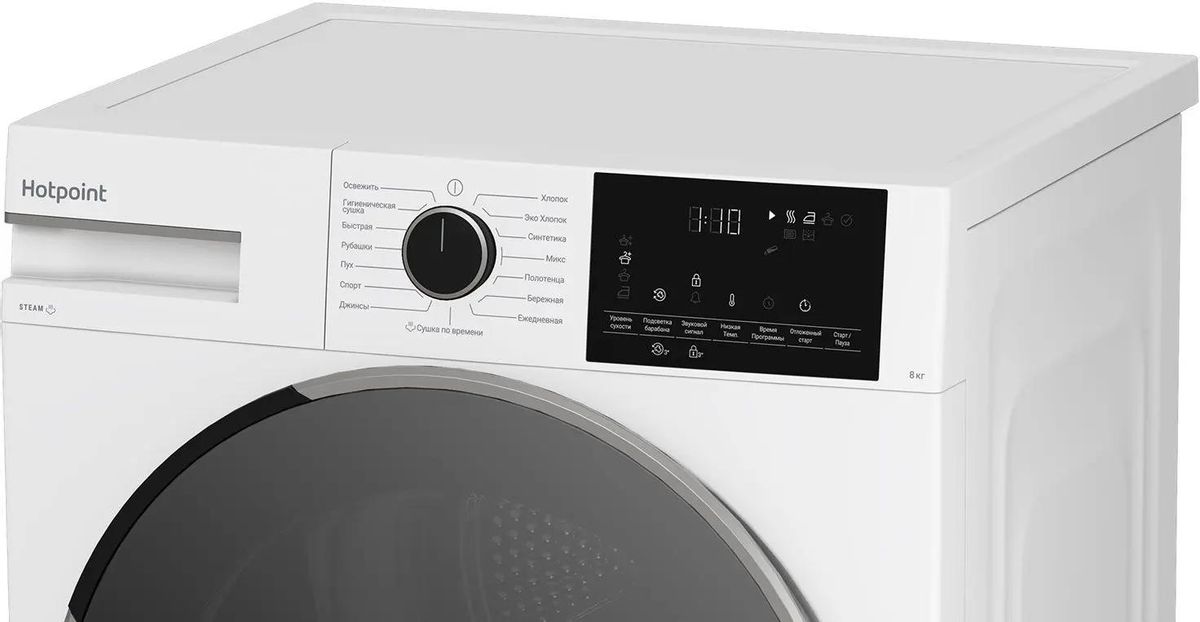 Описание Сушильная машина Hotpoint-Ariston TDSH 85V W Сушильная машина Hotpoint TDSH 85V W, оснащена барабаном объемом 92,5 л и вмещает до 8 кг белья. Прибор работает на основе технологии теплового насоса: в барабан нагнетается горячий воздух. 15 программ В модель заложены режимы для хлопка, синтетики, смешенного белья, полотенец, рубашек, джинсов, спортивной одежды, пуховых изделий и другие. Внутреннее освещение Упрощает загрузку и выгрузку белья. Выбор остаточной влажности Позволяет получить полностью сухое белье, которое предполагается убрать в шкаф, или слегка влажное для более простой глажки. За управление сушильной машиной отвечают поворотный переключатель и сенсорный дисплей, наглядно отображающий все возможности. Доступ можно заблокировать, что пригодится семьям с маленькими детьми. Конденсат собирается в специальный резервуар, когда его потребуется слить, подскажет индикатор. Возможно также подключение для слива скапливающейся жидкости в дренаж, все необходимое для этого поставляется в комплекте. Энергопотребление модели соответствует классу А и составляет 1,8 кВт*ч за цикл. Уровень шума достигает 65 дБ.