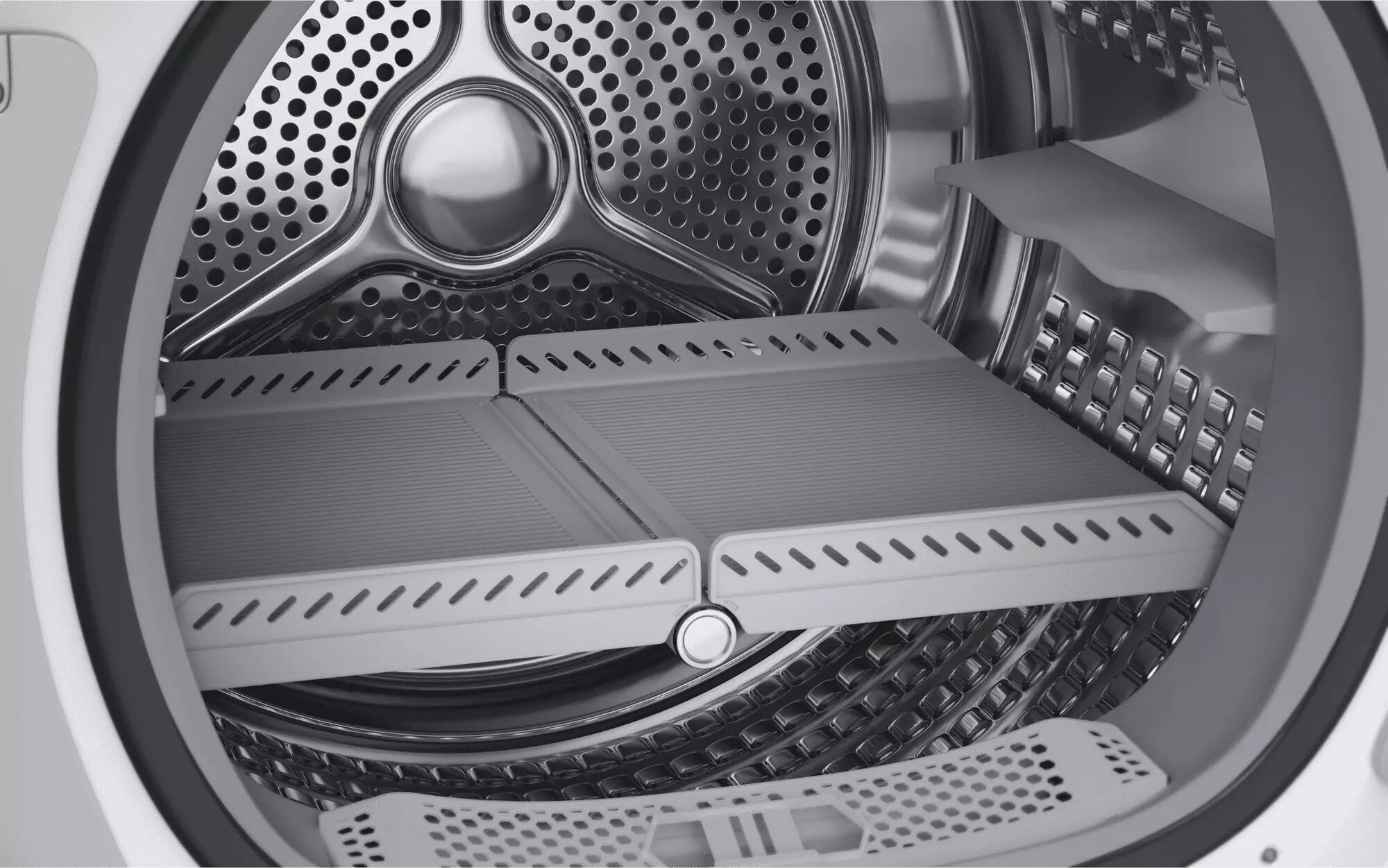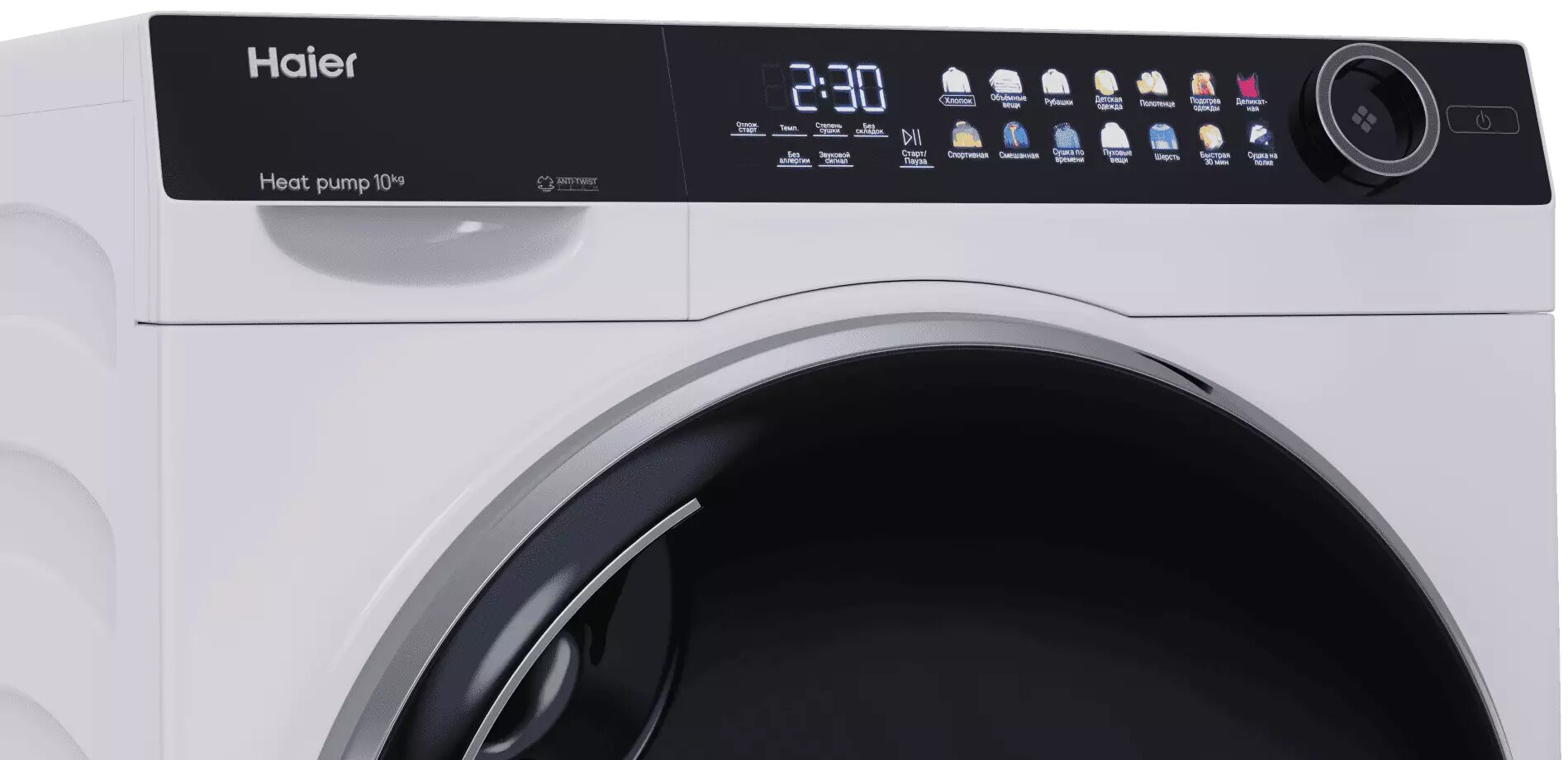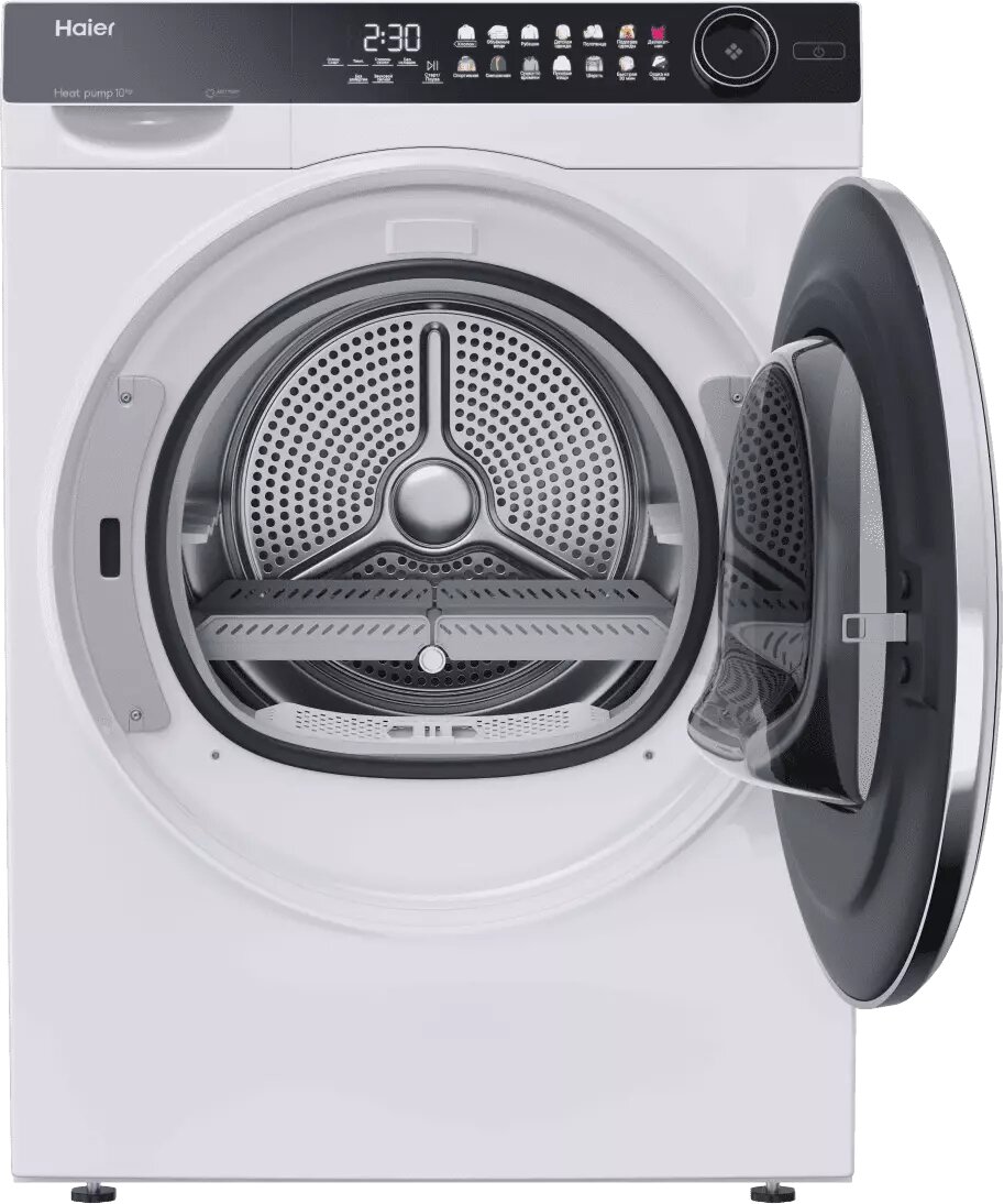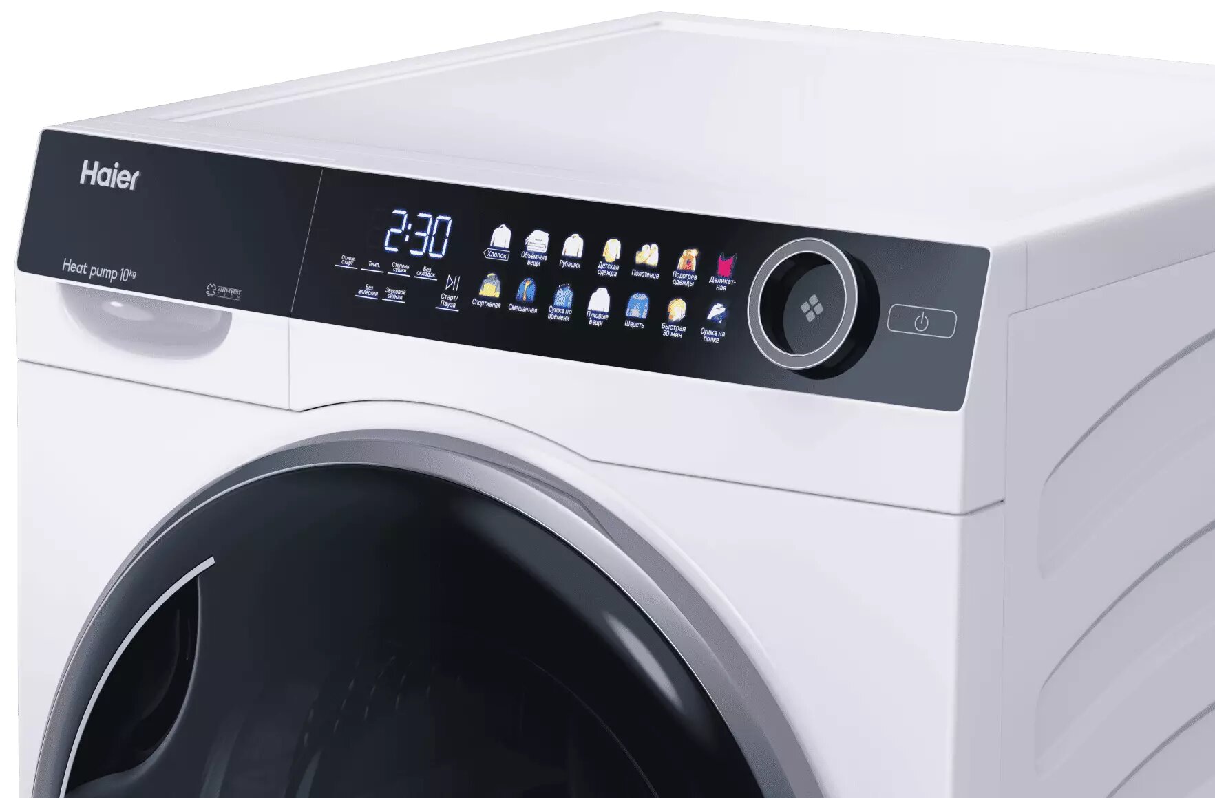 Описание Сушильная машина Haier HD100-A2378 Технология теплового насоса Благодаря замкнутой системе теплообмена машина потребляет меньше электроэнергии, что позволяет экономить. Режим сушки полотенец Новый режим сушки позволит бережно высушить ваши любимые полотенца, не повредив их структуру и сохранив их мягкость. 3 степени сушки «Под утюг», «Экстрасухая одежда» и «В шкаф». Выберите первую, если планируете гладить вещи утюгом, вторую, чтобы сразу надеть одежду, и третью, чтобы сложить в шкаф. Anti-twist tech Усовершенствованная технология реверса: равномерный обдув потоком теплого воздуха, во время которого барабан время от времени меняет направление вращения — бережно высушит самые деликатные ткани, не даст вещам спутаться и распрямит складки. Четырехслойный фильтр Собирает мелкие частицы пыли, ворс, пух и пыльцу растений. Фильтр удобно чистить — для этого достаньте его из передней части барабана и промойте проточной водой. Возможность перенавешивания двери Варьируйте крепление дверцы люка сушильной машины, чтобы удобно переложить вещи сушиться из стоящей рядом стиральной машинки. Компрессор с гарантией 12 лет Компрессор является одним из основных узлов теплового насоса сушильной машины, обеспечивающий эффективную работу системы. Гарантия на него — 12 лет. Функция антисминания За счет реверсивного вращения барабана машинка равномерно просушивает и разглаживает вещи. На одежде не образуются складки. Полка для сушки 2.0 Для бережной и эффективной сушки головных уборов, обуви и детских игрушек предусмотрена специальная программа статичной сушки без вращения барабана. Ваши любимые вещи будут равномерно высушены без потери формы или дефектов ткани. Установка сушильной и стиральной машины в колонну Идеальная и эргономичная пара для организации пространства и вашего удобства — установка сушильной и стиральной машины в колонну с помощью соединительного элемента. Haier HD100-A2378 — белая сушильная машина серии Color&Touch с обновленным цветным дисплеем, стильной черной панелью управления и экологичной технологией сушки на основе теплового насоса. У модели увеличенный барабан — он вмещает до 10 кг белья. Дверцу можно навесить в любую сторону, поэтому техника согласуется с любым интерьером. В модели 14 программ сушки, которые могут работать в одном из трех режимов: «Экстрасухая», «Под утюг» и «В шкаф». Уникальный «Подогрев одежды» позволит за 30 минут подготовить вещи к носке, а режим «Сушка на полке» позаботится о самых требовательных тканях. Модель поставляется с улучшенной складкой полкой — она ставится в барабан и на протяжении цикла остается неподвижной. Ее размер увеличен, так что вы сможете сушить даже самую объемную одежду в один слой. Внутри машины есть подсветка, сенсоры автовзвешивания и контроля влажности, исключающие риск пересушивания вещей. Равномерный обдув потоком теплого воздуха гарантирует технология реверса. Барабан время от времени меняет направление вращения — в результате ткани не перекручиваются, на них не образуются складки.