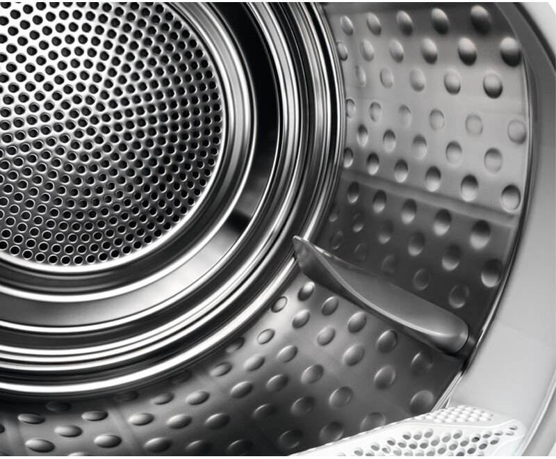 Описание Сушильная машина Electrolux EW8D394M Сушильная машина Electrolux EW8D394M представляет собой стильный и функциональный прибор с великолепным белым дизайном и идеально впишется в интерьер любой современной кухни или ванной комнаты. Она отличается превосходной энергоэффективностью, входя в класс энергопотребления A+++. Особенностью является технология сушки с тепловым насосом, которая обеспечивает нежный уход за вашим бельем, сохраняя его качество и цвет. Максимальная загрузка белья составляет 9 кг, что делает эту машину идеальной для больших семей. Кроме того, она оснащена инверторным двигателем, который обеспечивает бесшумную и долговечную работу. Управление осуществляется с помощью поворотного переключателя и сенсорных кнопок, что обеспечивает точность и удобство использования. На дисплее отображается статус сушки, а также индикация работы и индикация очистки конденсера и фильтра. В модели предусмотрено множество программ для различных типов тканей, включая синтетику, хлопок, шерсть, шелк, деликатные ткани, верхнюю одежду и даже постельное белье XL. Также есть режим «освежить одежду», который позволяет быстро и эффективно освежить ваши вещи без необходимости полной стирки. Кроме того, устройство оснащено функцией отсрочки старта, что позволяет вам запланировать сушку на удобное для вас время. Акустический сигнал сообщит вам о завершении сушки. Прибор имеет регулируемые по высоте ножки, что позволяет установить его на любом уровне. Материал барабана — нержавеющая сталь Protex, который обеспечивает долговечность и надежность использования. Ключевые преимущества Высокая энергоэффективность класса A+++ Многообразие программ для различных типов тканей Технология сушки с тепловым насосом