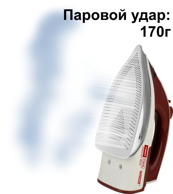 Паровой утюг VITESSE VS-686 — удачная покупка для тех, кто хочет гладить вещи быстро и легко, имея под рукой функцию отпаривания. С этим утюгом вам доступна возможность сухого глажения и глажения с паром. Отпаривать вещи можно как горизонтально, так и вертикально. Для пересушенных вещей пригодится функция парового удара. Производительность подачи пара у этой модели большая — 170 г/мин.