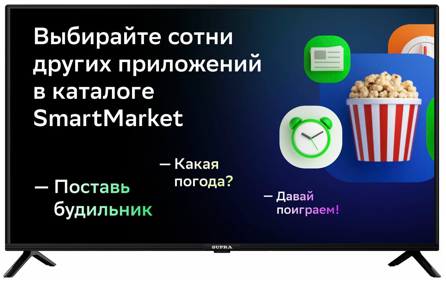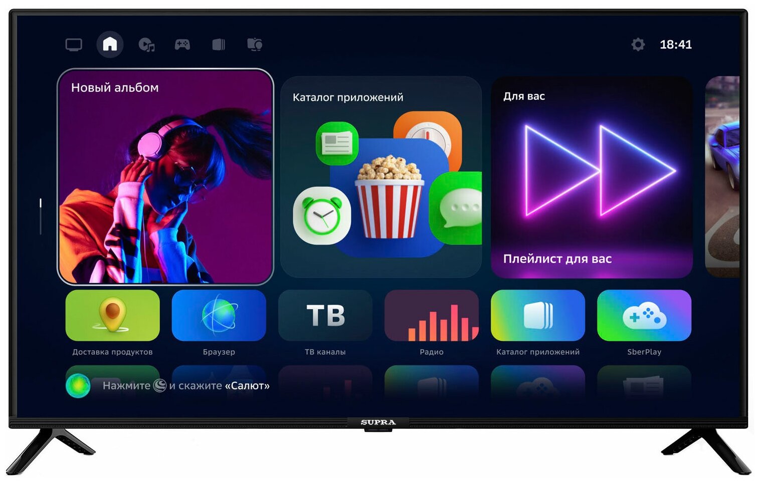 Описание Телевизор Supra STV-LC40ST0155Fsb Телевизор Supra STV-LC40ST0155Fsb (40", FullHD, Smart TV, Салют ТВ, Wi-Fi, черный) обладает оптимальным форматом экрана 1080p (Full HD) и диагональю 40 ", а также хорошим разрешением 1920x1080. Частота обновления экрана универсальна для данной техники. У телевизора есть функции и преимущества, благодаря которым он выделяется среди других моделей: мощный звук в 20 Вт и лаконичный черный цвет корпуса. На экране можно видеть четкую и яркую картинку, которую обеспечивает матрица LED. Благодаря оригинальному дизайну эта модель будет отлично смотреться практически в любой квартире, офисе или в другом помещении.