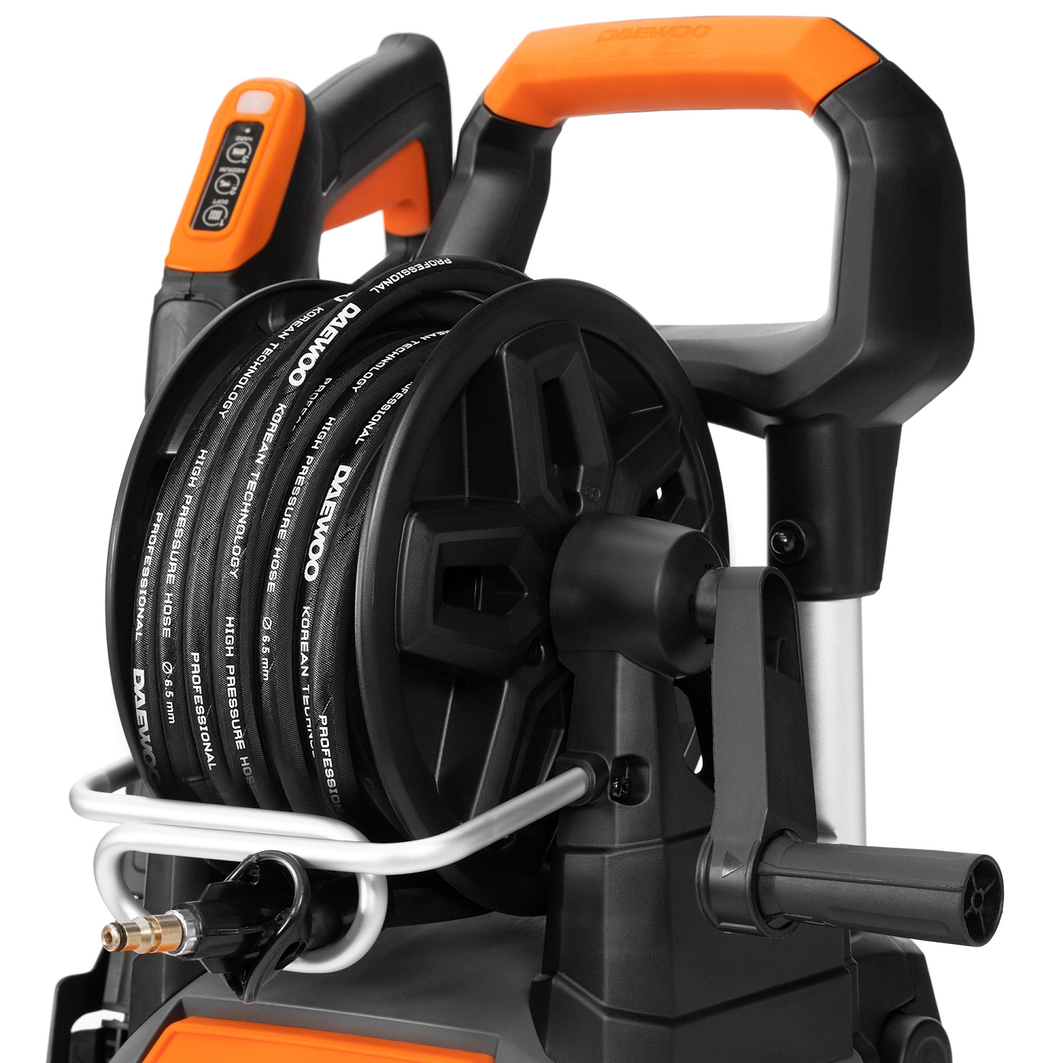 Описание Минимойка Daewoo DAW 675 Пистолет с системой REMOTE CONTROL Кнопочный регулятор ступеней давления позволяет не просто отслеживать выбранный режим, а выбирать его непосредственно на пистолете с помощью кнопок. Система смены режимов работы Три режима работы, позволяют подобрать параметры под любую задачу. Первый режим, низких оборотов двигателя (мягкий), для работ с деликатными поверхностями, таких как заборы, сайдинг. Второй режим, средних оборотов двигателя (средний), для мойки садового и спортивного инвентаря. Третий режим, максимальных оборотов двигателя (жёсткий), для мойки машин, садовых дорожек, цоколя. Мощный, надёжный и производительный электродвигатель DAEWOO Электрический двигатель с медной обмоткой имеет высокий ресурс работы и выдает максимальную мощность 2600 Вт и увеличенный крутящий момент для стабильной работы мойки Алюминиевая помпа Надежная алюминиевая помпа, выдаёт максимальное давление 200 бар при производительности 620 литров в час, что позволяет справляться даже с трудными загрязнениями. Улучшенное охлаждение – гарантия долгого срока службы и надежной работы. Пистолет с системой Quick Connect Все детали пистолета, находящиеся в непосредственном контакте с водой, выполнены из нержавеющей стали, устойчивой к перепадам давления и температуры. Система Quick Connect позволяет быстро установить пеногенаратор для нанесения пены без использования дополнительных инструментов Моющая насадка 4-в-1 В комплект поставки входит уникальная четырехпозиционная моющая насадка. Помимо трех веерных режимов, она имеет функцию грязевой фрезы и подходит для широкого круга работ - от деликатной мойки до отбивания старой засохшей грязи. Переключение режимов осуществляется вращением насадки. Пеногенератор с широкой горловиной Широкая заливная горловина пеногенератора позволяет легко заполнить емкость необходимым количеством моющего средства не пролив его. Также пеногенератор позволяет регулировать плотность пены и направление её нанесения Барабан для шланга Позволяет аккуратно хранить 12 метров шланга. Облегчает размотку шланга, до необходимой длины. Шланг высокого давления аккуратно наматывается на барабан, благодаря направляющей. Продуманный дизайн Телескопическая ручка позволяет с лёгкостью транспортировать аппарат. Со сложенной рукояткой занимает мало места. Большие колёса облегчают передвижение по неровностям. Сетчатый отсек для мелочей, позволяет хранить фильтр тонкой очистки и грязевую фрезу. Формованный крюк на корпусе, позволяет аккуратно хранить шнур питания. Армированный шланг высокого давления Армированный шланг высокого давления длиной 12 м имеет запас прочности, значительно превосходящий мощность насоса. Создан на основании новых технологий и сочетает в себе гибкость без перегибов с возможностью работать под высоким давлением. Внешний грязеотталкивающий слой позволит быстро очистить шланг. Комплекс систем защиты Система защиты от высокого входного давления воды. Система защиты от низкого входного давления воды. Система защиты от перегрева Система TOTAL STOP Система автоматики включает и останавливает электродвигатель, когда начинается или прекращается расход воды. Данная система продлевает срок службы помпы и всех узлов, находящихся под высоким давлением