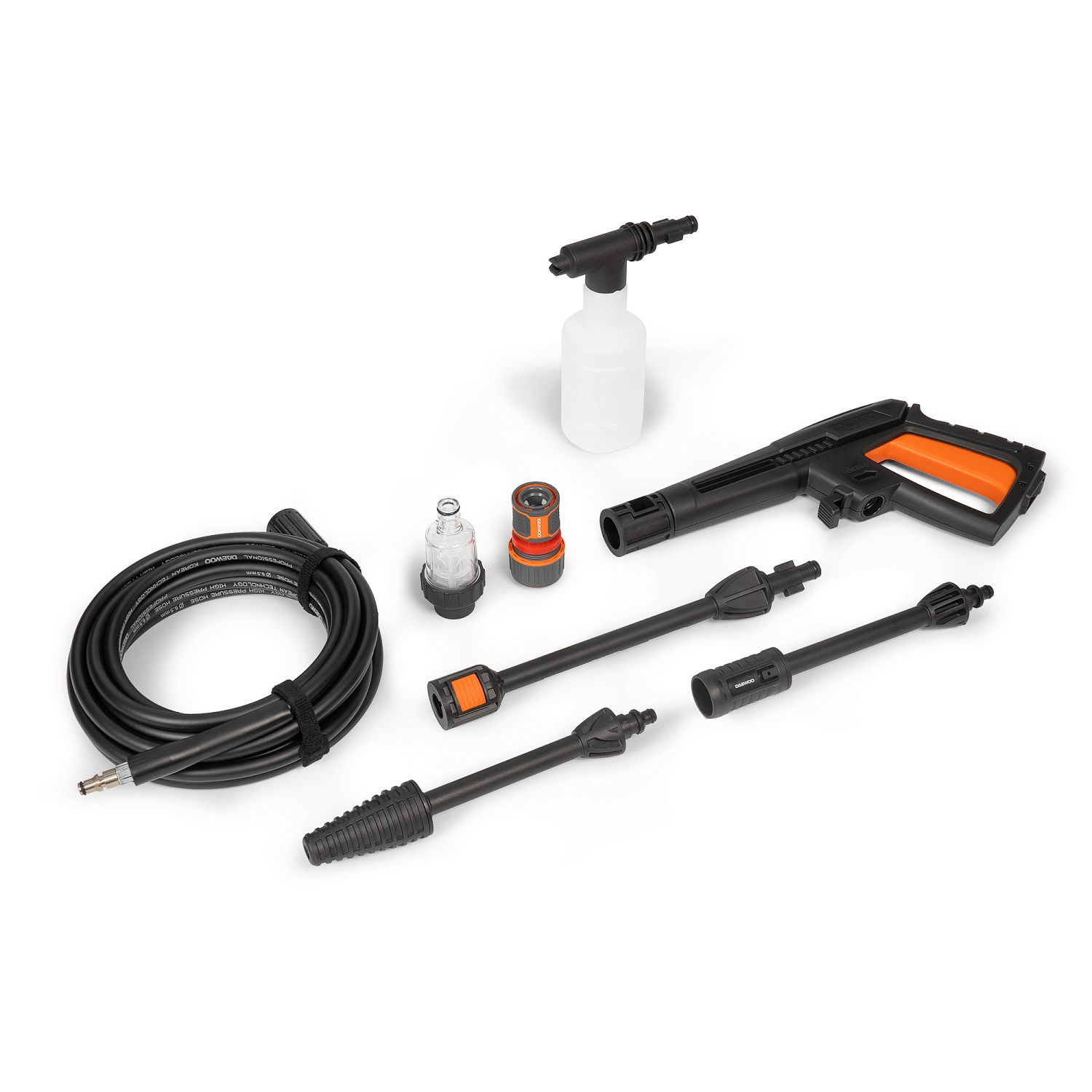 Описание Минимойка Daewoo DAW 6 Compact Профессиональный индукционный двигатель Выполнен по технологии BRUSHLESS и отличается высоким ресурсом, низким уровнем шума, повышенной мощностью и компактными размерами. Вы получаете больший крутящий момент и экономию до 50% в энергопотреблении. Сервисное обслуживание и замена щеток не требуется Компактный размер и небольшой вес Данная модель заметно компактнее и легче моек высокого давления аналогичной мощности, что делает ее незаменимой для локальных работ с частой переноской аппарата. Алюминиевая помпа Алюминиевая помпа обеспечивает высокое давление и более устойчива к напорным нагрузкам и износу, в отличии от пластиковых аналогов. При этом алюминий не подвержен коррозии, обеспечивает эффективный отвод избыточного тепла от двигателя и продлевает срок службы мойки. Для удобной замены масла предусмотрено отверстие на боковой панели мойки. Манометр На мойке установлен аналоговый манометр для визуального контроля давления. Моющая насадка DAEWOO Home&Car Jet С мойкой поставляется уникальная веерная насадка Car&Home Jet с латунным соплом, обладающая повышенной моющей способностью в сравнении со стандартной регулируемой насадкой. Полный комплект для работы из коробки Помимо моющей насадки Home&Car Jet, в комплект поставки входит все необходимое: мягкий шланг высокого давления длиной 6м, грязевая фреза, пеногенератор, фильтр тонкой очистки, коннектор для садового шланга DWC 2500 с функцией аквастоп. Держатель для аксессуаров Для размещения аксессуаров на мойке предусмотрен съемный держатель с гнездами для пистолета и насадок. Функция "автостоп" При отпускании курка пистолета автоматика останавливает двигатель мойки, минимизируя расход электроэнергии и предотвращая нагрев аппарата. При нажатии курка двигатель включается снова без задержки.