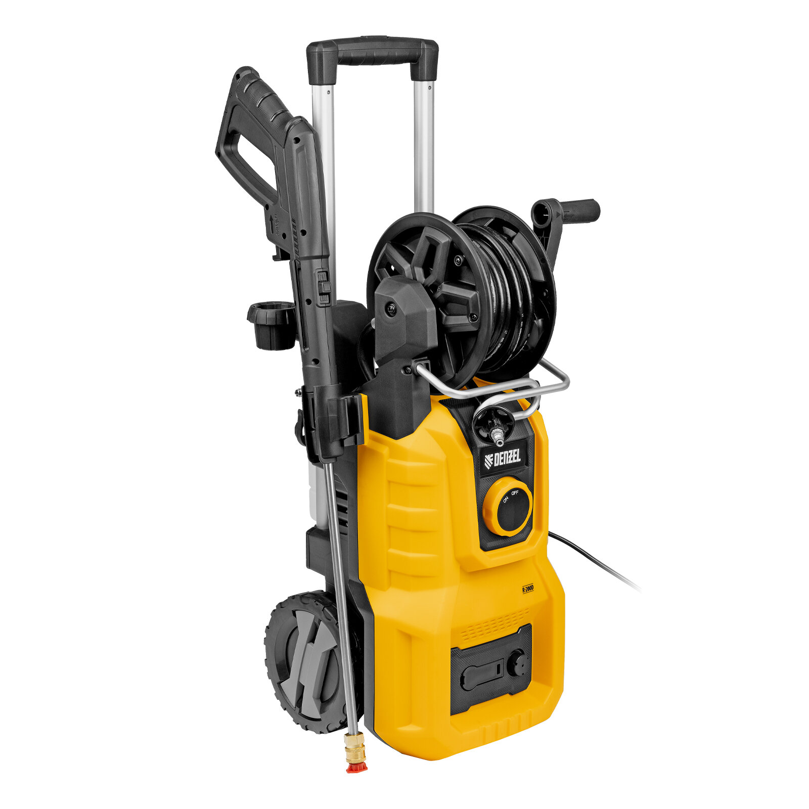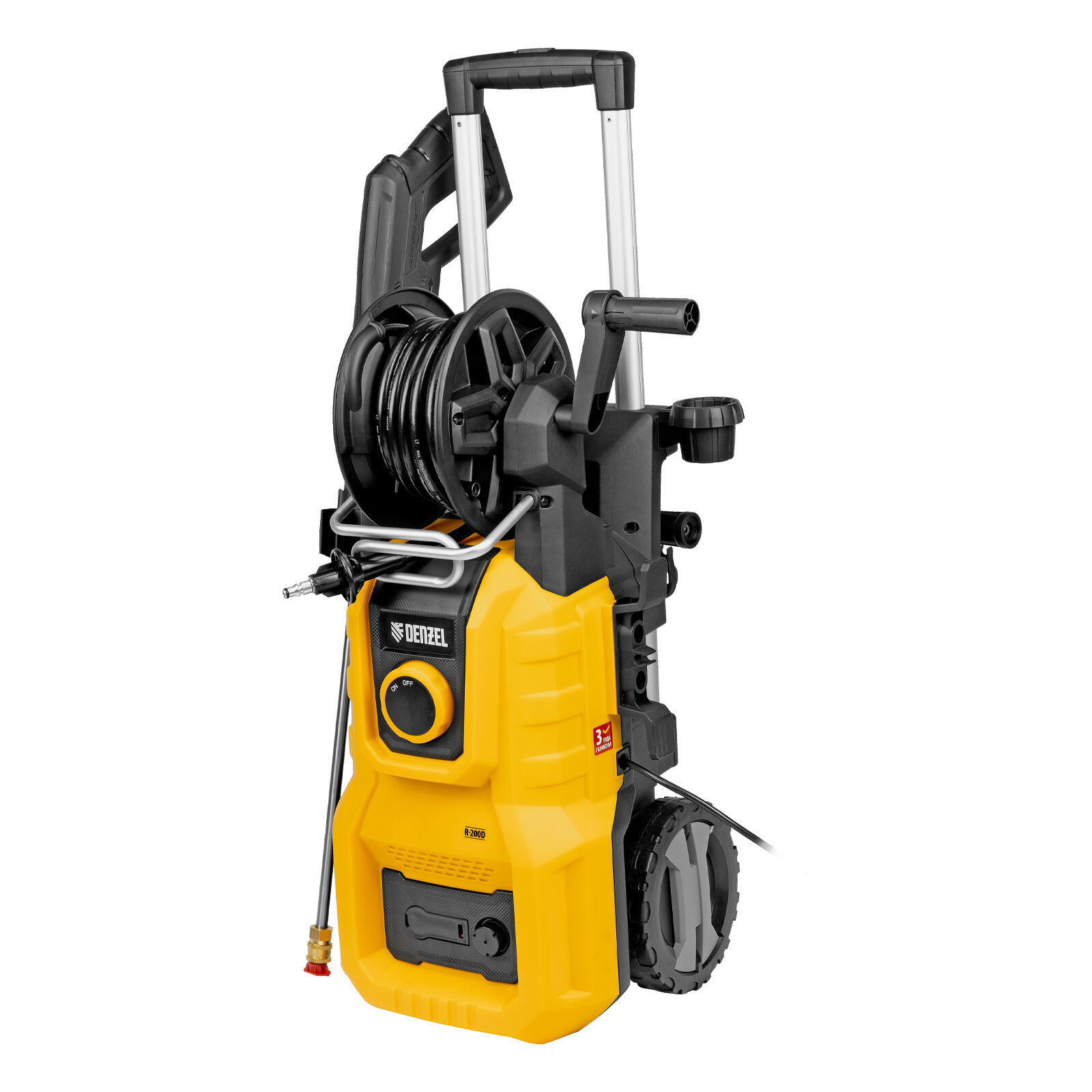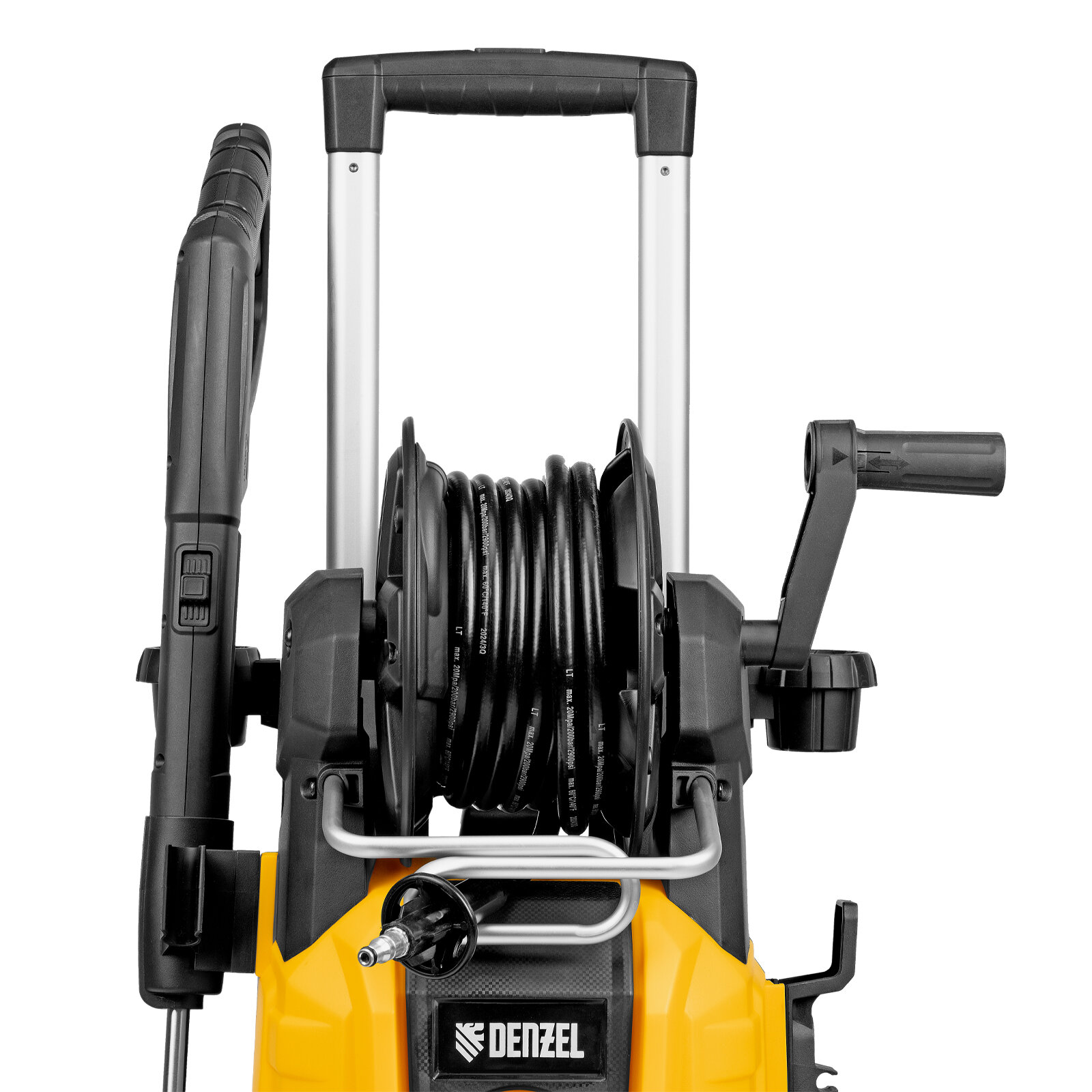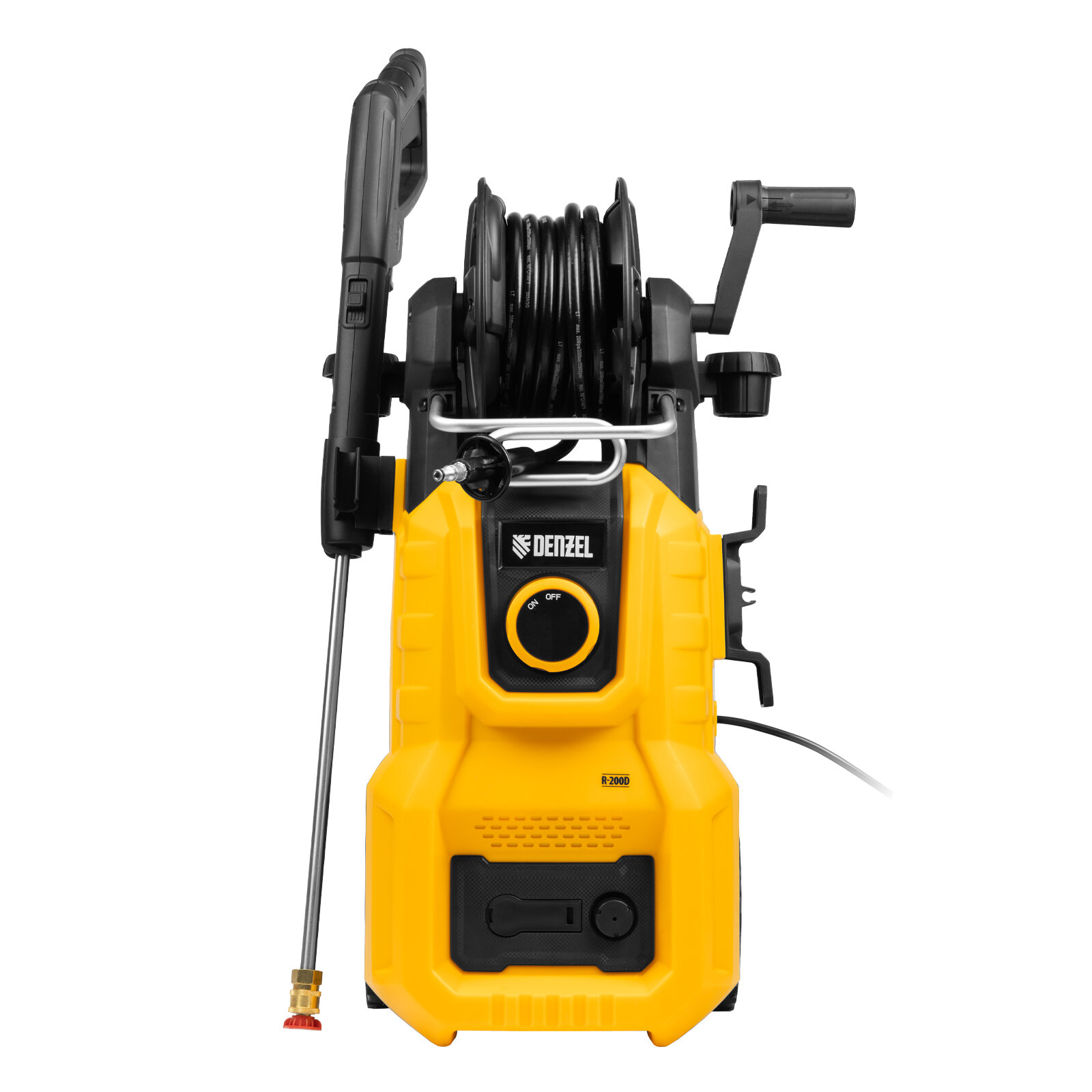 Описание Минимойка Denzel R-200D [58264] Моечная машина высокого давления Denzel R-200D 58264 мощностью 2400 Вт, с барабаном, используется для мытья дорожек, тротуаров, фасадов зданий, автомобилей, окон, садовой мебели и инвентаря. Максимальное давление составляет 200 бар, производительность — 420 л/ч. Мойка подключается к водопроводной сети, а в случае ее отсутствия может забирать воду из любого открытого резервуара, работая в режиме самовсасывания. Надежная алюминиевая помпа со стальными плунжерами обеспечивает стабильное давление даже при длительном интенсивном использовании. Техника незаменима на дачном участке. Преимущества Максимально эффективное очищение — к мойке прилагается внешний пенокомплект с функцией улучшенного пенообразования, быстросъемное крепление позволяет устанавливать его на пистолет одним движением. Выбор оптимального угла распыления — машина поставляется с 3 насадками: 0°, 25° и 40°. Быстрая подготовка к работе — быстросъемный адаптер упрощает подключение шланга подачи воды. Качественная фильтрация — посторонние частицы задерживаются на входе, что защищает помпу от поломки. Защита от случайного пуска — перед началом работы необходимо разблокировать рычаг моечного пистолета. Защита от превышения допустимого давления — машина оснащена перепускным клапаном, пневматическое реле останавливает насос при отпущенном рычаге пистолета и запускает после нажатия на курок. Термозащита — производитель предусмотрел датчик температуры, электродвигатель автоматически отключается при перегреве. Максимально комфортное передвижение — длина шнура питания составляет 5 м, длина шланга высокого давления увеличена до 8 м. Удобное использование — функциональный барабан подключен к магистрали высокого давления, поэтому вы можете разматывать и убирать шланг на барабан, не отсоединяя его от мойки. Степень защиты IPX5 — внутренние компоненты надежно изолированы от попадания воды. Мобильность — благодаря колесам и телескопической рукоятке машину удобно перемещать по участку. Несложный уход — в комплект поставки входит игла для прочистки сопла. Продуманное хранение — в конструкции предусмотрен кронштейн для кабеля, а также держатели для аксессуаров. Гарантия 3 года — надежность техники подтверждена производителем.