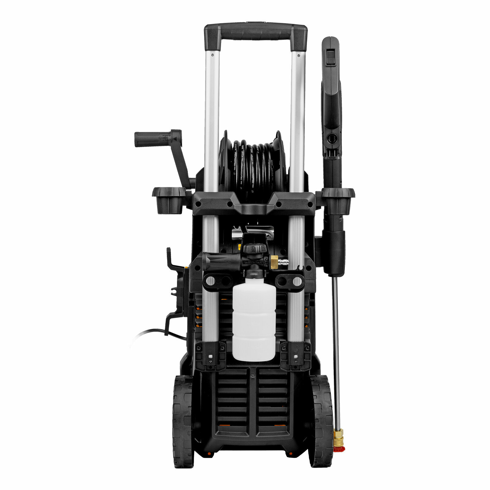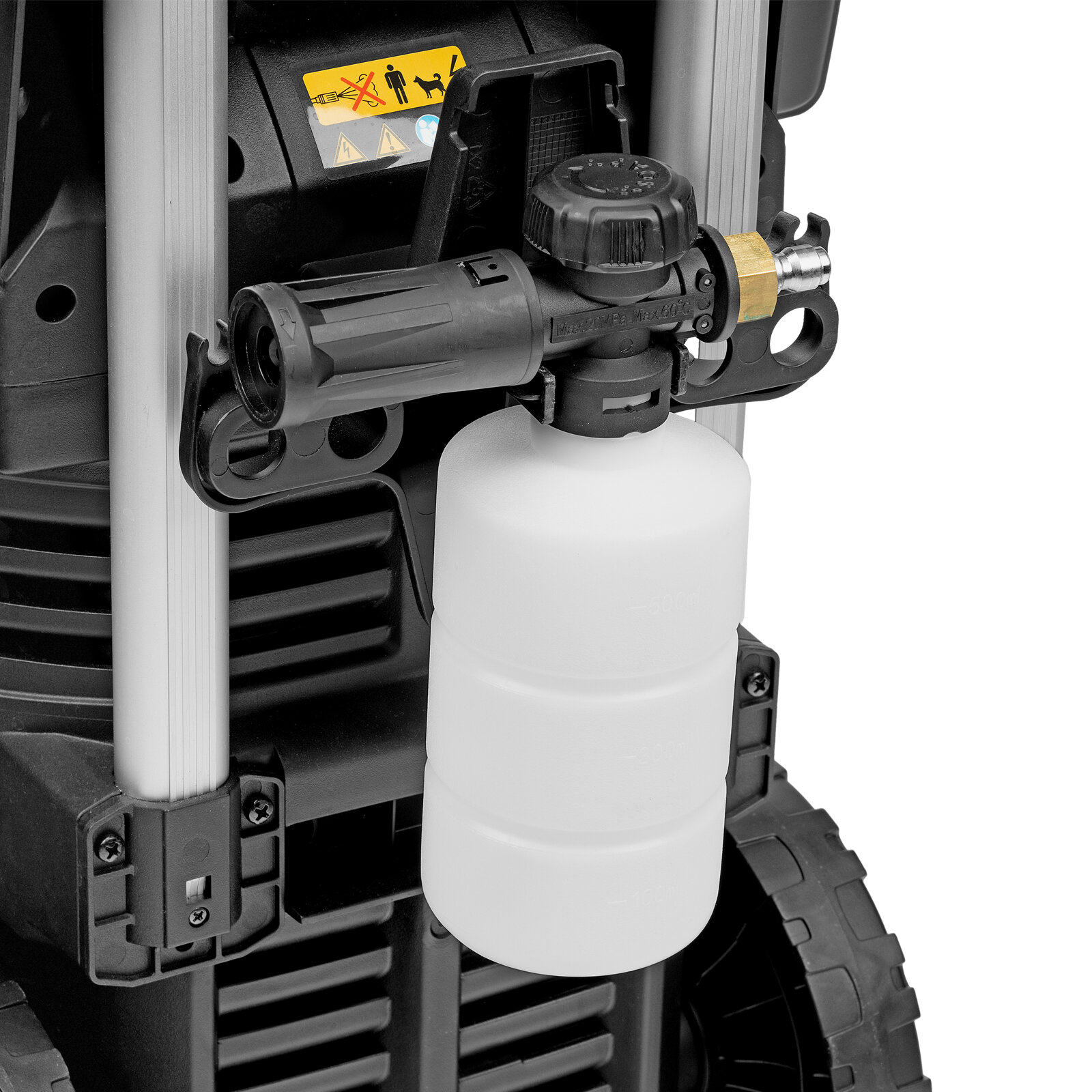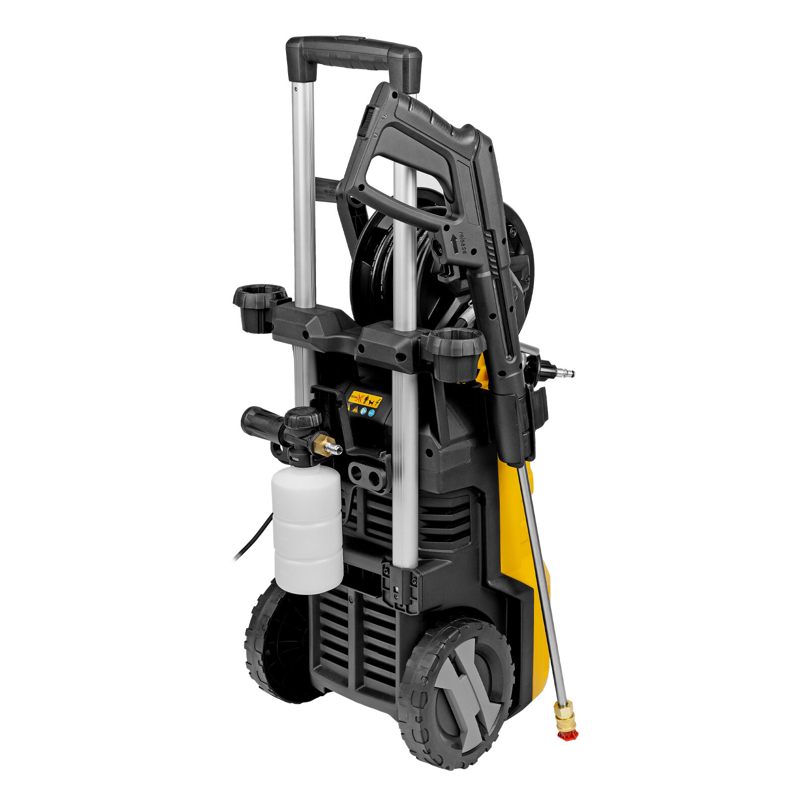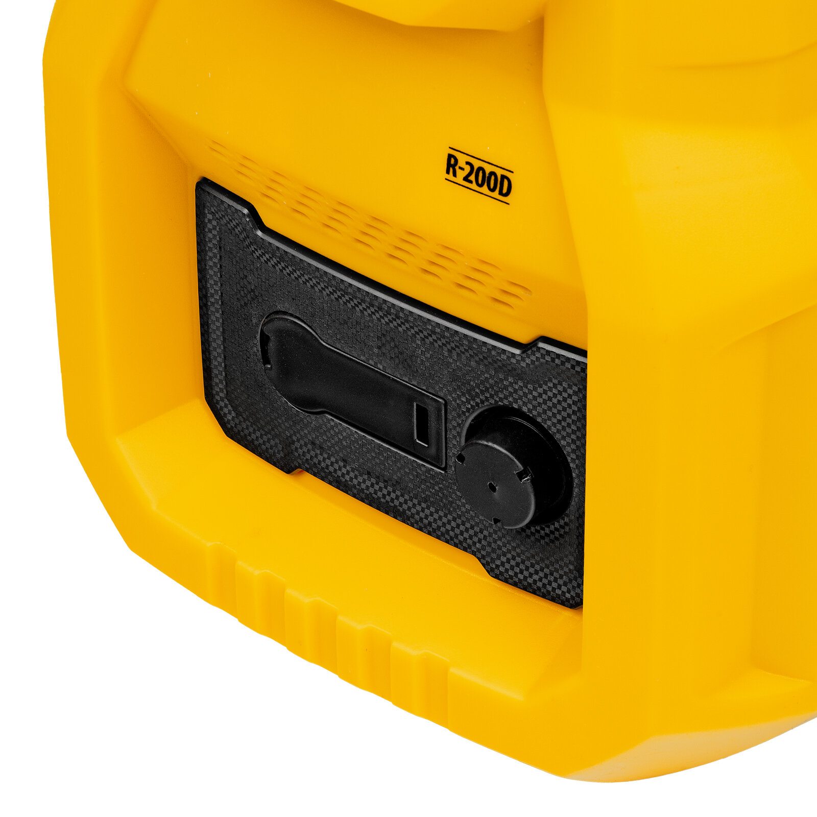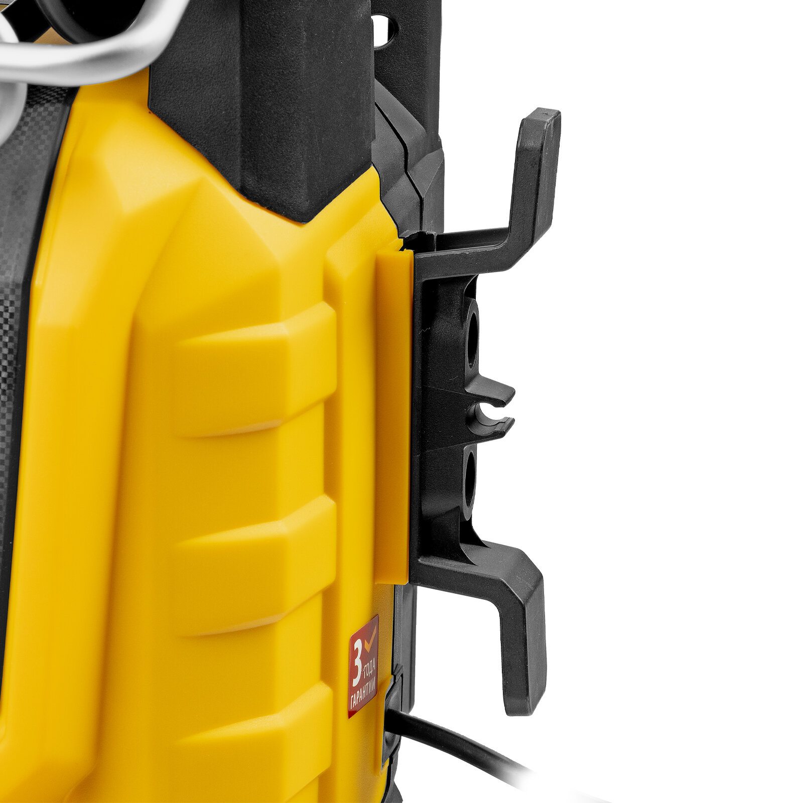 Описание Минимойка Denzel R-200D [58264] Моечная машина высокого давления Denzel R-200D 58264 мощностью 2400 Вт, с барабаном, используется для мытья дорожек, тротуаров, фасадов зданий, автомобилей, окон, садовой мебели и инвентаря. Максимальное давление составляет 200 бар, производительность — 420 л/ч. Мойка подключается к водопроводной сети, а в случае ее отсутствия может забирать воду из любого открытого резервуара, работая в режиме самовсасывания. Надежная алюминиевая помпа со стальными плунжерами обеспечивает стабильное давление даже при длительном интенсивном использовании. Техника незаменима на дачном участке. Преимущества Максимально эффективное очищение — к мойке прилагается внешний пенокомплект с функцией улучшенного пенообразования, быстросъемное крепление позволяет устанавливать его на пистолет одним движением. Выбор оптимального угла распыления — машина поставляется с 3 насадками: 0°, 25° и 40°. Быстрая подготовка к работе — быстросъемный адаптер упрощает подключение шланга подачи воды. Качественная фильтрация — посторонние частицы задерживаются на входе, что защищает помпу от поломки. Защита от случайного пуска — перед началом работы необходимо разблокировать рычаг моечного пистолета. Защита от превышения допустимого давления — машина оснащена перепускным клапаном, пневматическое реле останавливает насос при отпущенном рычаге пистолета и запускает после нажатия на курок. Термозащита — производитель предусмотрел датчик температуры, электродвигатель автоматически отключается при перегреве. Максимально комфортное передвижение — длина шнура питания составляет 5 м, длина шланга высокого давления увеличена до 8 м. Удобное использование — функциональный барабан подключен к магистрали высокого давления, поэтому вы можете разматывать и убирать шланг на барабан, не отсоединяя его от мойки. Степень защиты IPX5 — внутренние компоненты надежно изолированы от попадания воды. Мобильность — благодаря колесам и телескопической рукоятке машину удобно перемещать по участку. Несложный уход — в комплект поставки входит игла для прочистки сопла. Продуманное хранение — в конструкции предусмотрен кронштейн для кабеля, а также держатели для аксессуаров. Гарантия 3 года — надежность техники подтверждена производителем.