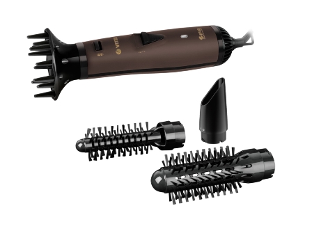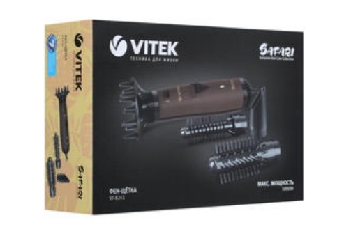 Описание Фен-щетка Vitek VT-8241 Сегодня VITEK - один из самых узнаваемых брендов в России. Продукция VITEK сочетает новейшие технологии с привлекательным современным дизайном, бескомпромиссным качеством и выгодной ценой. Не только высушить волосы, но и красиво уложить их позволит вам фен-щетка VITEK VT-8241, оснащенная тремя режимами температуры/ скоростями воздушного потока. Прибор имеет 2 термощётки диаметром 20 мм и 33 мм, которые помогут создавать изящные локоны, а также концентратор, направляющий воздух на определенные пряди, и диффузор, отвечающий за объем прически. Хотите зафиксировать созданную красивую укладку? Воспользуйтесь режимом подачи холодного воздуха!
