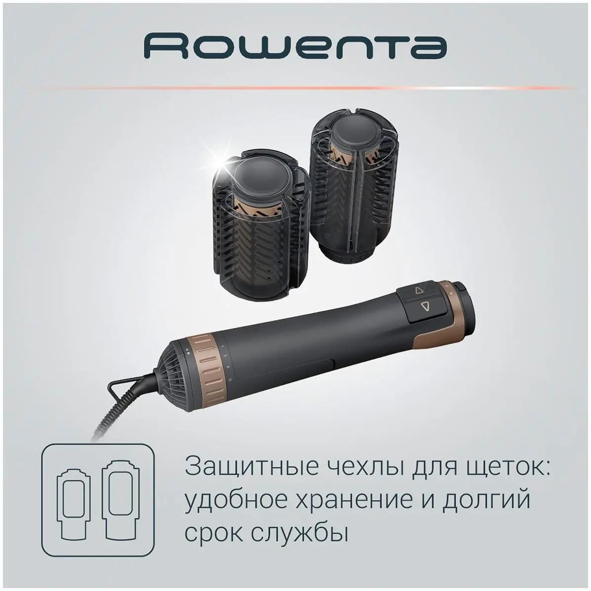 Описание Фен Rowenta CF9528F0 Новый уровень объема ваших волос Фен-щетка Brush Activ - новый, приятный опыт для вас и ваших волос. Ее мощность 1000 Вт позволяет быстро сушить волосы, независимо от их длины и густоты, две вращающиеся щетки 40 и 50 мм повторяют движения профессиональных стилистов, создавая лучшую версию вашей любимой укладки, а ионизация позаботится о том, чтобы ваши волосы были мягкими, послушными и блестящими. Потрясающий объем Автоматическое вращение щетки в сочетании с потоком воздуха позволяет быстро достигать профессионального результата. Для любого типа волос 2 насадки 40 и 50 мм с керамическим покрытием позволяют одинаково эффективно сушить и укладывать любые волосы, независимо от их типа. Легко использовать Щетка вращается в обе стороны, обеспечивая удобство при сушке и укладке. Гибкие настройки Выбирайте любой из 3 режимов скорости и температуры воздушного потока, подходящий именно для вашего типа волос. Функция ионизации Послушные и гладкие волосы в течение дня. Хранение без проблем Защитные чехлы для щеток помогут не только удобно хранить их, но и продлить им срок службы.