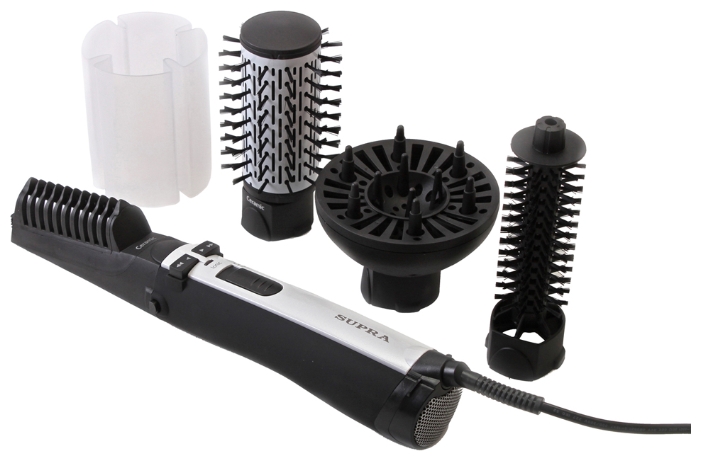 С фен-щеткой Supra PHS-2040N вы сможете выполнить прическу любой сложности. В комплект входят несколько насадок: диффузор для сушки и придания объема, две круговые щетки из натуральной щетины различного диаметра для завивки и двойная щетка для выпрямления волос. Кроме того, вы сможете быстро высушить волосы, без использования насадок. Две скорости воздушного потока помогут высушить и уложить волосы. Для фиксации волос предусмотрена кнопка подачи холодного воздуха. Автоматическое вращение насадок поможет вам быстро накрутить локоны.